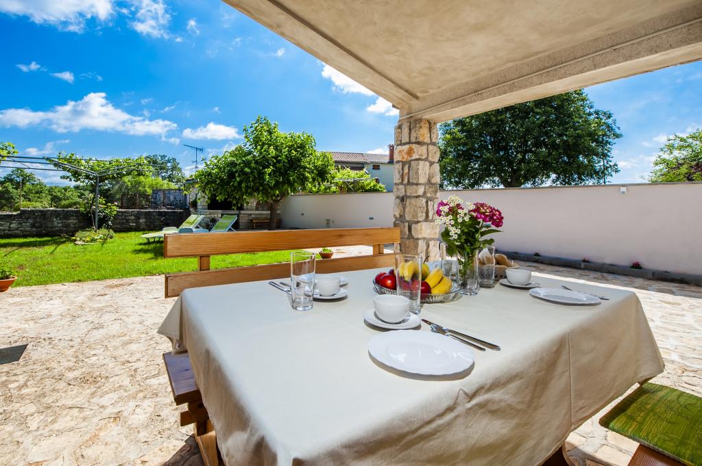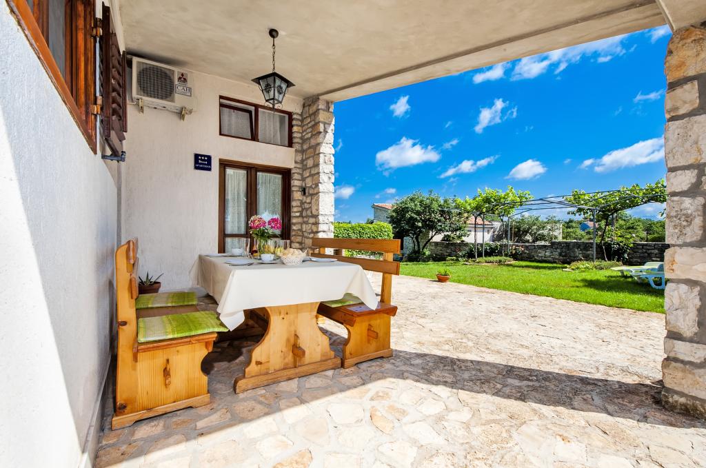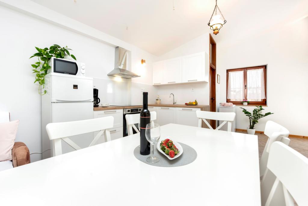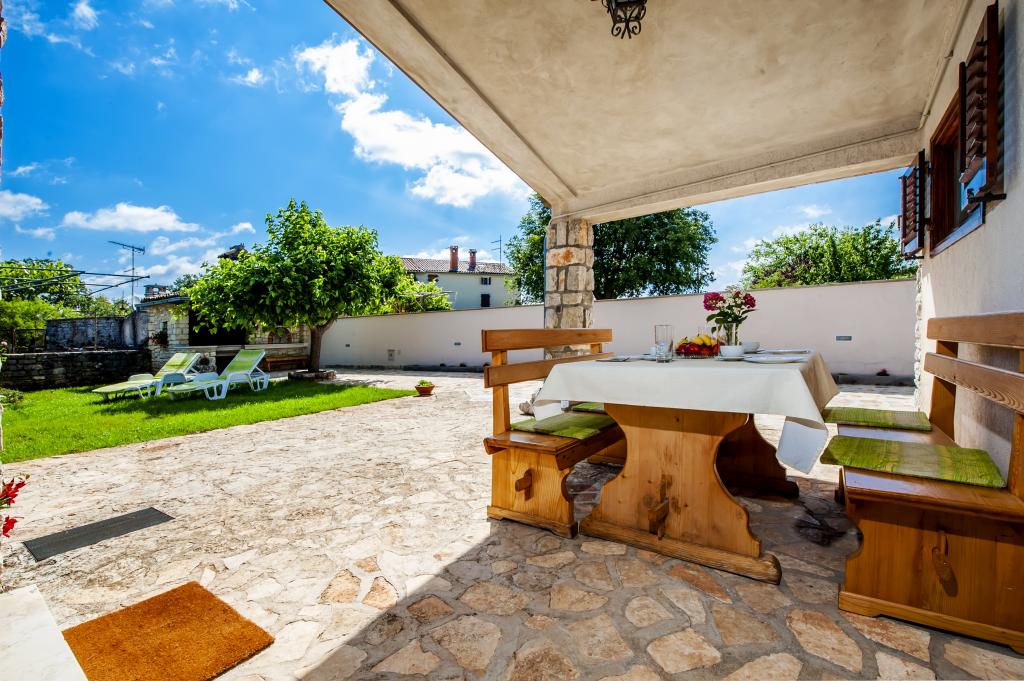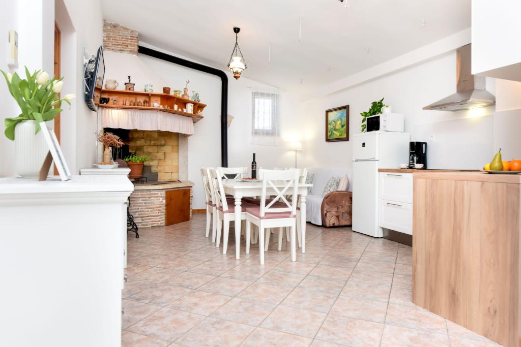 La maison Nino est située dans le village de Krmed, un village situé à 7 km au nord-est de la municipalité de Bale. Il est situé sur la route départementale Bale – Smoljanci – Svetvinčenat. Il se trouve à seulement 8 minutes en voiture de Bal et à 25 minutes de Rovinj. Si vous recherchez un hébergement loin du bruit de la ville, mais en même temps suffisamment proche de toutes les destinations environnantes, c'est le choix parfait pour vous. La plage la plus proche de Bala (Colone ou San Polo) est à seulement 13 km en voiture et la plage de Cisterna est à 16 km. Toute la maison, le jardin, le charbon de bois et le barbecue au bois sont à votre disposition. Hébergement idéal pour une famille avec enfants et animaux. La maison a été construite dans le style caractéristique de l'Istrie, elle est recouverte de pierre. C'est notre patrimoine, nous y sommes donc particulièrement attachés. Il dispose de deux chambres, un salon et une cuisine, une salle de bain et une terrasse couverte. Devant la maison se trouve une cour clôturée où vous pourrez séjourner en toute tranquillité. Les animaux de compagnie sont les bienvenus ! Nous vivons à Rovinj et venons à Krmed sur rendez-vous. Nous respectons votre vie privée