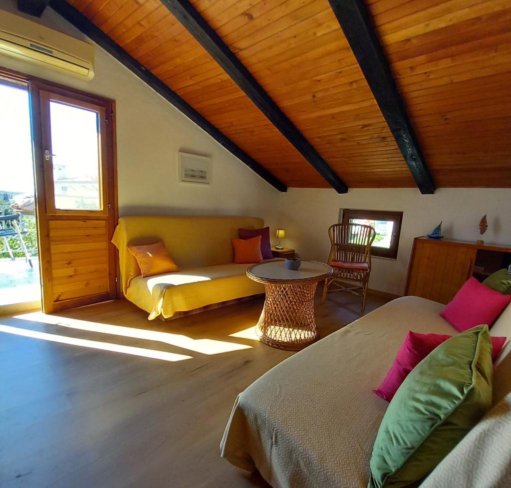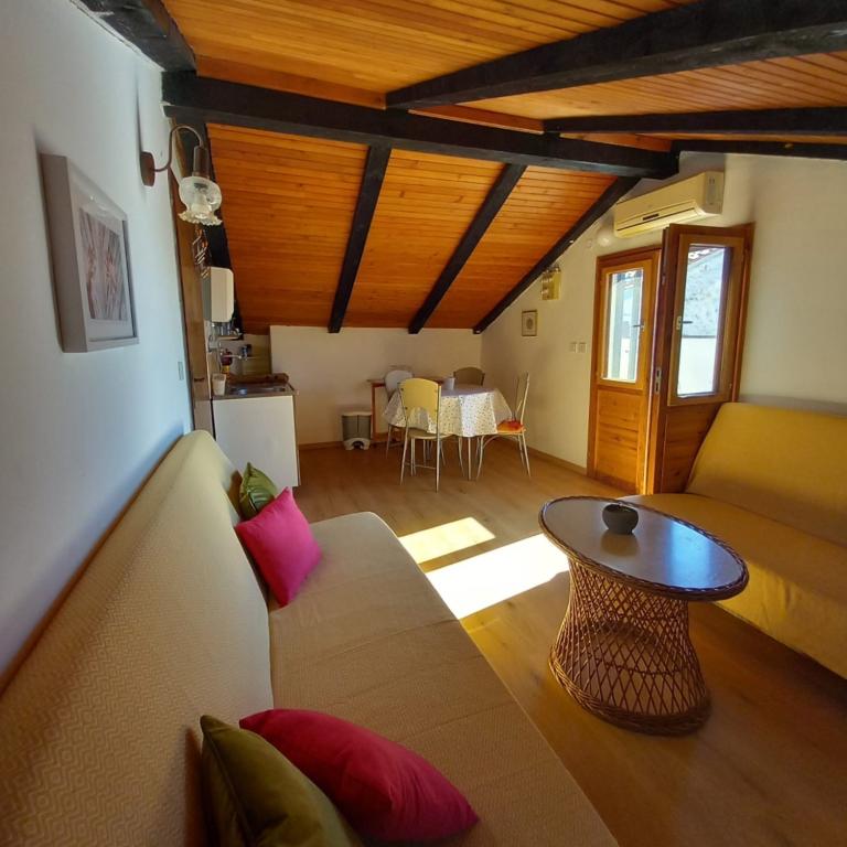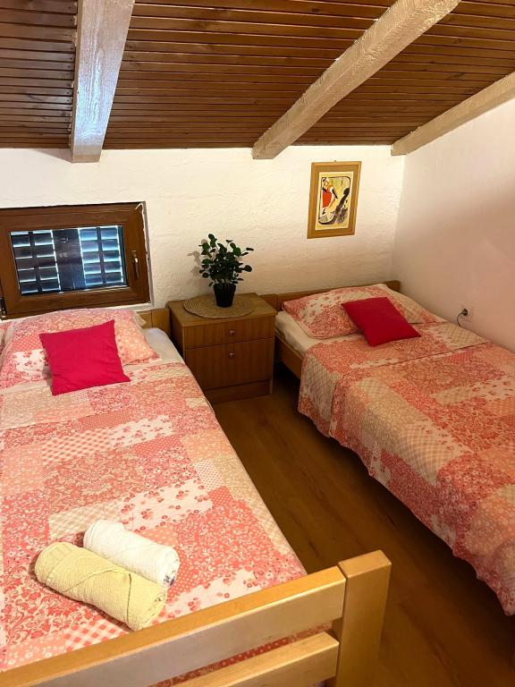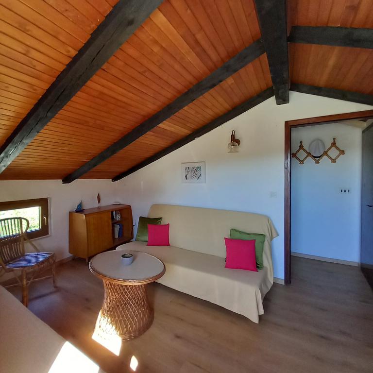 La maison, composée de deux appartements et d'une place de parking, est située dans le petit village tranquille de Mušoga-Banjole, à seulement 300 m de la plage. Elle peut accueillir deux familles. L'appartement Oleander 2+2, situé au 1er étage (pente basse), est idéal pour 2 adultes ou 2 adultes et 1 ou 2 jeunes enfants. Climatisé, il comprend une chambre double, une salle de bain, un séjour séparé avec deux canapés-lits, un coin cuisine et une terrasse. L'appartement Glicinija, pour 4 personnes, situé au rez-de-chaussée, comprend deux chambres, une salle à manger, une cuisine, une salle de bain et une cour intérieure ombragée toute la journée. De nombreuses promenades en bord de mer et pistes cyclables se trouvent à proximité. À dix minutes à pied, vous trouverez un supermarché, une boulangerie, un marché aux poissons, une pharmacie, un loueur de vélos et plusieurs restaurants. À seulement 6 km de l'appartement se trouve la péninsule de Kamenjak, avec ses belles plages, sa mer cristalline et son bar Safari unique. Venez profiter de la mer, du soleil, des senteurs méditerranéennes et de la détox digitale :).