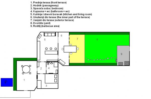 Barbariga, un village touristique près de Pula La plus belle partie de la côte d'Istrie. Idéal pour les familles avec enfants. Barbariga destination touristique en Istrie, situé dans la partie sud-ouest de la côte d'Istrie, à 15 km à l'ouest de Pula. Nord de Barbariga se trouve à Rovinj perle de l'Adriatique. De Barbariga peut voir les îles de Brijuni National Park, célèbre dans le monde entier, inclus dans le patrimoine de l'UNESCO, le patrimoine naturel et culturel qui valent le détour. C'est un endroit idéal pour les familles avec enfants et pour les amoureux de la nature. Ici vous pouvez vous attendre plages agréables et calmes, spacieuses et belles avec une mer cristalline et chaleureuse. Nos suites se composent d'une chambre à coucher, salle de bains, cuisine, salon avec canapé approprié pour une période supplémentaire de deux lits et une terrasse ou un jardin. Elles sont équipées de la climatisation, de la télévision par satellite. La cuisine est entièrement équipée. Serviettes garantis, draps et couvertures. Le ménage est fait régulièrement après le départ. Un parking gratuit est directement en face de l'appartement