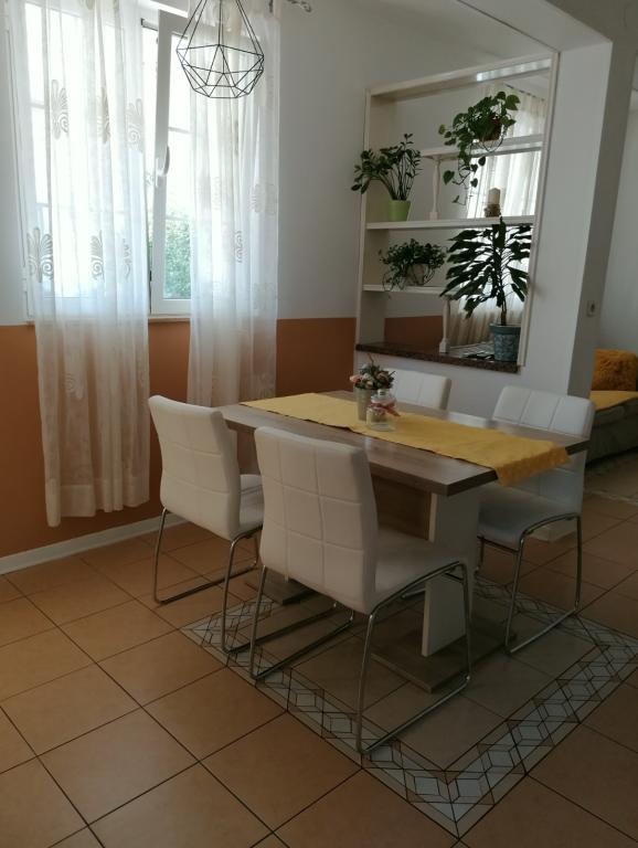 Cette belle maison de vacances moderne est située à Barbat, sur l'île de Rab. Les appartements sont joliment et modernement meublés. Nous disposons de notre propre parking et d'un amarrage pour bateaux. Les hôtes disposent de deux barbecues dans le jardin. Nous vous proposons 5 appartements. Tous les appartements disposent de leur propre entrée privée. De nombreux restaurants et commerces se trouvent à proximité, à seulement quelques minutes à pied. Le centre de Rab est à 4 km de la maison. Notre maison est à seulement 50 mètres de la mer.