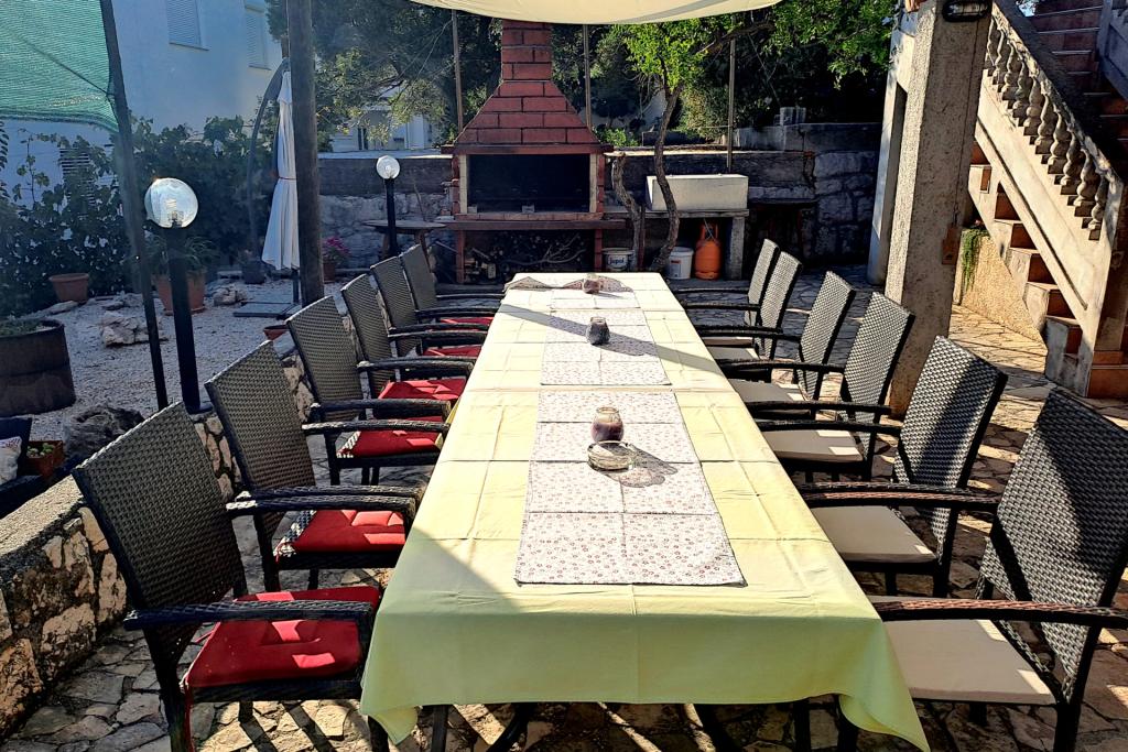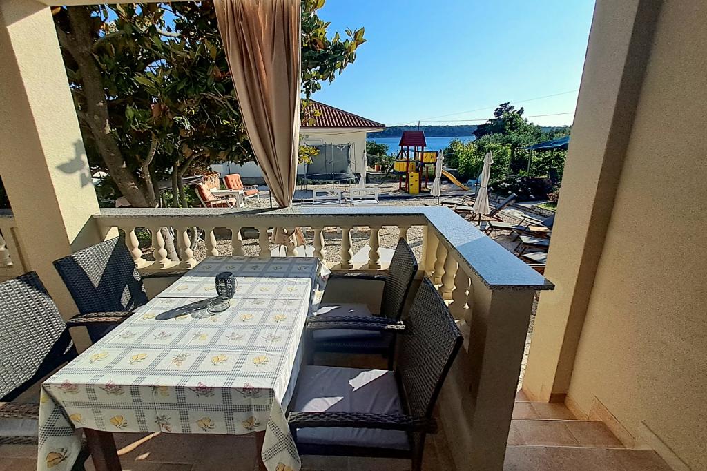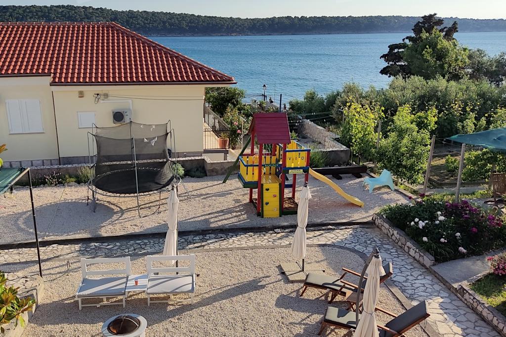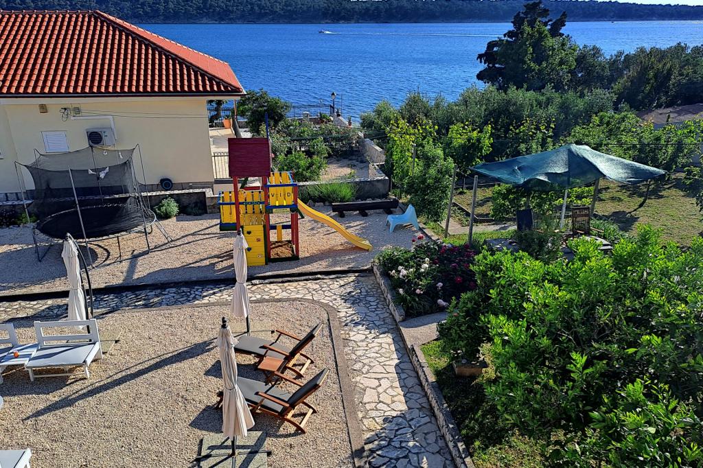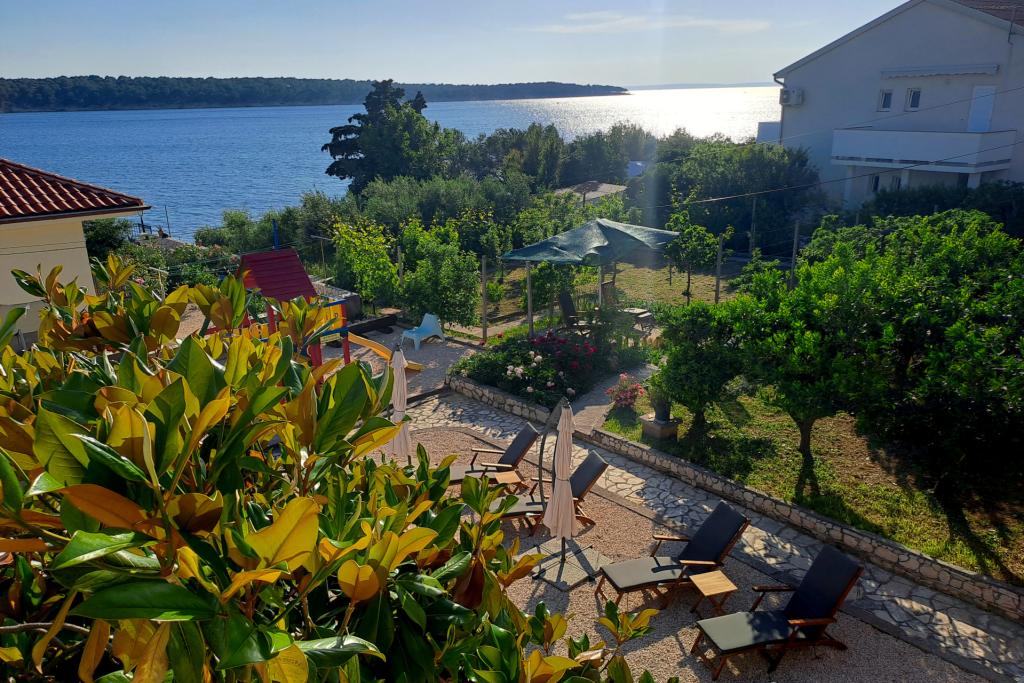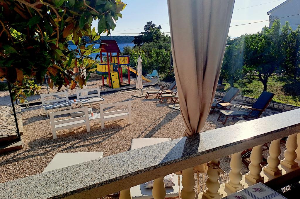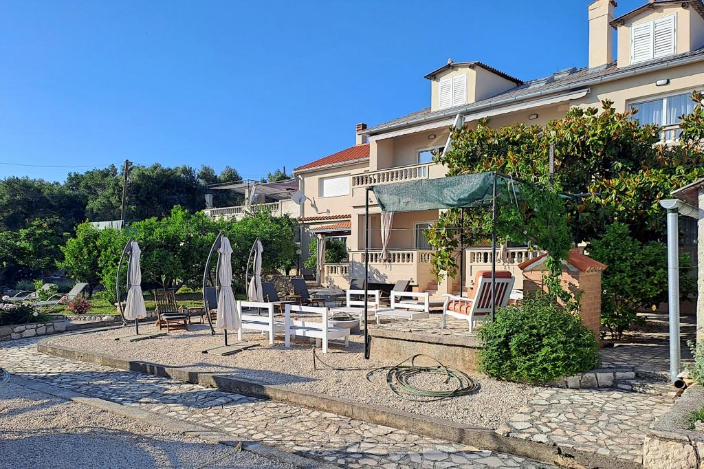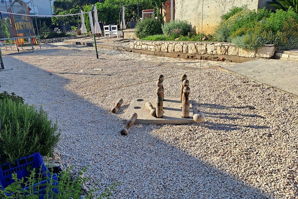 Appartements à 30 m de la mer, amarrage gratuit pour le navire. La maison appartenant à la famille Snježana et Slobodan (Bobo) Frankić est située à Barbat sur l'île de Rab, à 4 km de la ville de Rab et à 6 km du ferry. Il a été construit comme un bâtiment d'un étage avec cinq appartements à louer, une salle commune pour les divertissements et un appartement où vivent les hôtes. La maison est située au calme, dans un beau quartier résidentiel, elle se trouve à seulement 30 mètres de la mer et est entourée d'un parking, d'un jardin fleuri, d'un verger, d'une terrasse ensoleillée avec transats, d'une aire de jeux pour enfants et adultes. , et une terrasse commune. Il y a cinq appartements pour 4 personnes : Appartement 1, Appartement 3, Appartement 4, Appartement 5 et un appartement pour 2 personnes : Appartement 2. Deux appartements pour 4 personnes : Appartement 1, Appartement 3 et un appartement pour 2 personnes : Appartement 2 sont situé au rez-de-chaussée, et deux appartements pour quatre personnes : Appartement 4, Appartement 5 au premier étage (les hôtes et l'Appartement 5 loué partagent une terrasse). Tous les appartements disposent de la climatisation. Wifi gratuit