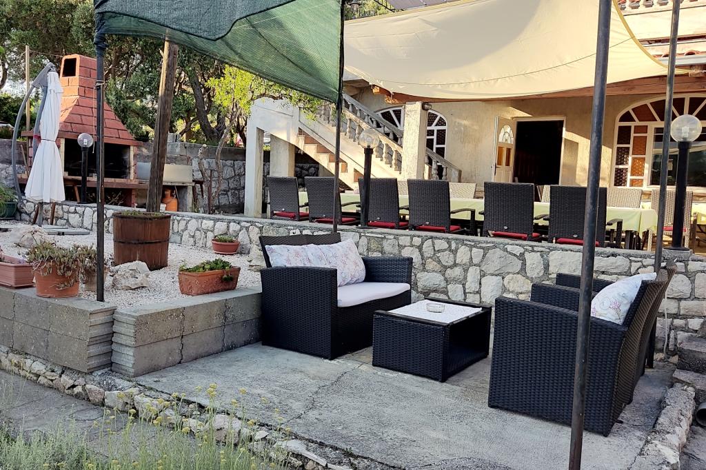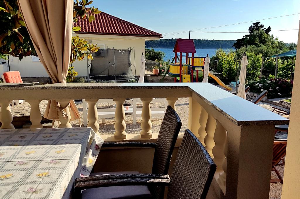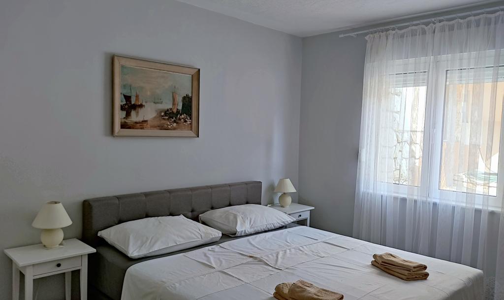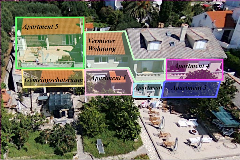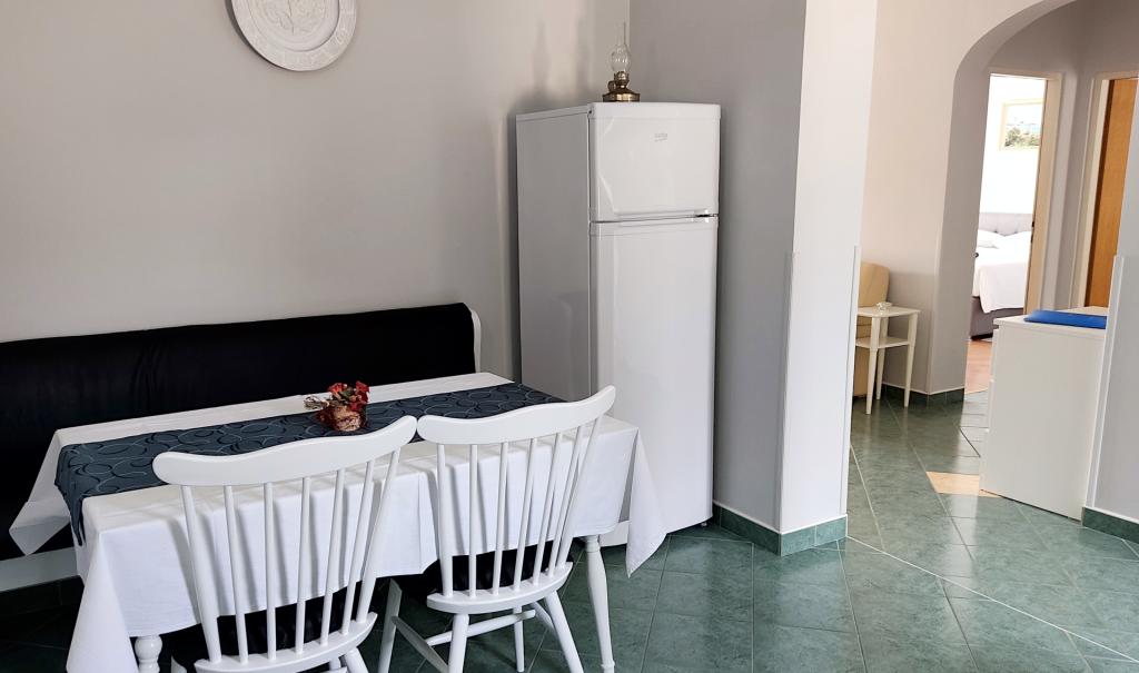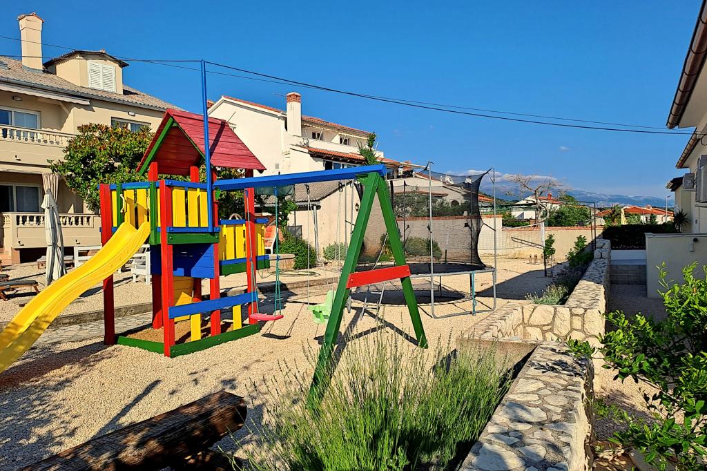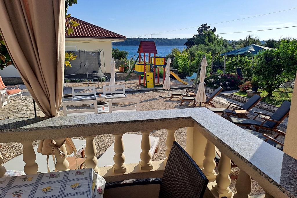 Appartements à 30 m de la mer, amarrage gratuit pour le navire. La maison appartenant à la famille Snježana et Slobodan (Bobo) Frankić est située à Barbat sur l'île de Rab, à 4 km de la ville de Rab et à 6 km du ferry. Il a été construit comme un bâtiment d'un étage avec cinq appartements à louer, une salle commune pour les divertissements et un appartement où vivent les hôtes. La maison est située au calme, dans un beau quartier résidentiel, elle se trouve à seulement 30 mètres de la mer et est entourée d'un parking, d'un jardin fleuri, d'un verger, d'une terrasse ensoleillée avec transats, d'une aire de jeux pour enfants et adultes. , et une terrasse commune. Il y a cinq appartements pour 4 personnes : Appartement 1, Appartement 3, Appartement 4, Appartement 5 et un appartement pour 2 personnes : Appartement 2. Deux appartements pour 4 personnes : Appartement 1, Appartement 3 et un appartement pour 2 personnes : Appartement 2 sont situé au rez-de-chaussée, et deux appartements pour quatre personnes : Appartement 4, Appartement 5 au premier étage (les hôtes et l'Appartement 5 loué partagent une terrasse). Tous les appartements disposent de la climatisation. Wifi gratuit