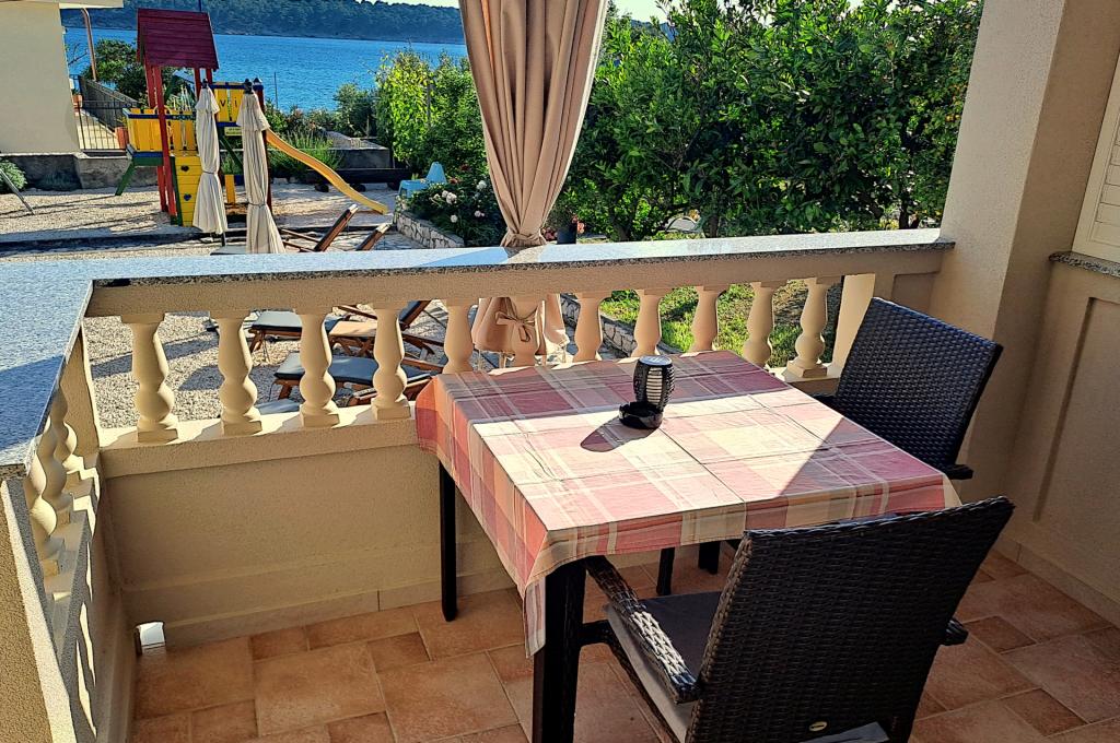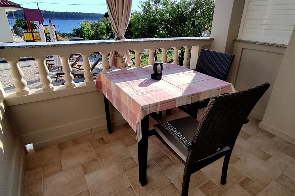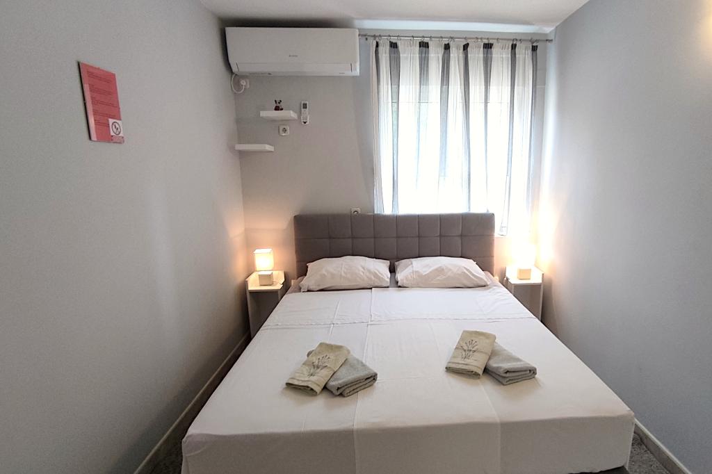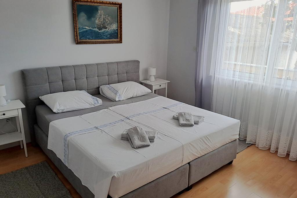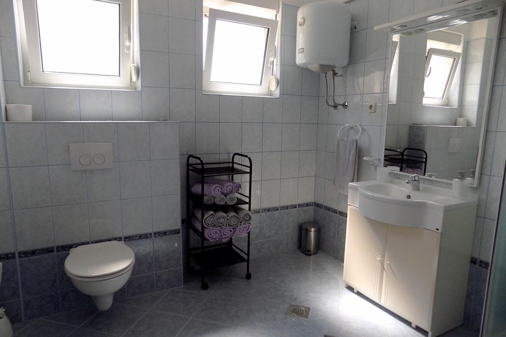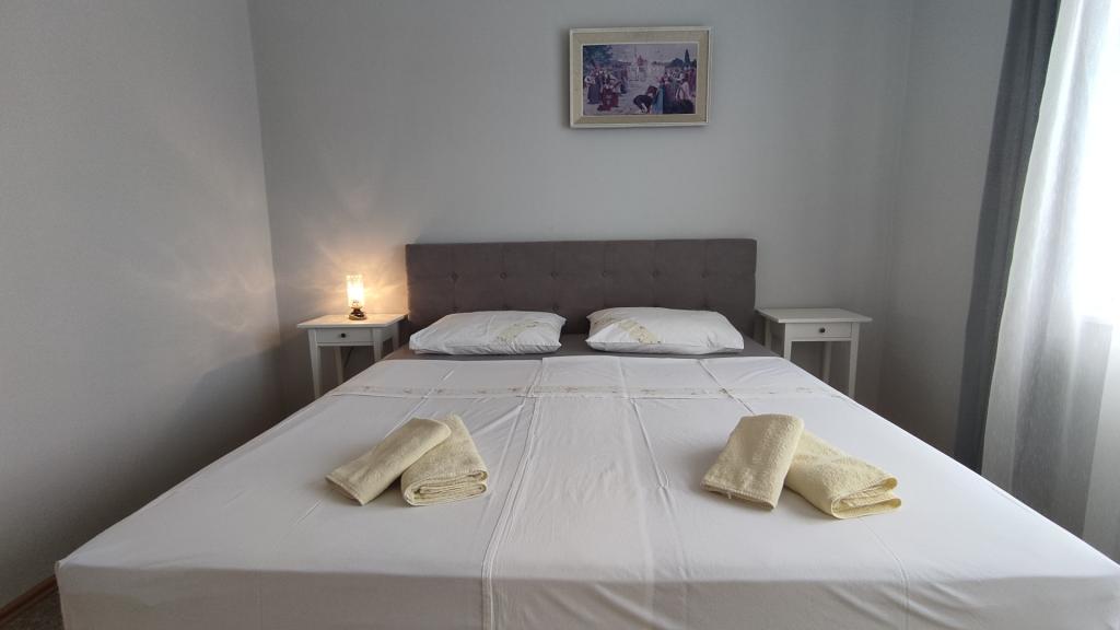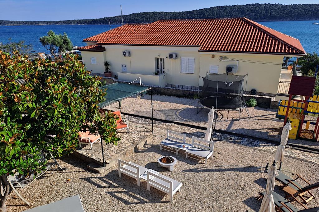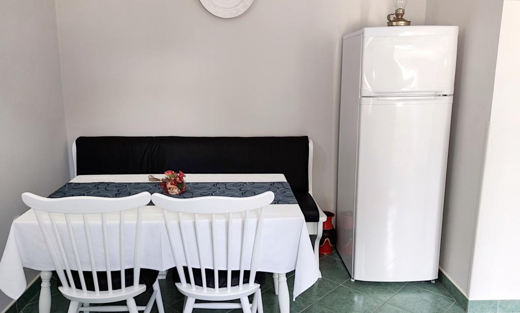 Appartements à 30 m de la mer, amarrage gratuit pour le navire. La maison appartenant à la famille Snježana et Slobodan (Bobo) Frankić est située à Barbat sur l'île de Rab, à 4 km de la ville de Rab et à 6 km du ferry. Il a été construit comme un bâtiment d'un étage avec cinq appartements à louer, une salle commune pour les divertissements et un appartement où vivent les hôtes. La maison est située au calme, dans un beau quartier résidentiel, elle se trouve à seulement 30 mètres de la mer et est entourée d'un parking, d'un jardin fleuri, d'un verger, d'une terrasse ensoleillée avec transats, d'une aire de jeux pour enfants et adultes. , et une terrasse commune. Il y a cinq appartements pour 4 personnes : Appartement 1, Appartement 3, Appartement 4, Appartement 5 et un appartement pour 2 personnes : Appartement 2. Deux appartements pour 4 personnes : Appartement 1, Appartement 3 et un appartement pour 2 personnes : Appartement 2 sont situé au rez-de-chaussée, et deux appartements pour quatre personnes : Appartement 4, Appartement 5 au premier étage (les hôtes et l'Appartement 5 loué partagent une terrasse). Tous les appartements disposent de la climatisation. Wifi gratuit
