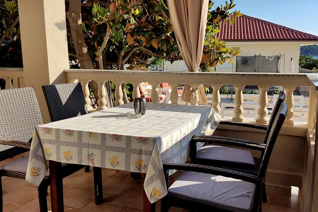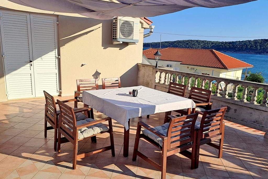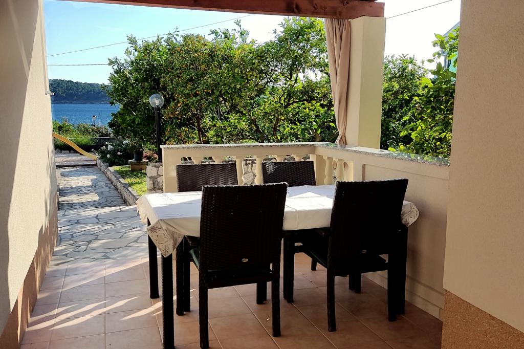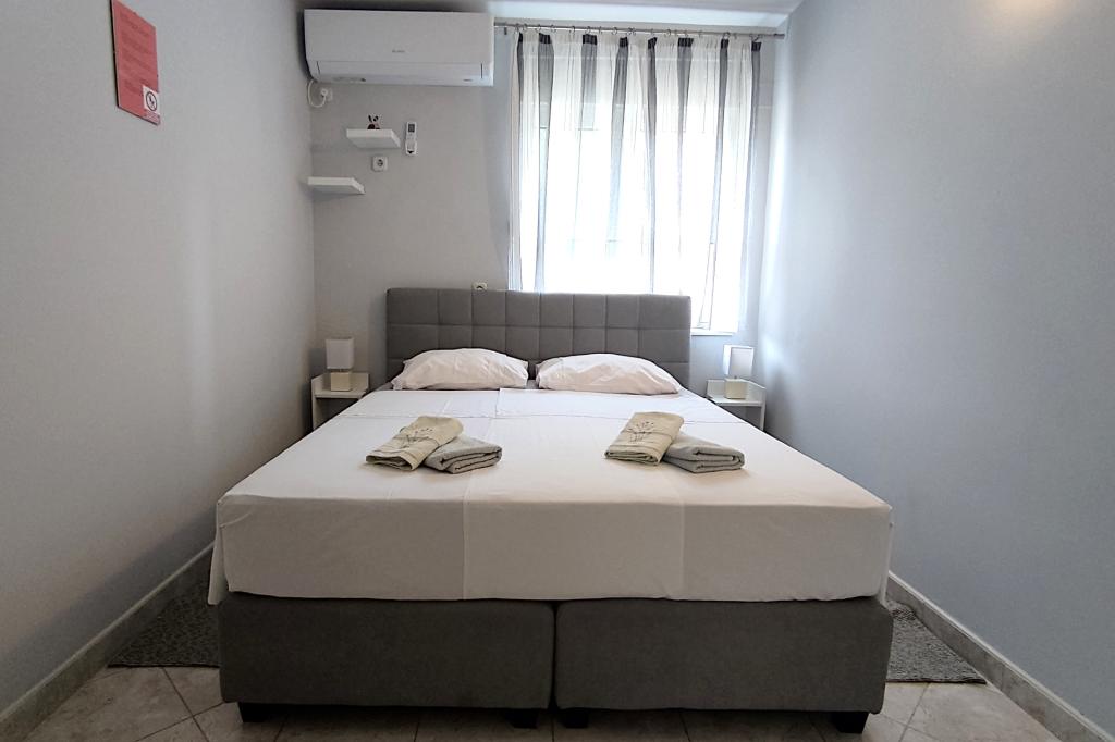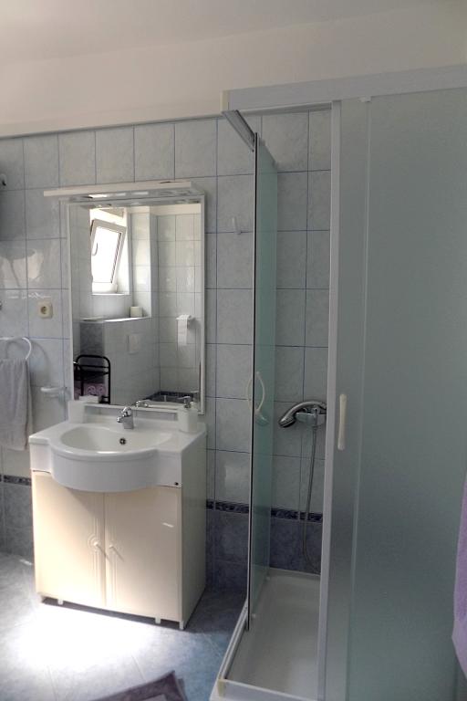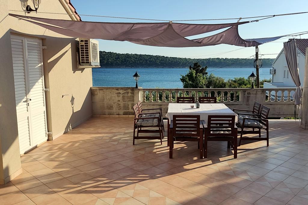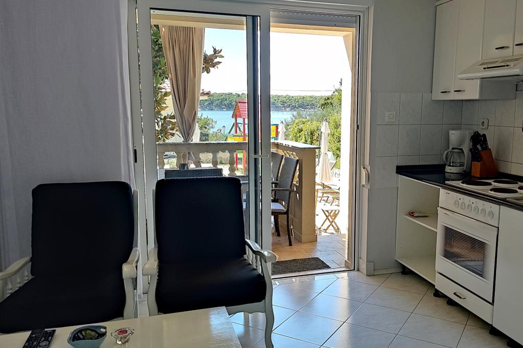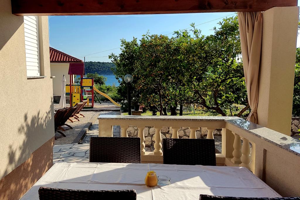 Appartements à 30 m de la mer, amarrage gratuit pour le navire. La maison appartenant à la famille Snježana et Slobodan (Bobo) Frankić est située à Barbat sur l'île de Rab, à 4 km de la ville de Rab et à 6 km du ferry. Il a été construit comme un bâtiment d'un étage avec cinq appartements à louer, une salle commune pour les divertissements et un appartement où vivent les hôtes. La maison est située au calme, dans un beau quartier résidentiel, elle se trouve à seulement 30 mètres de la mer et est entourée d'un parking, d'un jardin fleuri, d'un verger, d'une terrasse ensoleillée avec transats, d'une aire de jeux pour enfants et adultes. , et une terrasse commune. Il y a cinq appartements pour 4 personnes : Appartement 1, Appartement 3, Appartement 4, Appartement 5 et un appartement pour 2 personnes : Appartement 2. Deux appartements pour 4 personnes : Appartement 1, Appartement 3 et un appartement pour 2 personnes : Appartement 2 sont situé au rez-de-chaussée, et deux appartements pour quatre personnes : Appartement 4, Appartement 5 au premier étage (les hôtes et l'Appartement 5 loué partagent une terrasse). Tous les appartements disposent de la climatisation. Wifi gratuit
