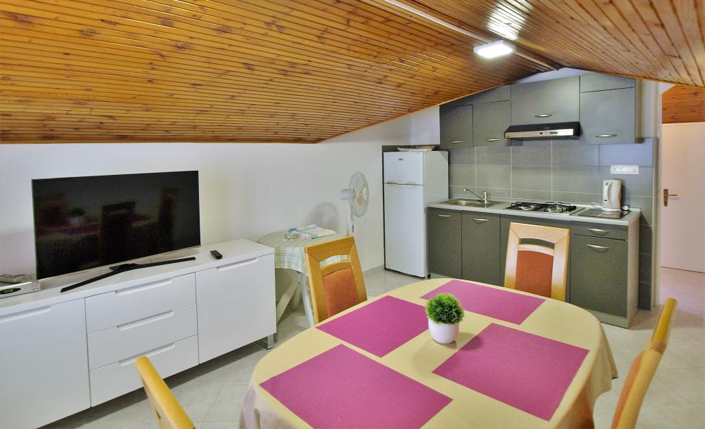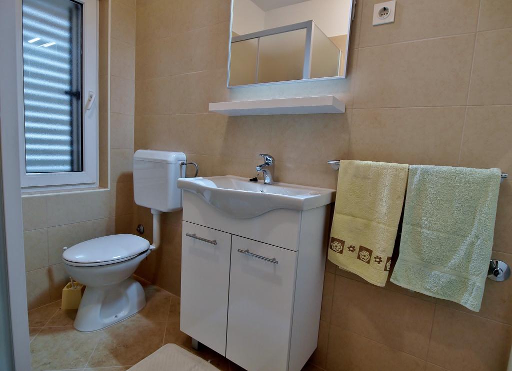 Chers invités! Nous proposons des appartements pour 4 personnes. Chaque appartement se compose de deux chambres doubles, d'une cuisine avec salle à manger et chaque chambre a également sa propre salle de bain ou douche / WC. Tous les appartements disposent d'un balcon / terrasse avec vue sur la mer, disposent de la télévision par satellite et sont climatisés. Les draps et les serviettes, ainsi que tout le nécessaire pour passer d'agréables vacances se trouvent dans les appartements et il n'est pas nécessaire d'apporter quoi que ce soit avec vous lorsque vous partez en vacances. Le linge de lit est changé une fois par semaine et les serviettes à volonté. Dehors, nous avons une grande terrasse et salle à manger, et un grand barbecue / grill dans la cour que vous pouvez utiliser à votre guise. Il y a aussi la possibilité d'utiliser une machine à laver.
