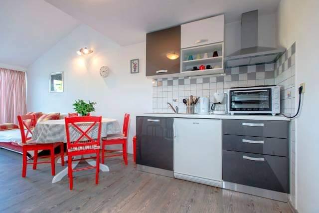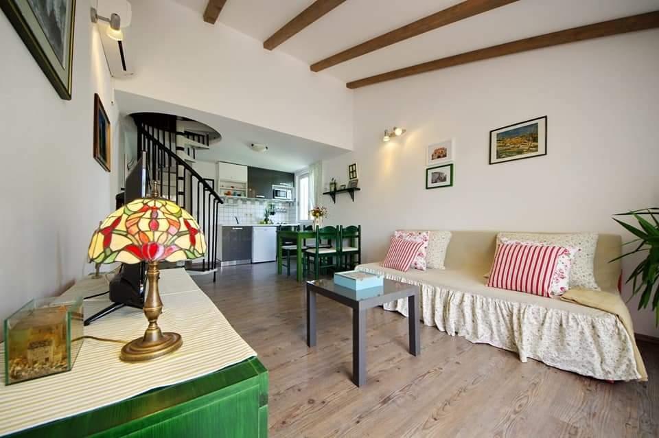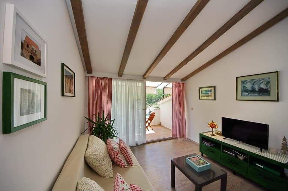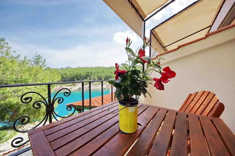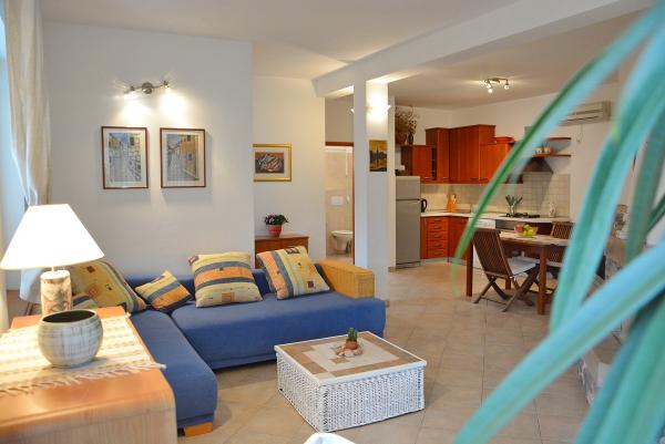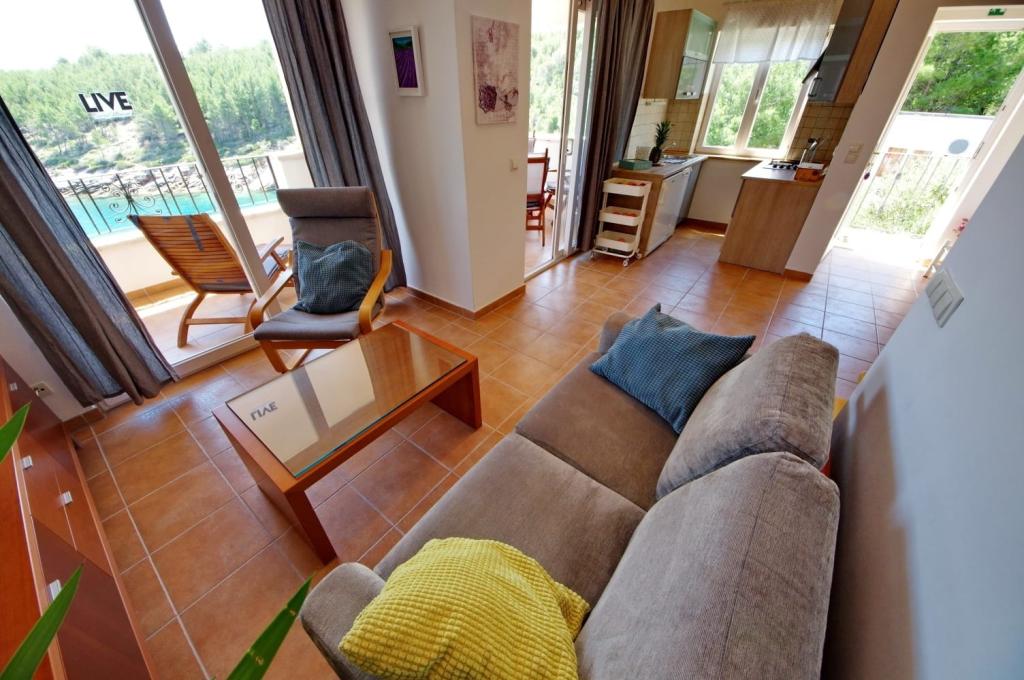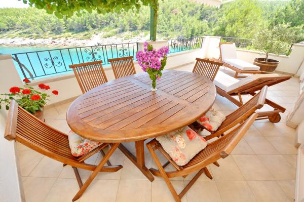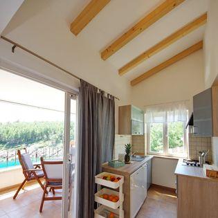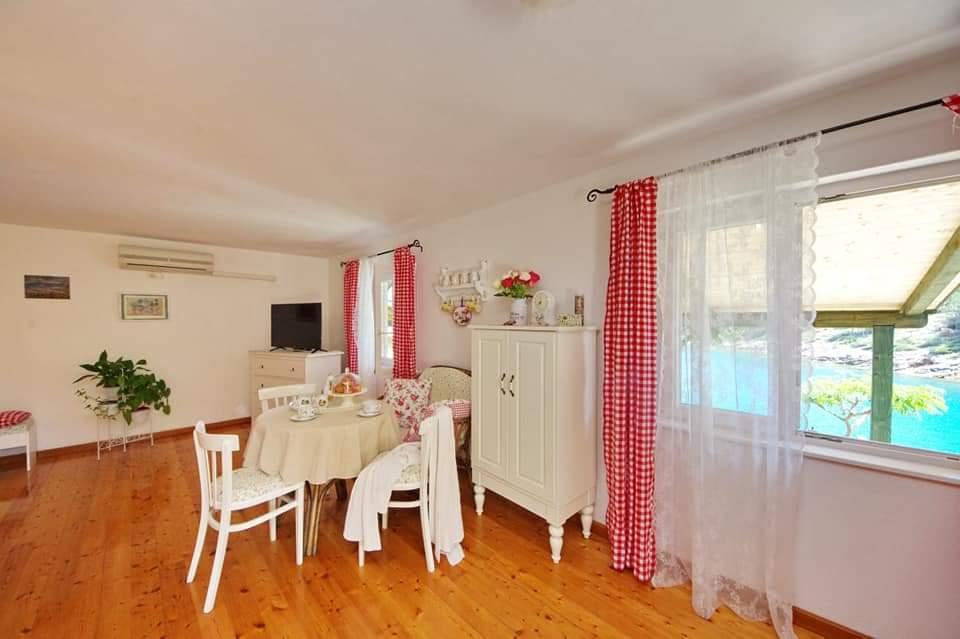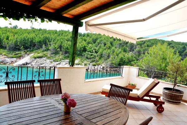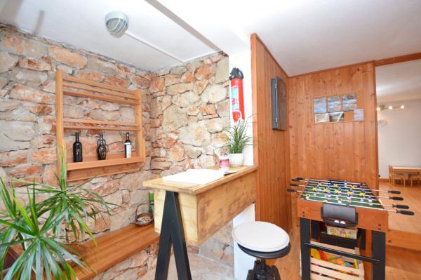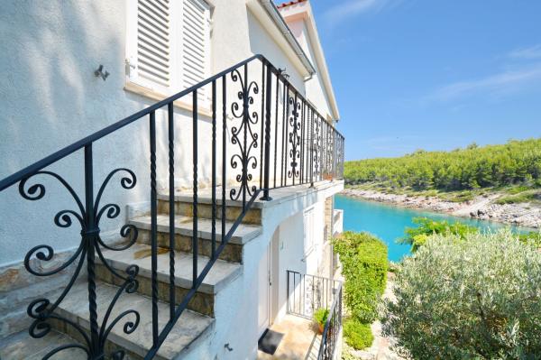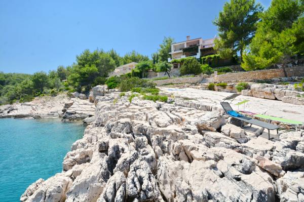 Immeuble, en cascade, dans une belle baie calme, au premier rang en bord de mer, avec 6 appartements entièrement équipés, salle de fitness, parking privé, 2 cheminées extérieures, 2 douches extérieures, solarium, jacuzzi extérieur, aire de jeux pour enfants et jardin. RUZMARIN (2) - 21 m2, entrée indépendante, rez-de-chaussée, terrasse 20 m2, séjour avec cuisine et WC. KADULJA (4) - 60 m2, entrée indépendante, étage intermédiaire, terrasse 25 m2, séjour avec cuisine et 2 chambres avec 2 WC. FIG (2) - 40 m2, entrée indépendante, étage supérieur, terrasse 7 m2, séjour avec cuisine, WC et chambre sous combles. LAVANDA (4+1) - 60 m2, entrée indépendante, étage supérieur, terrasse 15 m2, hall d'entrée, séjour avec cuisine et 2 chambres avec 2 toilettes. MASLINA (4) - 65 m2, entrée indépendante, étage intermédiaire, terrasse 20 m2, hall d'entrée, séjour avec cuisine et cheminée, 2 chambres avec 2 toilettes. LOVOR (2+1) - 45 m2, entrée indépendante, rez-de-chaussée, terrasse 20 m2, séjour avec cuisine et chambre avec WC.