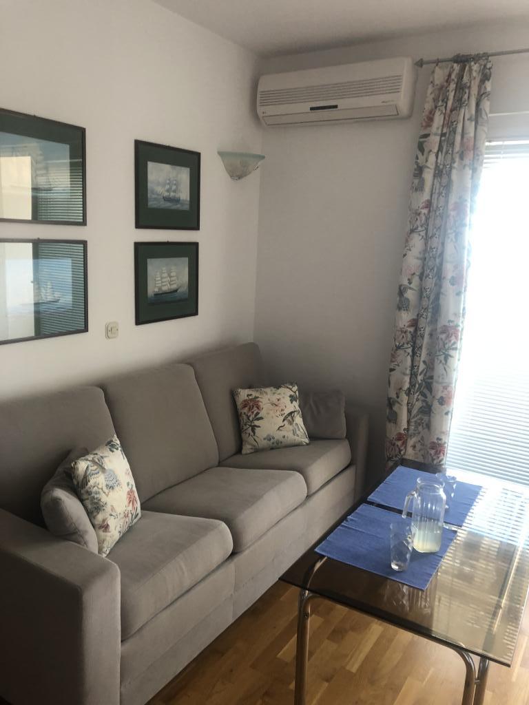 L'appartement mesure 45 m² et se trouve au deuxième étage et se compose d'une chambre avec une belle vue sur la mer, d'un salon avec un canapé-lit qui se transforme instantanément en un lit confortable pour deux personnes, d'une cuisine entièrement équipée avec micro-ondes, lave-vaisselle, four, cafetière, grille-pain, bouilloire, salle de bain avec douche, lave-linge et sèche-cheveux, serviettes, TV satellite, climatisation, W-LAN, coffre-fort, balcon avec vue sur la mer avec auvent, nous avons un garage pour garer votre voiture, avec possibilité d'utiliser des vélos.