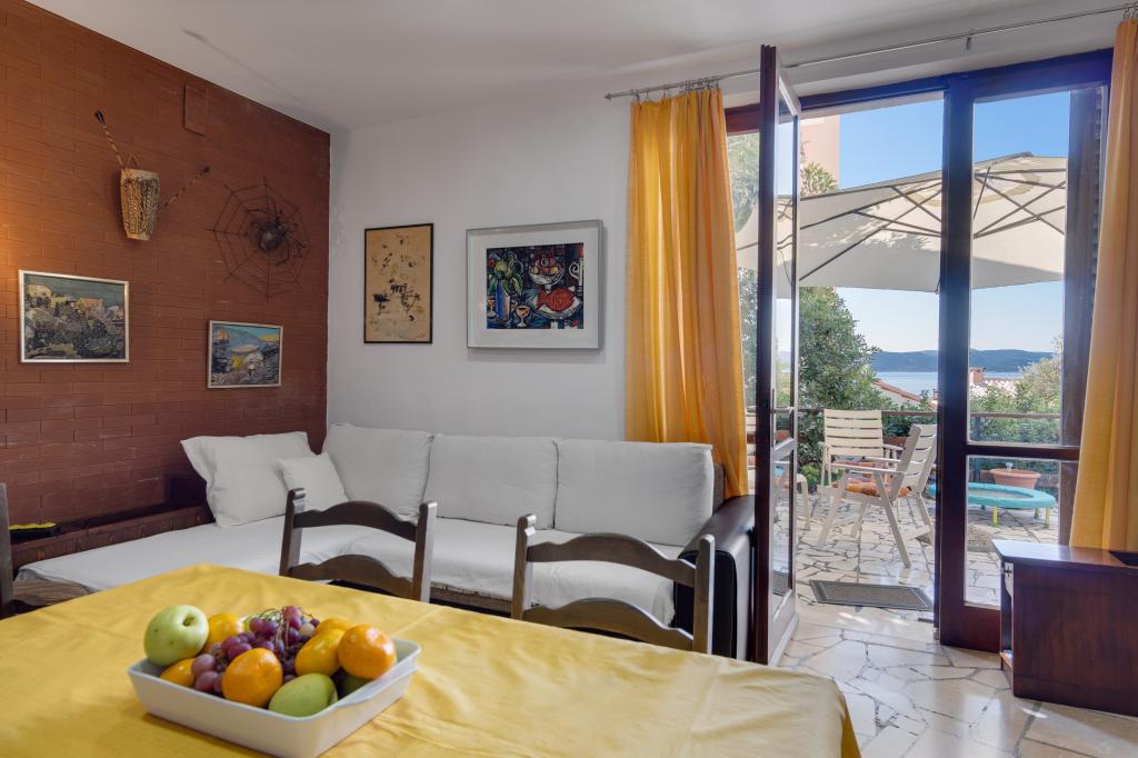 L'appartement Rustica est situé dans un endroit calme, idéal pour des vacances en famille, avec une grande cour et une cuisine extérieure avec grill. Elle est décorée dans un style rustique, sur deux étages, adaptée à une famille (3 générations).