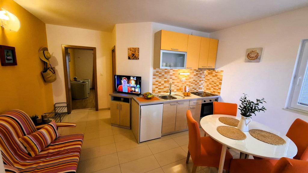Les appartements équipés de façon moderne Harmonia sont le choix idéal pour des vacances confortables en famille ou pour les couples à la recherche d'un hébergement confortable près de la plage. À environ 200m de la plage de Nikola, dans un quartier attrayant de Baška Voda et non loin du centre avec une belle vue latérale sur la mer et la montagne Biokovo. Nous proposons un hébergement dans des appartements verts et orange, destinés à 2 adultes avec 2 petits enfants et dans un appartement turquoise pour 2 adultes avec ev. 1 enfant. Chaque appartement fait 40m2, a une grande chambre, un salon qui comprend une cuisine entièrement équipée, une table et des chaises et un canapé-lit, une salle de bains et une terrasse. Les appartements verts et oranges sont situés au premier étage de la maison familiale et disposent de grands balcons avec vue latérale sur la mer, tandis que l'appartement turquoise est situé au sous-sol de la maison sans vue sur la mer, avec une grande terrasse et des fauteuils lounge. Chaque appartement est entièrement équipé, respirant la propreté et les couleurs vives qui vous feront sûrement vous sentir à l'aise et passer de bonnes vacances.