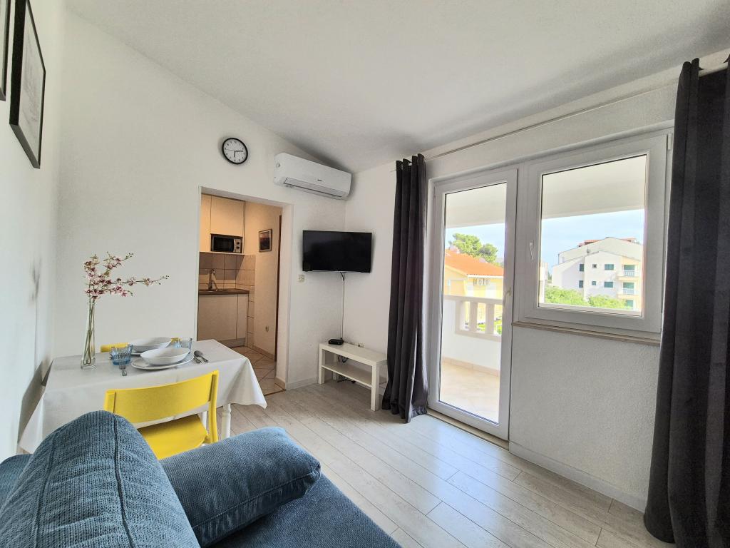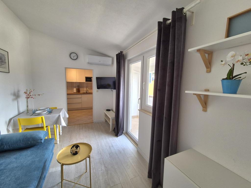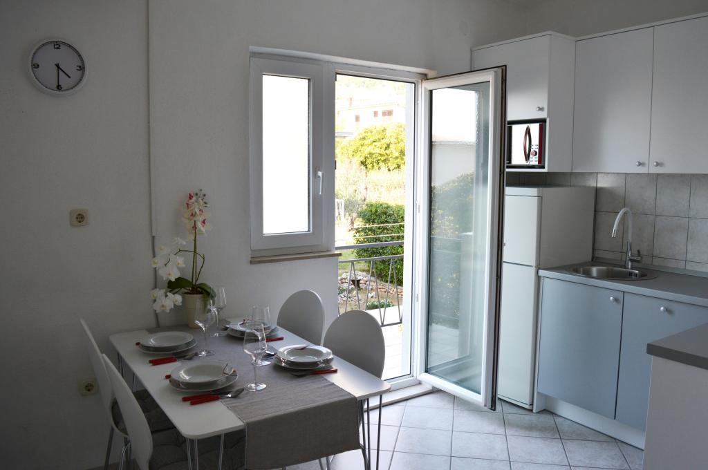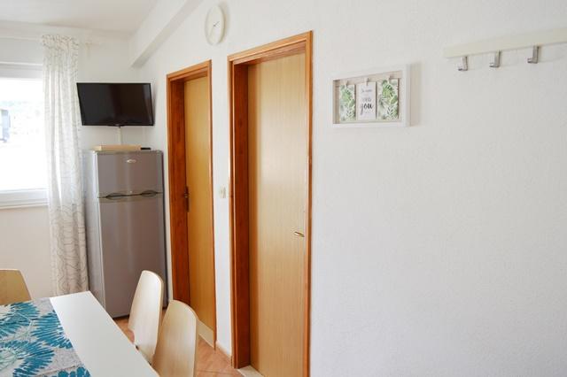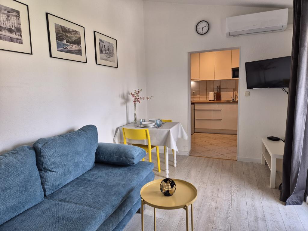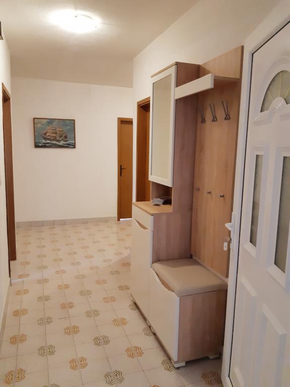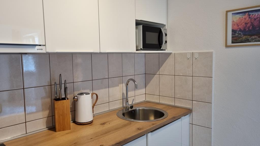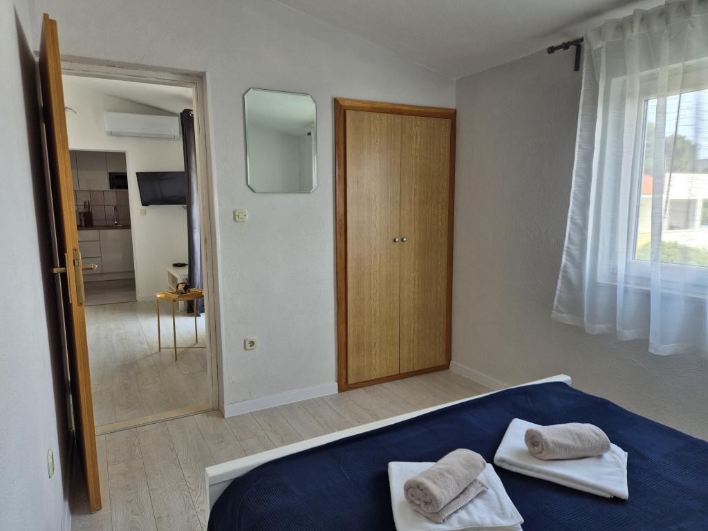 Nous avons séjourné dans le logement pendant 10 jours. Je peux dire que l'hôtesse est une femme formidable ! Gentil et agréable ! Elle nous a accueillis avec du brandy maison. Elle offrait à sa fille un biscuit, une barre chocolatée et un fruit presque tous les jours. Le logement est propre et bien rangé ! La cuisine est peut-être mieux équipée que la mienne. L'appartement dispose d'un sèche-cheveux, d'une planche et d'un fer à repasser, ainsi que d'un évier. Notre voiture était garée dans la cour de la villa, à l'ombre. La mer est à seulement 200 m, tout comme le magasin. Konzum ou Tommy sont tout aussi loin si vous souhaitez faire vos courses près de la mer. Je recommande vivement. J'espère que nous reviendrons à Baške Vode un jour, et si c'est le cas, nous reviendrons certainement chez Tante Neva.