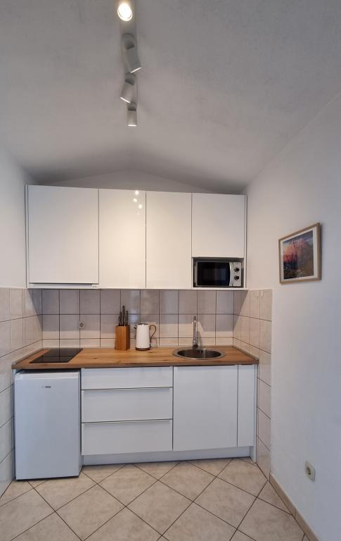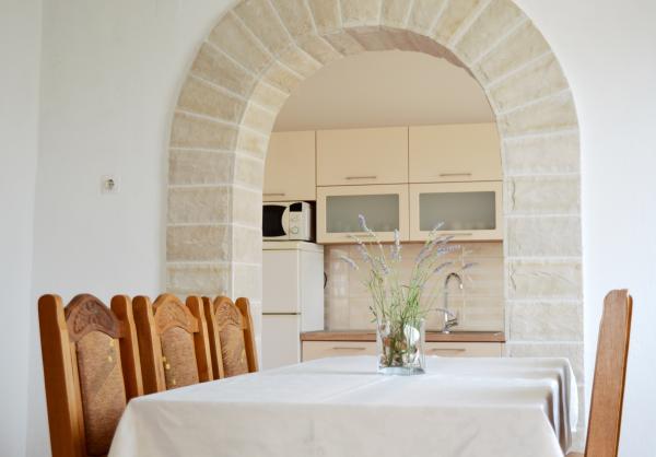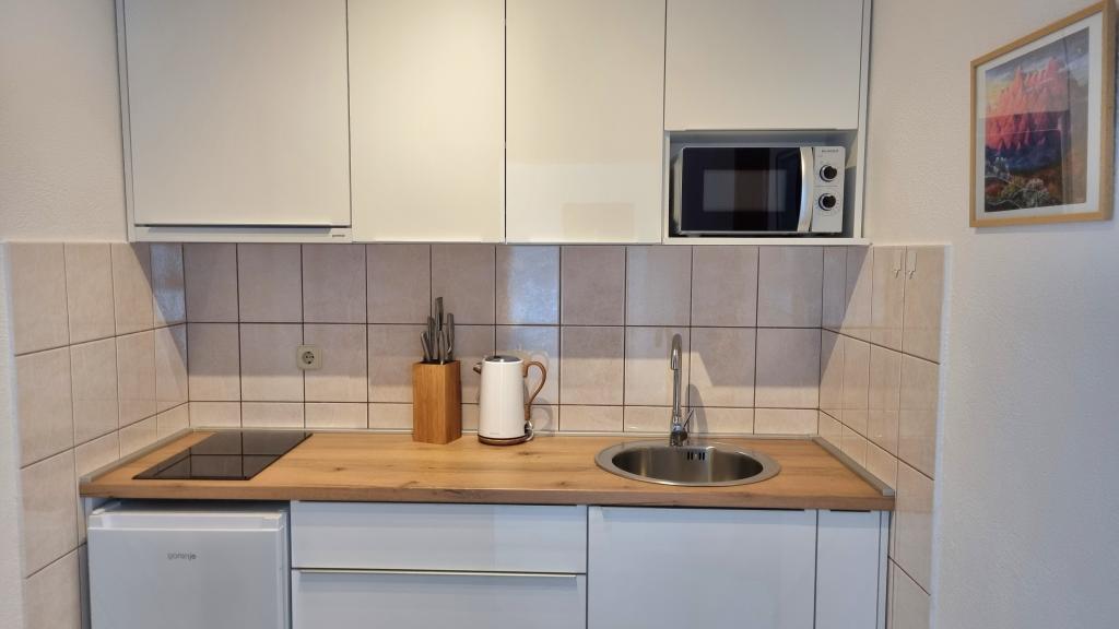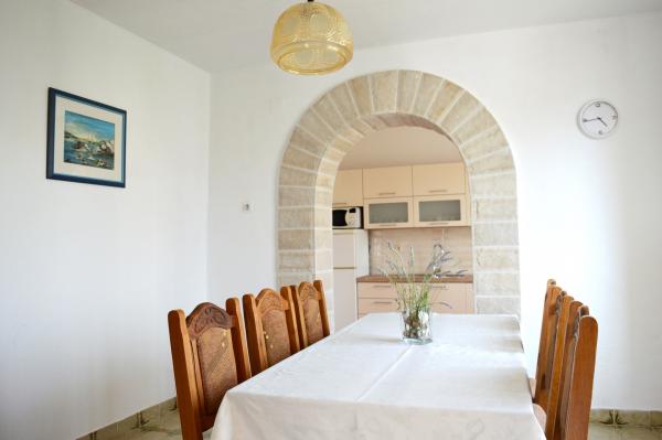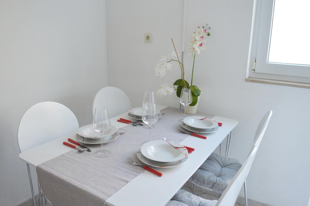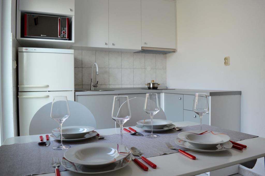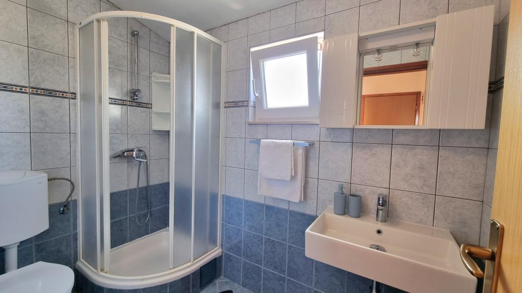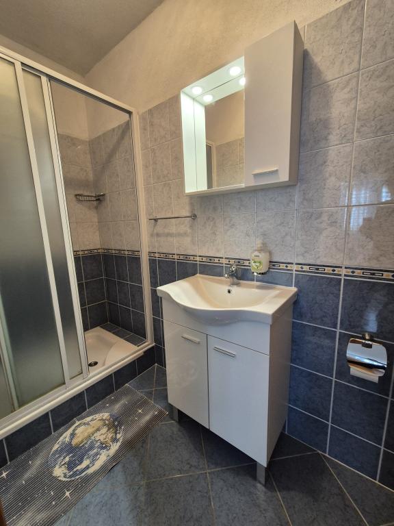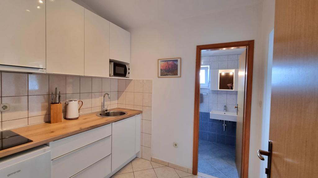 Nous avons séjourné dans le logement pendant 10 jours. Je peux dire que l'hôtesse est une femme formidable ! Gentil et agréable ! Elle nous a accueillis avec du brandy maison. Elle offrait à sa fille un biscuit, une barre chocolatée et un fruit presque tous les jours. Le logement est propre et bien rangé ! La cuisine est peut-être mieux équipée que la mienne. L'appartement dispose d'un sèche-cheveux, d'une planche et d'un fer à repasser, ainsi que d'un évier. Notre voiture était garée dans la cour de la villa, à l'ombre. La mer est à seulement 200 m, tout comme le magasin. Konzum ou Tommy sont tout aussi loin si vous souhaitez faire vos courses près de la mer. Je recommande vivement. J'espère que nous reviendrons à Baške Vode un jour, et si c'est le cas, nous reviendrons certainement chez Tante Neva.