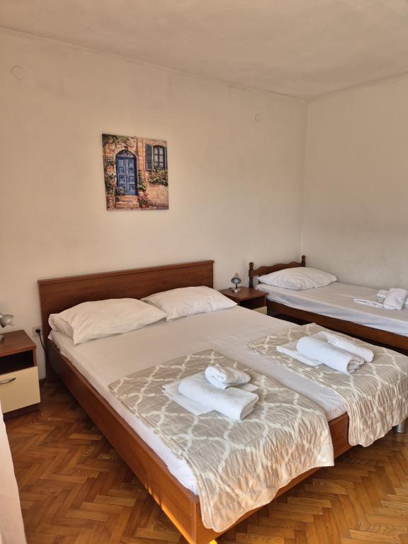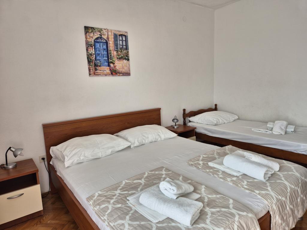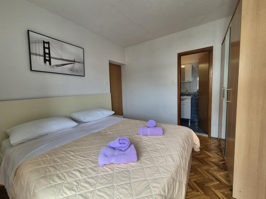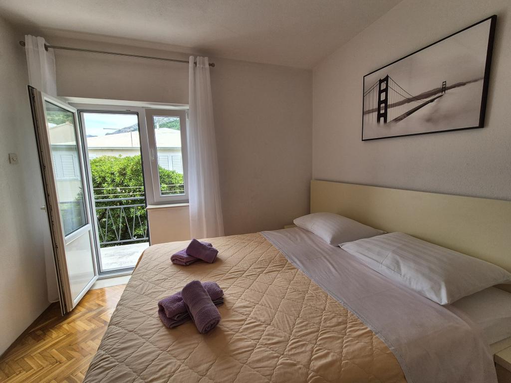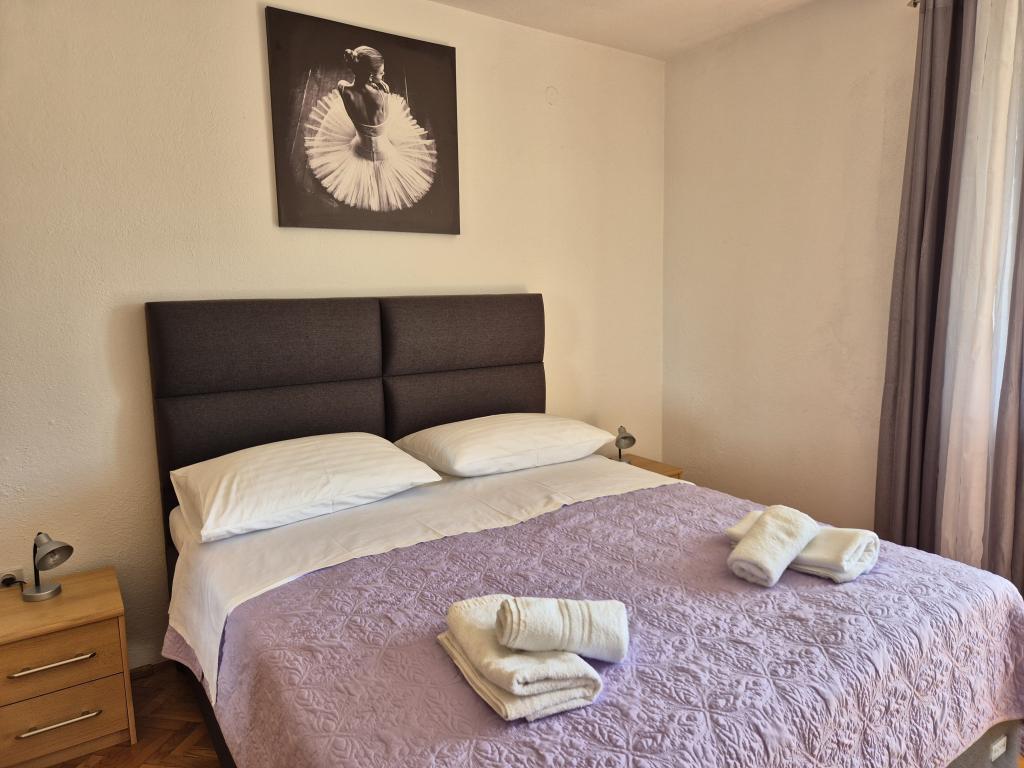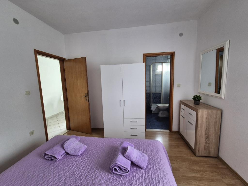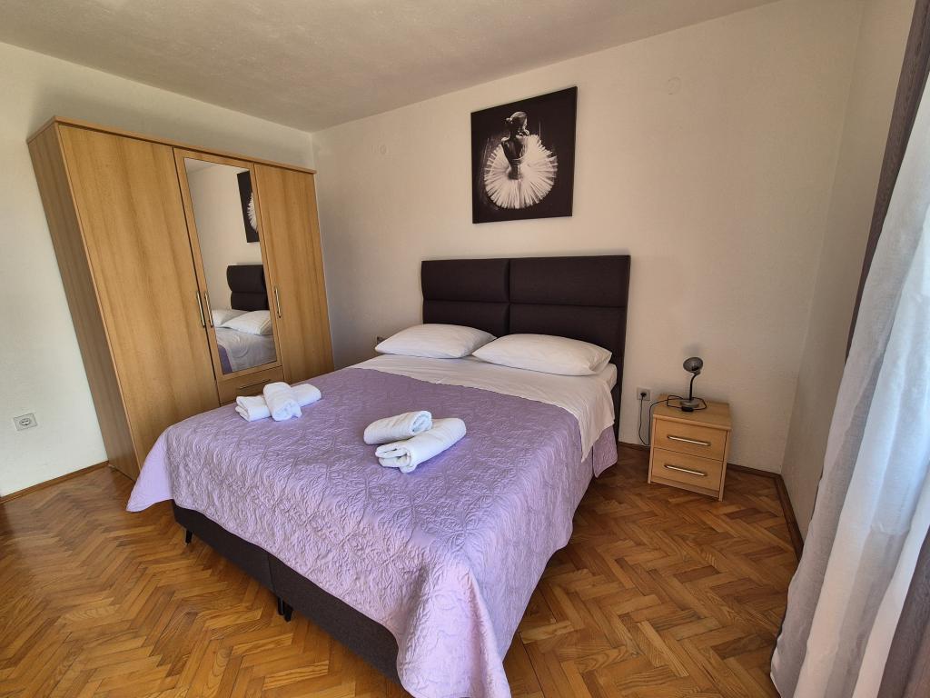 Appartements entièrement et modernes dans un quartier calme de Baska Voda, parking et une offre complète de tout ce dont vous avez besoin pour des vacances agréables et sans soucis (climatisation, TV, Internet, machine à laver, barbecue, ...) dans une atmosphère agréable de la maison. Près de la mer (200m) et des installations de divertissement, et de nombreuses plages. UN PARKING PRIVÉ est disponible sur place. L'ACCÈS INTERNET SANS FIL est disponible dans tout l'établissement et est gratuit. Populaire pour les familles avec enfants (jardin et jardin spacieux, emplacement CALME). APPARTEMENT A: 2 chambres spacieuses avec balcon (2 lits doubles et 1 lit simple) séjour avec 1 canapé-lit, 3 salles de bains, cuisine avec lave-vaisselle, salle à manger, vue mer. APPARTEMENT B: 2 chambres (2 lits doubles), 2 salles de bain, 2 balcons. APPARTEMENT C: 1 chambre (1 grand lit double), canapé-lit dans la salle à manger, balcon. APPARTEMENT D: 2 chambres (2 lits doubles), 1 salle de bain, balcon avec vue mer.