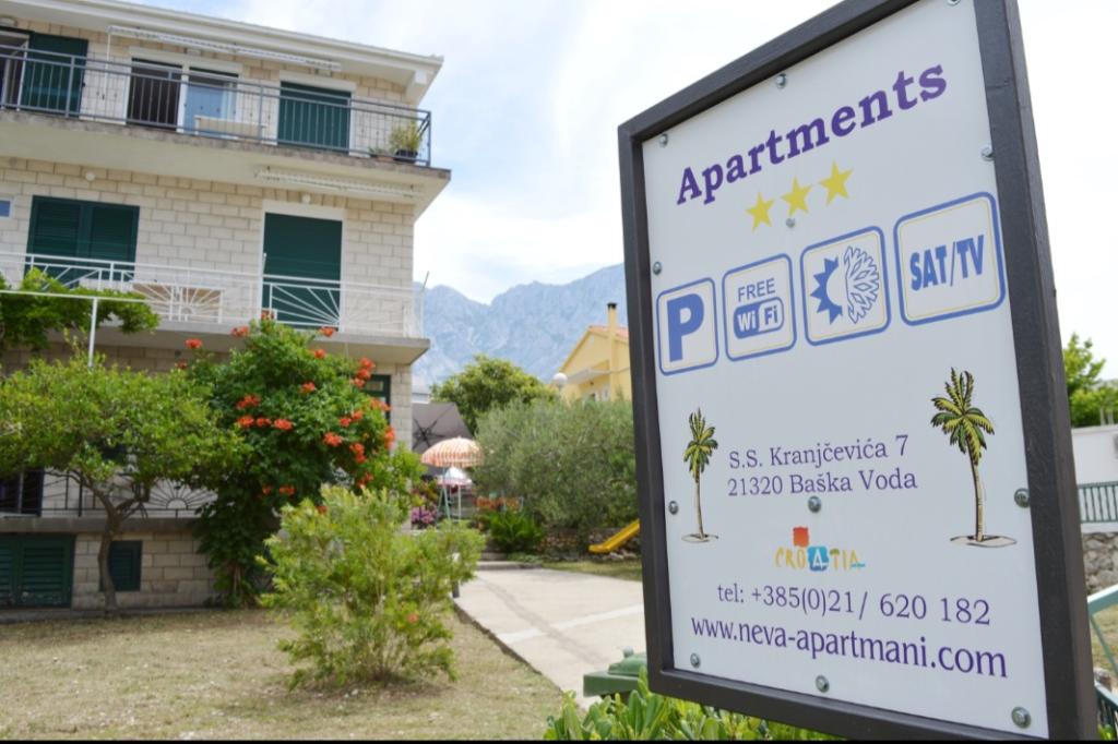 En savoir plus Unités d'hébergementEntrée dans l'appartement après 14h00 le jour de l'arrivée. Départ de l'appartement jusqu'à 10h00 le jour du départ. La réservation d'hébergement se fait en versant une avance sur un compte bancaire d'un montant minimum de 1 nuit dans l'arrangement dans les 2 jours, et le reste à l'arrivée. UNE INFORMATION IMPORTANT: Veuillez informer l'établissement Apartmani Neva Baška Voda à l'avance de l'heure à laquelle vous prévoyez d'arriver. Ils peuvent faire part de leurs remarques au moment de la réservation ou contacter directement l'établissement via les coordonnées fournies dans la confirmation de réservation au moins 24 heures avant l'arrivée (e-mail / sms / ce qui est app / viber).
