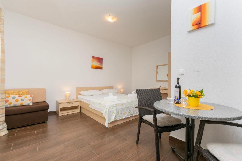 Studios et appartements entièrement neufs et modernes situés à Baska Voda, à 200 m de la mer. Ils sont climatisés, grands et spacieux.