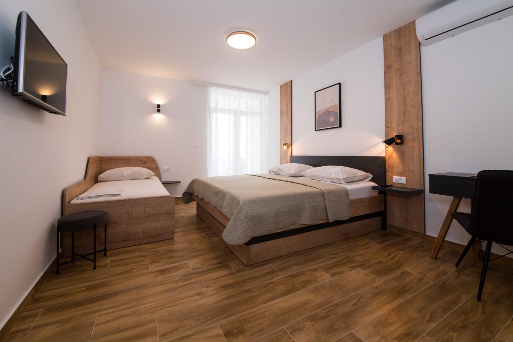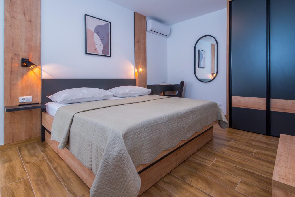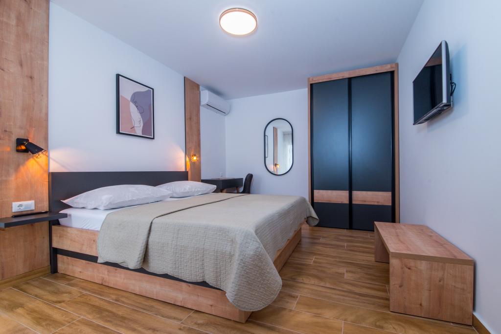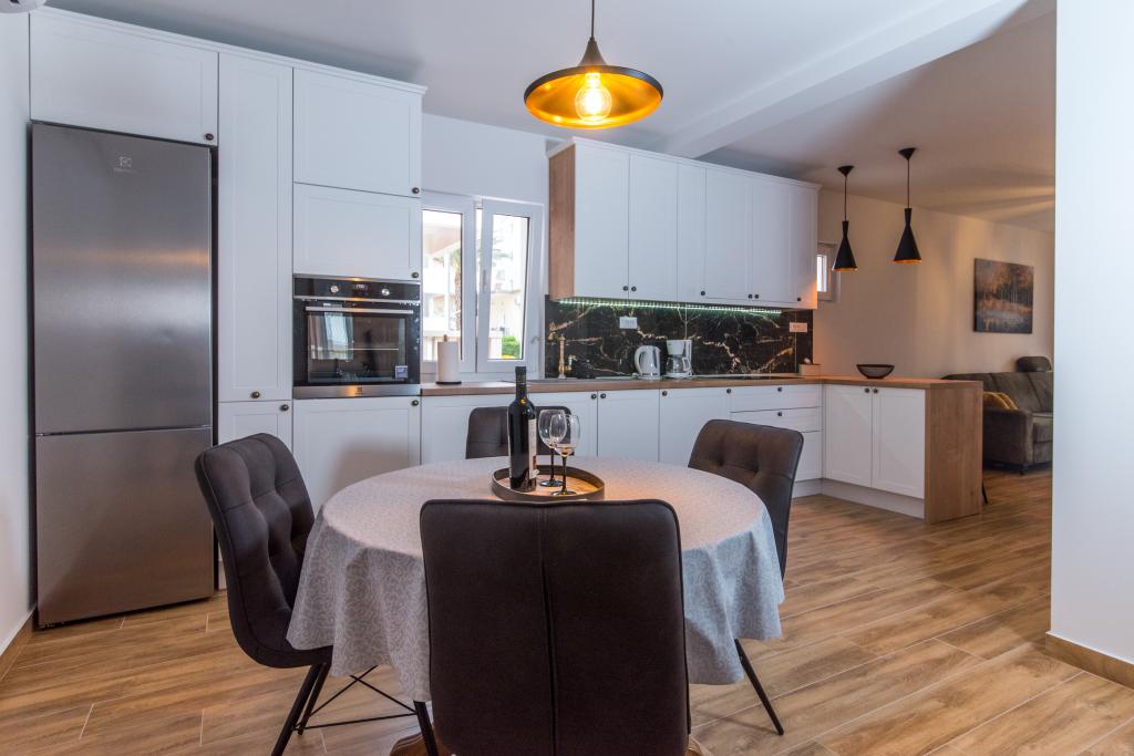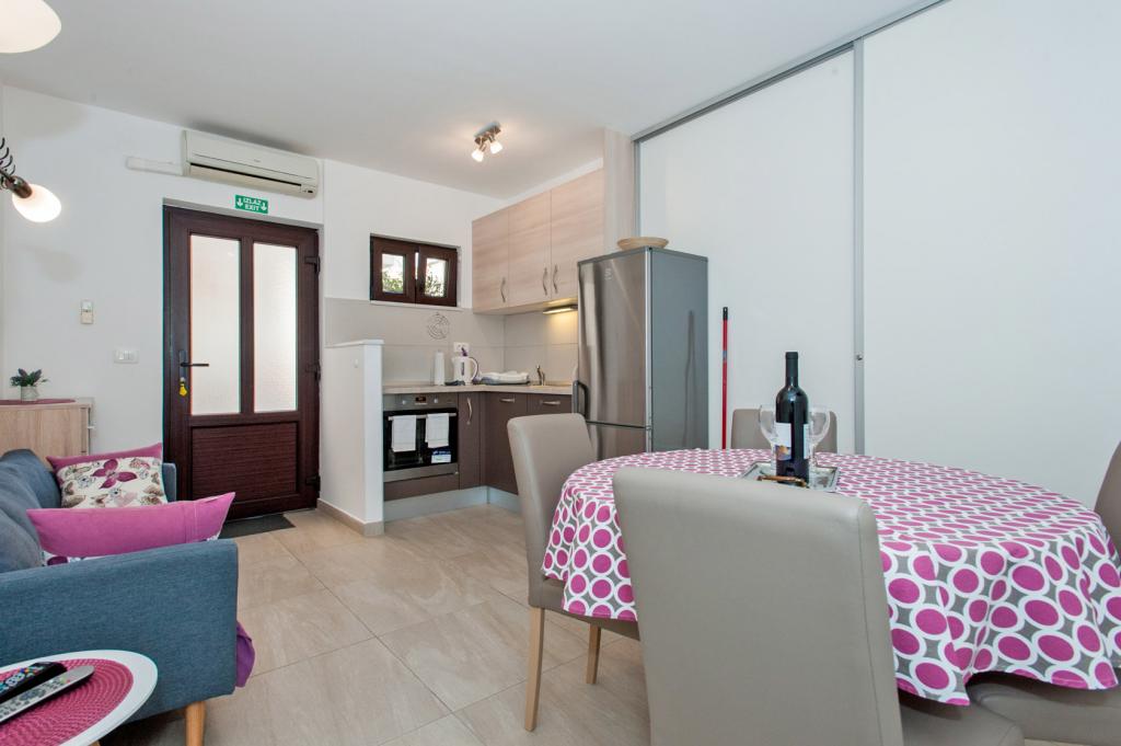 Dans notre maison, nous vous proposons des appartements confortables avec 2-7 lits. Tous les appartements sont équipés avec cuisine, de la climatisation et d'une télévision par satellite. Nous sommes situés dans une partie calme de la ville, à seulement 100m de la mer et la plage de sable. Restaurants et commerces sont facilement accessibles et excursions organisées vers les îles et les montagnes. L'autoroute est à 20 km.