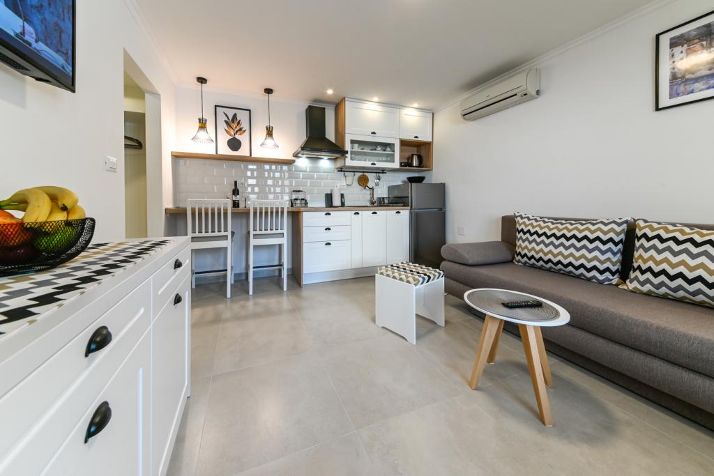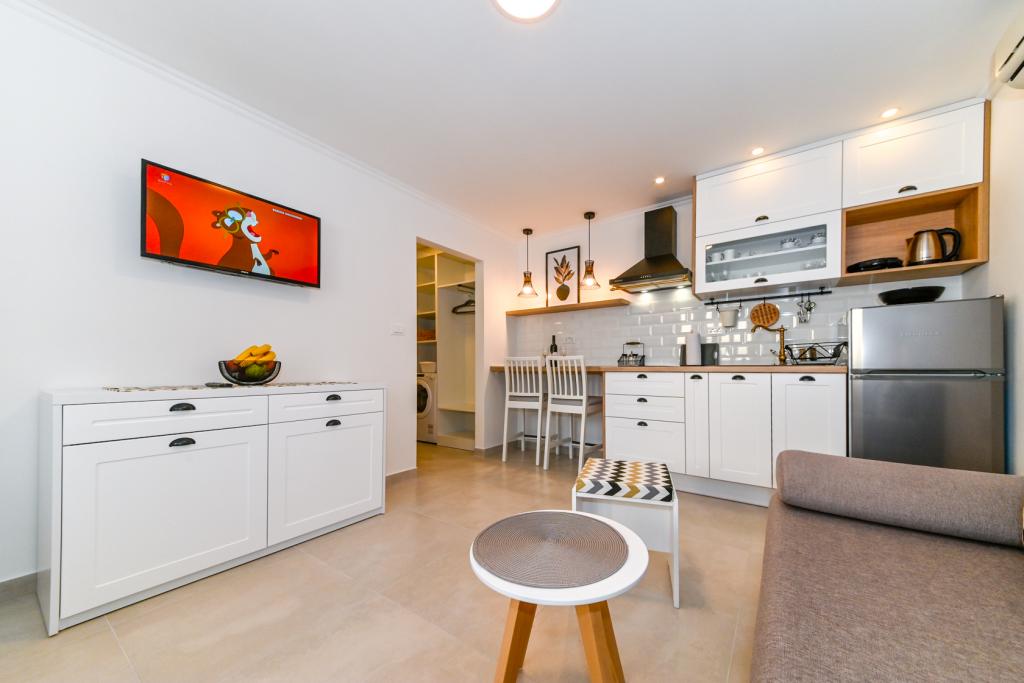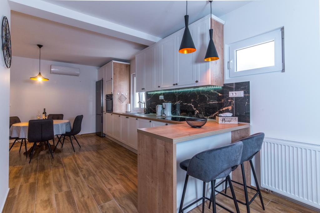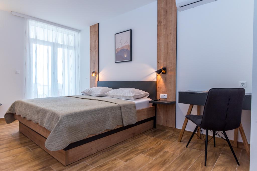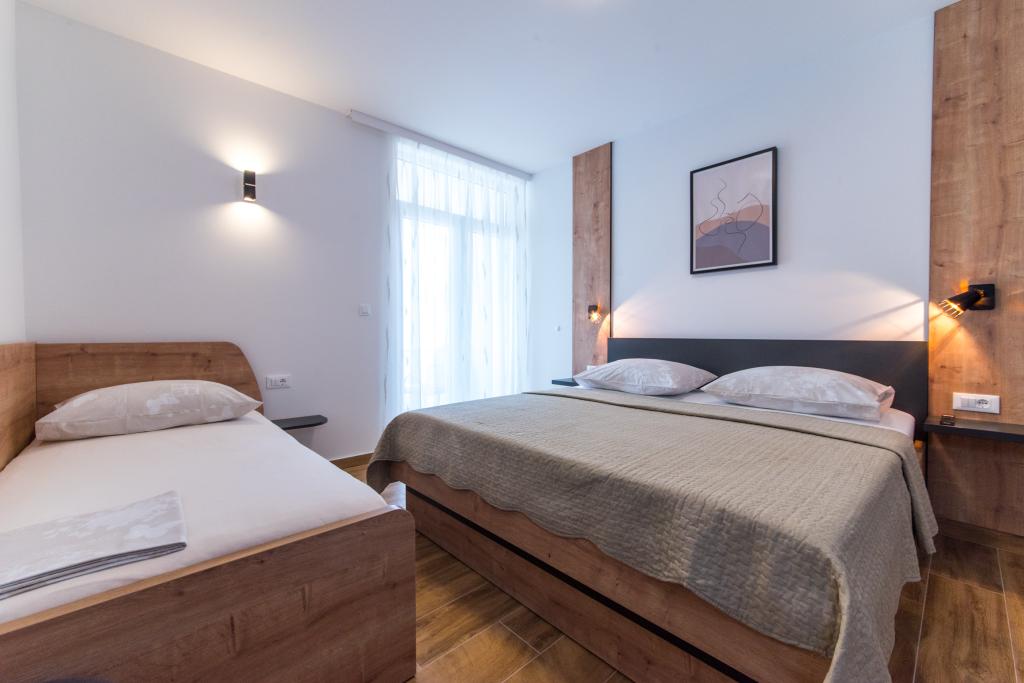 Dans notre maison, nous vous proposons des appartements confortables avec 2-7 lits. Tous les appartements sont équipés avec cuisine, de la climatisation et d'une télévision par satellite. Nous sommes situés dans une partie calme de la ville, à seulement 100m de la mer et la plage de sable. Restaurants et commerces sont facilement accessibles et excursions organisées vers les îles et les montagnes. L'autoroute est à 20 km.