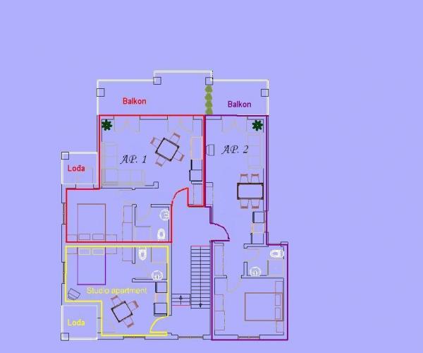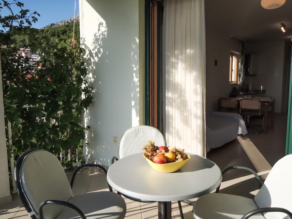 Appartements avec vue sur la mer, les salaires, et les îles, est situé au premier étage d'une maison située dans un quartier calme de Baska Voda sur une petite colline appelée Gradina 20 m au dessus du niveau de la mer et à 30 m de la mer, 2 à 3 minutes de la plus belle plage et 5 minutes du centre de Baska Voda. Parking privé en face de la maison.