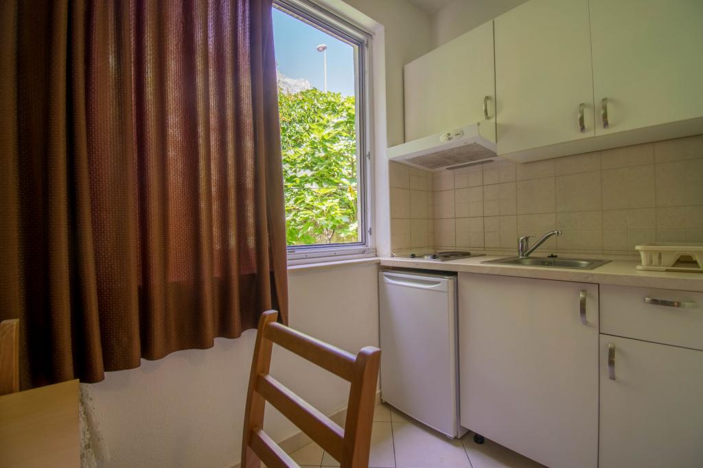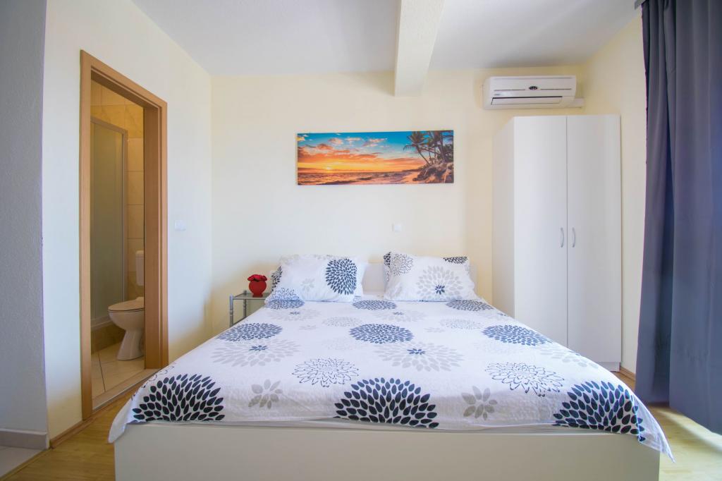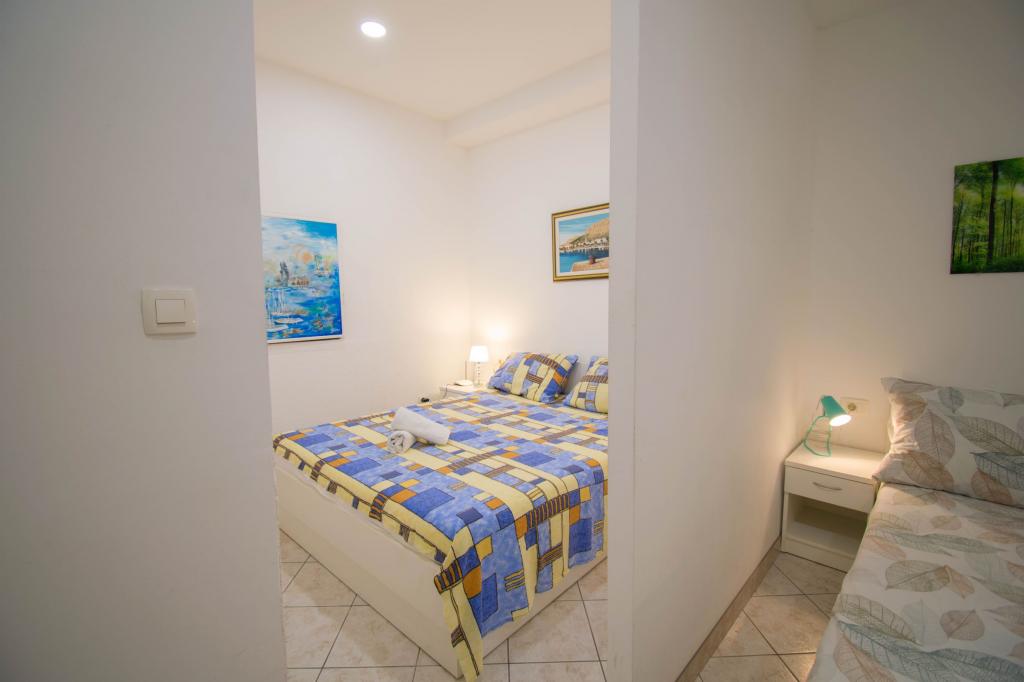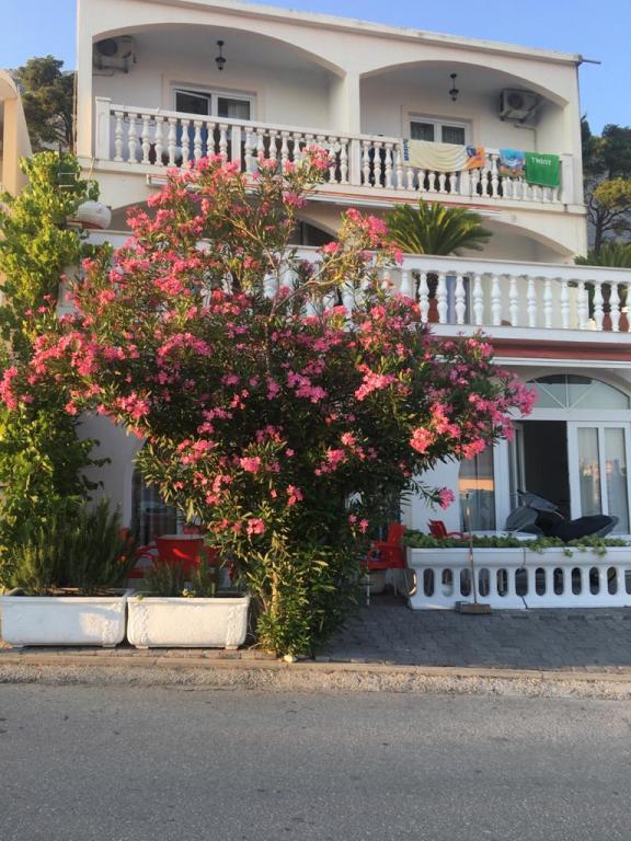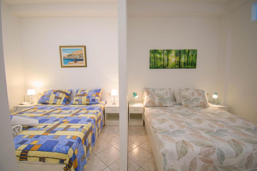 La propriété est située dans un quartier calme de Baska Voda. L'établissement est situé à 3 minutes à pied du centre et de la plage. Le restaurant est situé à 20 mètres de l'établissement. A proximité des commerces, la distance de 40 mètres. Deux appartements au rez-de-chaussée avec accès pour les personnes handicapées. Le parking est inclus dans le prix. Possibilité de transport de l'aéroport à l'hébergement en supplément.