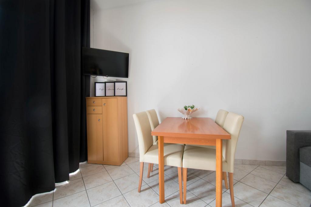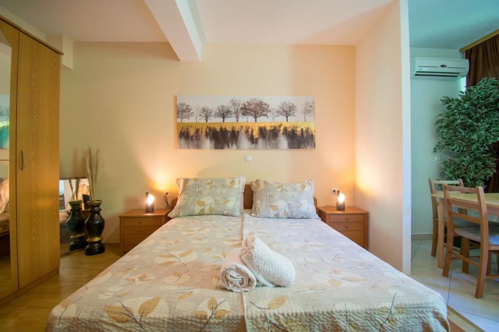 Appartement tel que décrit dans l'offre. Situé sur la route principale du village donc très facile à trouver. Il est proche de la plage et du centre-ville - maximum 5 minutes à pied. Un parking est disponible mais pas à la propriété elle-même, à environ 150-200 m de celle-ci. Très proche - dans un rayon de plusieurs centaines de mètres des marchés et une boulangerie. L'appartement que nous avons loué était au rez-de-chaussée. C'était propre et agréable. La climatisation fonctionne. Cuisine confortable et entièrement équipée (casseroles, assiettes, verres et autres ustensiles, réfrigérateur et cuisinière électrique à deux feux). Salle de bain avec douche - tout est OK. Les chambres disposent de grandes armoires et de grands lits très confortables. Il y a une petite terrasse avec une table à la sortie de l'appartement, mais on s'assoit presque sur le trottoir (je ne sais pas si c'est un inconvénient ou un avantage). Le propriétaire très gentil et serviable. Il parle très bien anglais. Je recommande vraiment cet appartement.