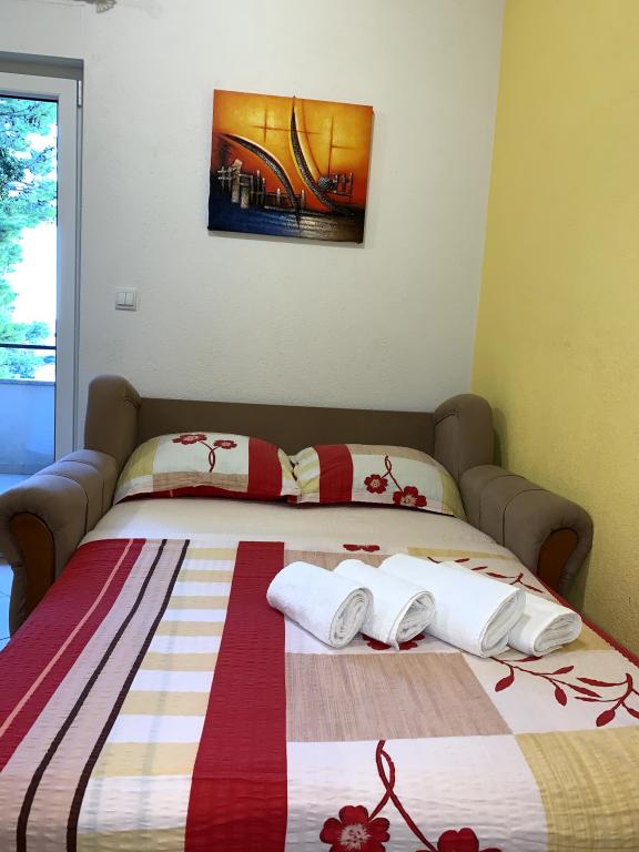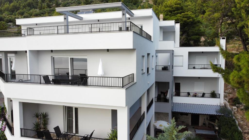 Nos appartements sont situés dans un quartier calme de Baska Voda, entouré de pins avec une vue magnifique sur la mer et les îles. Il vous permet de remplir la paix et une atmosphère détendue pour passer vos vacances.