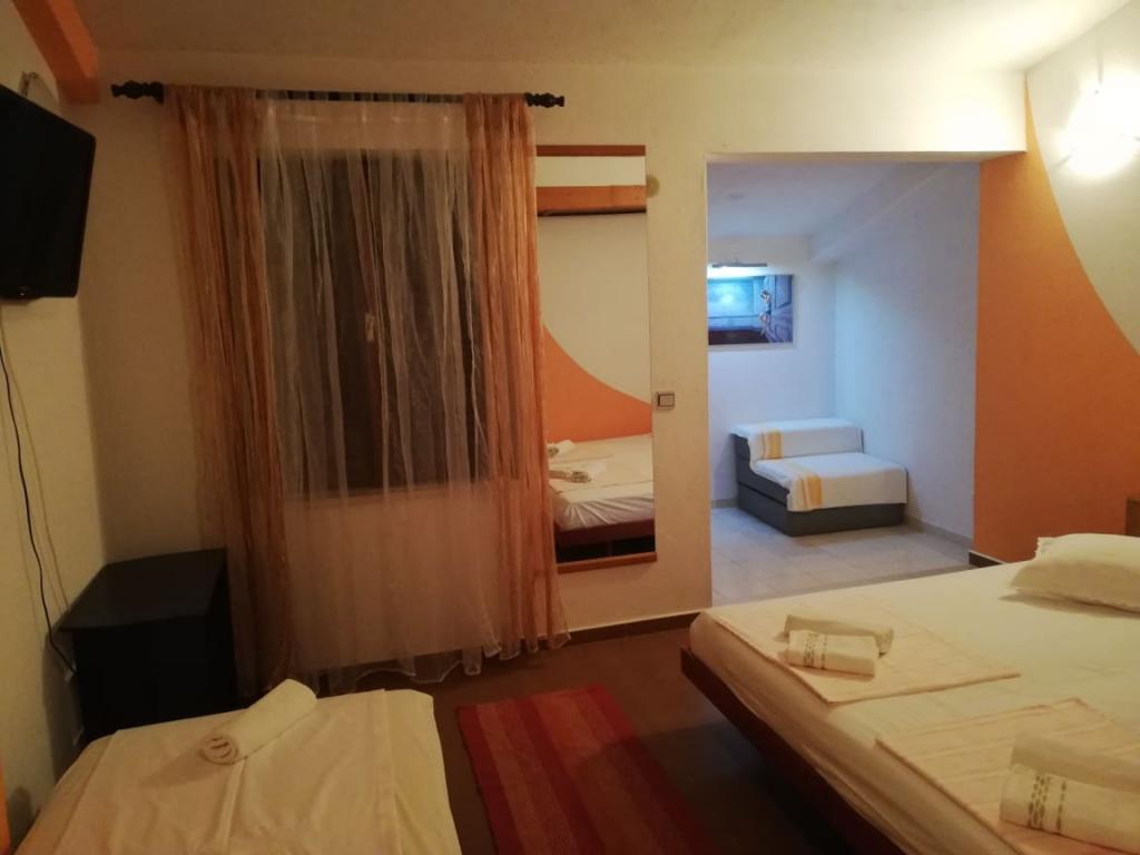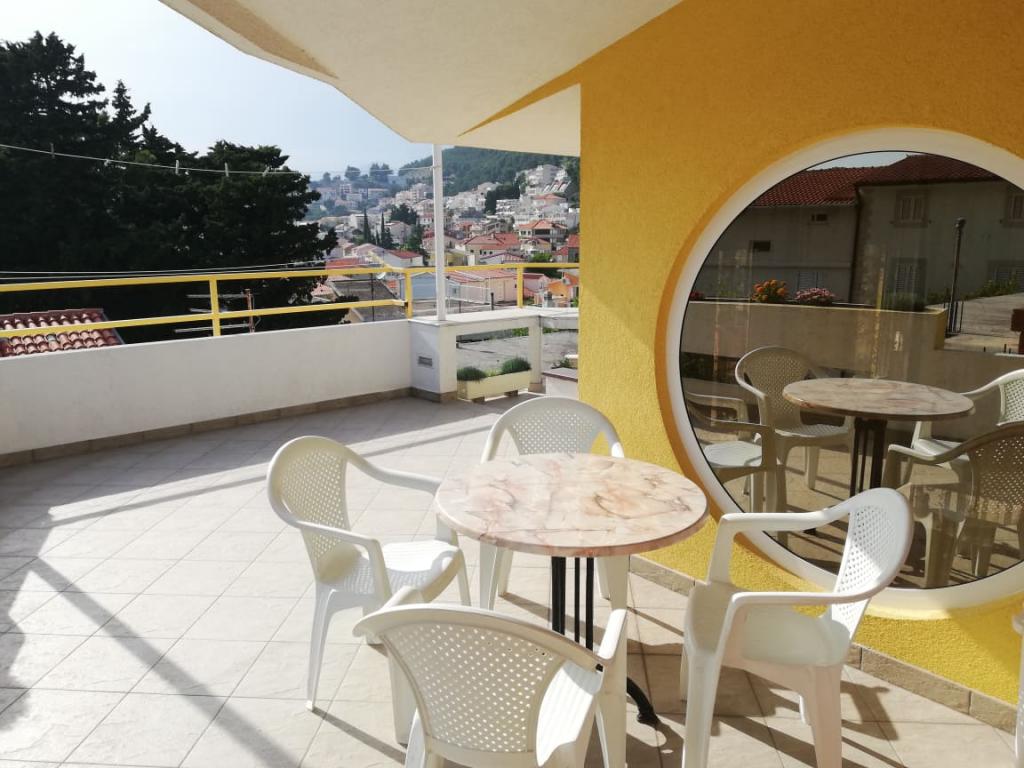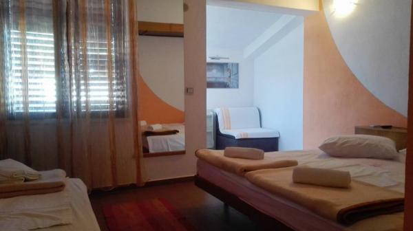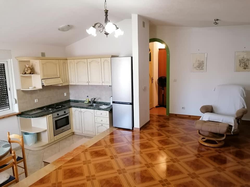 . Appartement, unité d'hébergement est au premier étage. Contenu: Deux chambres à coucher - une triple et une double - chaque chambre a sa propre toilette-douche, télévision, air conditionné, réfrigérateur. L'appartement dispose également d'une cuisine et d'une terrasse spacieuse / long. 12 m /. L'appartement est entièrement équipé avec draps, serviettes, cuisine avec kit de cuisine, wi-fi, parking réservé. La distance de la plage est de 150 m, l'appartement étant situé au centre du village, toutes les installations de service nécessaires; les restaurants, les cafés, les hôtels, les différentes terrasses, les banques, les bureaux de poste, les ambulances, etc., sont situés de 50 à max. 200 m.Le client peut également offrir des vélos pour les loisirs, un bateau de 7 m avec un skipper pour des excursions d'une journée vers des destinations intéressantes et la pêche ainsi que diverses informations touristiques pendant votre séjour. Le propriétaire est à votre disposition.