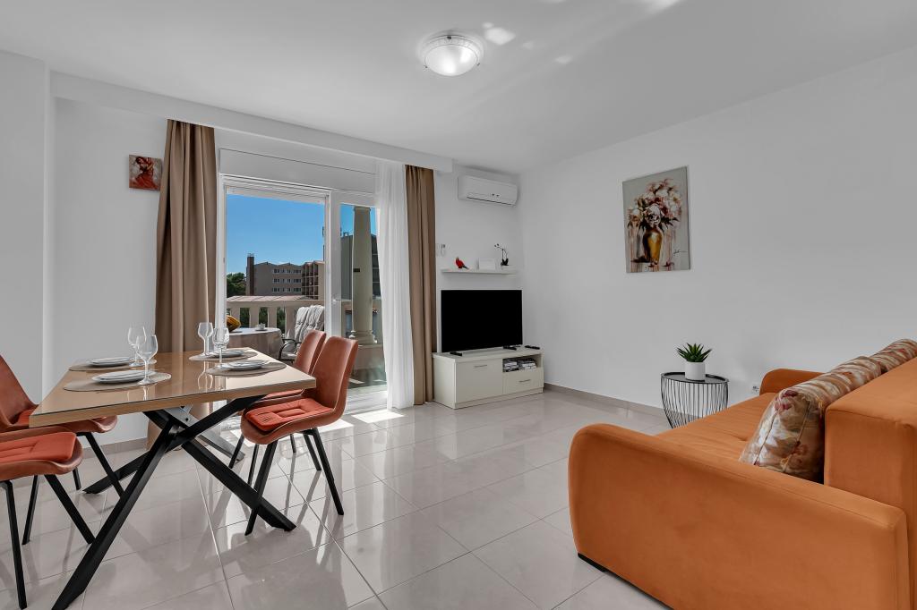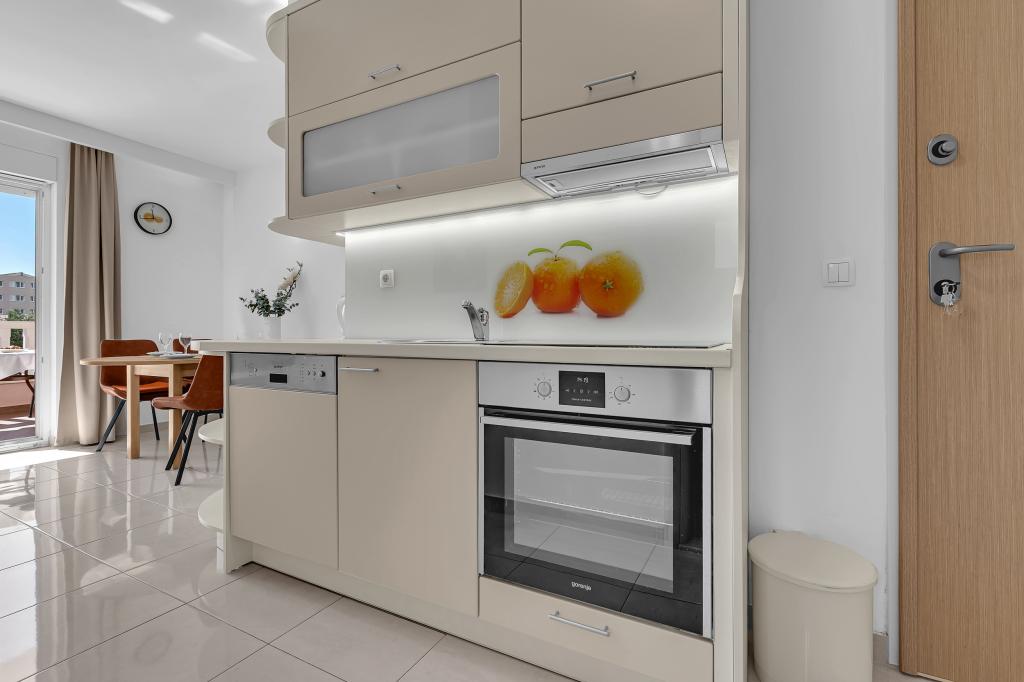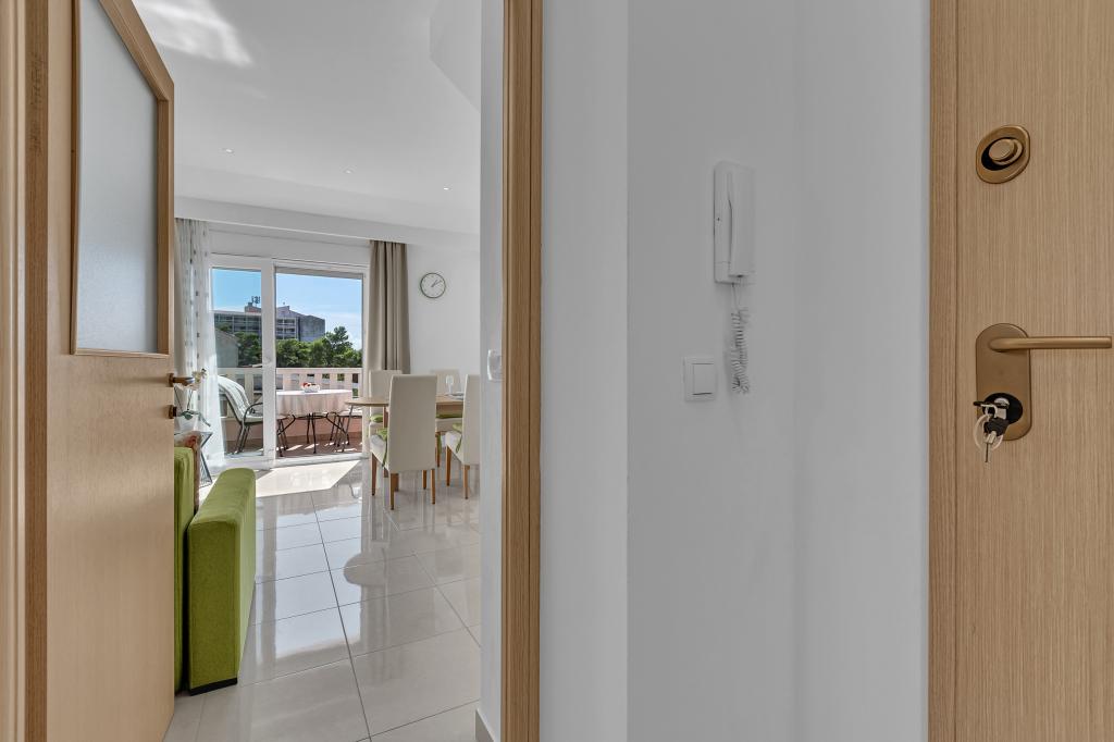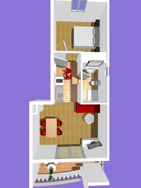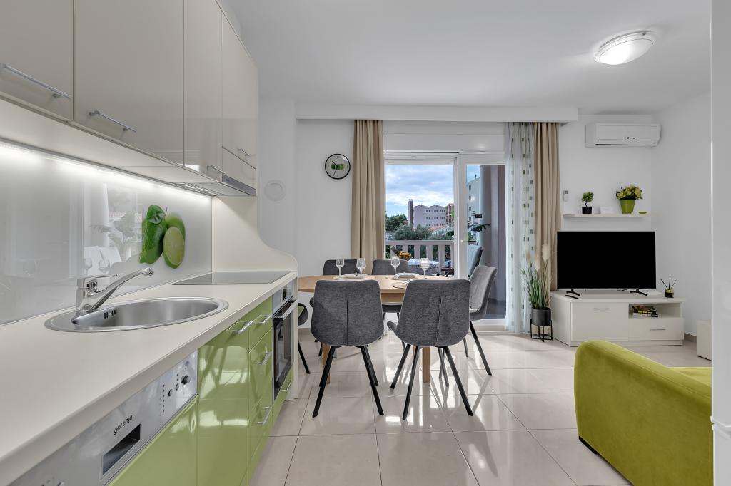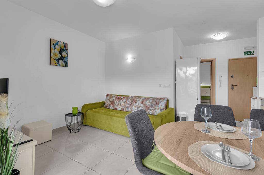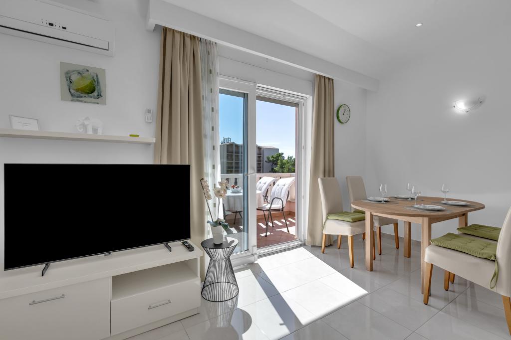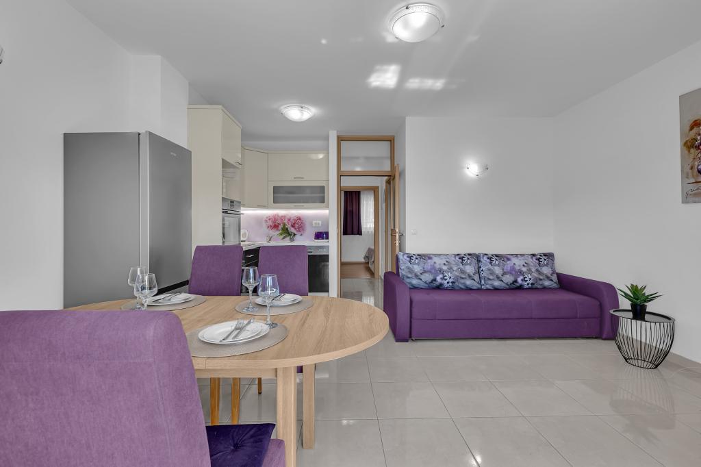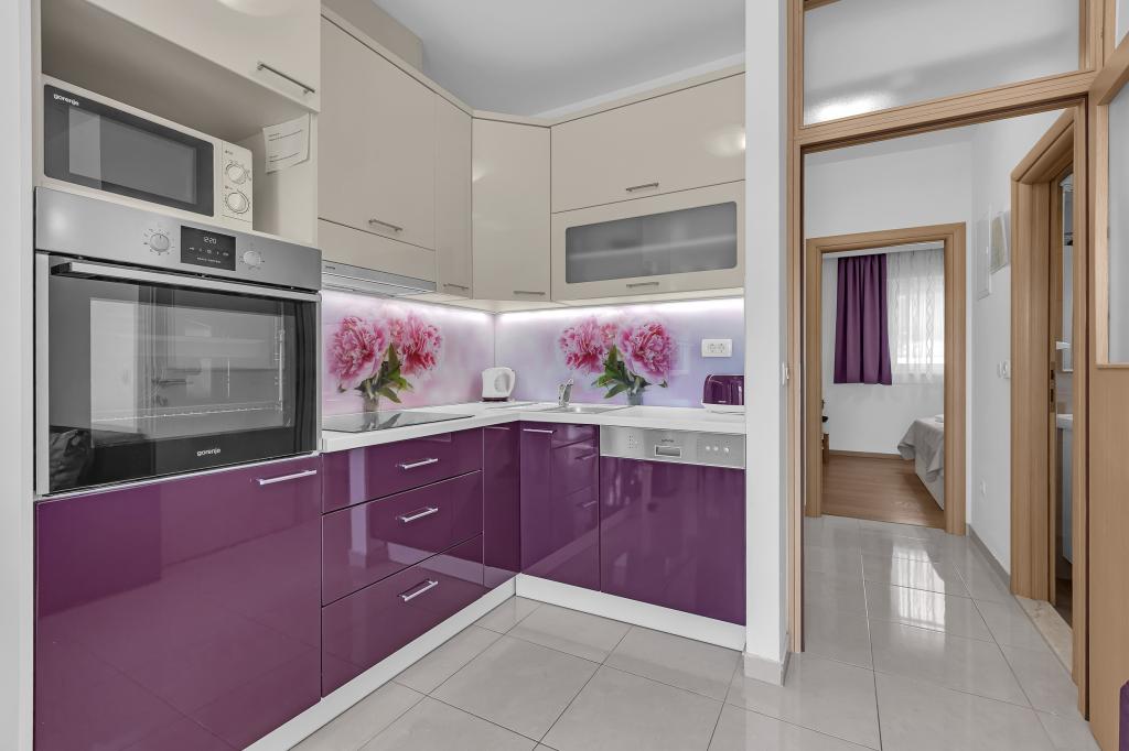 NOUVEAUX APPARTEMENTS! Tous nos appartements sont équipés de façon moderne. Au total, nous avons six (6) appartements à offrir, dont cinq (5) d'une chambre et un duplex de deux chambres. Dans la cour il y a une petite piscine pour les invités, a) Les appartements d'une pièce (2 adultes et 2 enfants) disposent : d'une chambre avec un lit double, d'une grande salle de bain avec une grande douche, d'une cuisine moderne entièrement équipée avec une salle à manger et un salon avec climatisation et un canapé-lit confortable pour deux enfants adultes, ainsi que d'Internet Wi-Fi. Chacun de ces appartements dispose d'un grand balcon de 9 m2 depuis le séjour. b) L'appartement 4 de deux pièces sur deux niveaux (4 adultes et 2 enfants) dispose au premier étage d'une chambre moderne avec un lit double et une salle de bain avec douche et WC, une cuisine complète avec un coin repas et un salon qui dispose d'un canapé-lit confortable pour deux enfants adultes. On accède au deuxième étage par un escalier en colimaçon, avec une grande pièce, une salle de bain et des toilettes séparées. . Les deux étages sont climatisés.