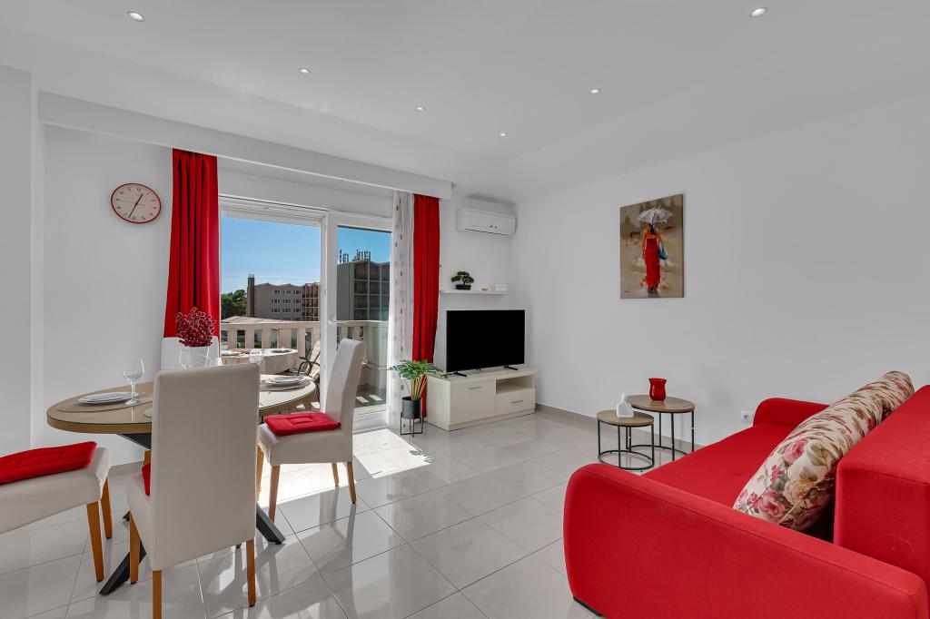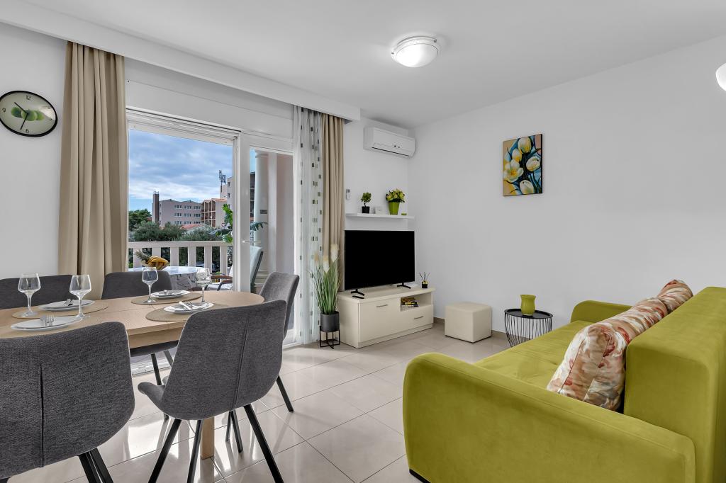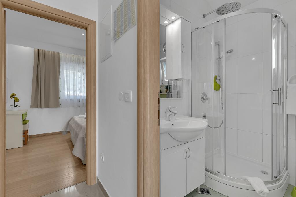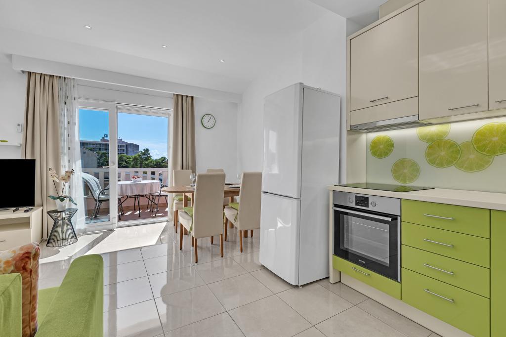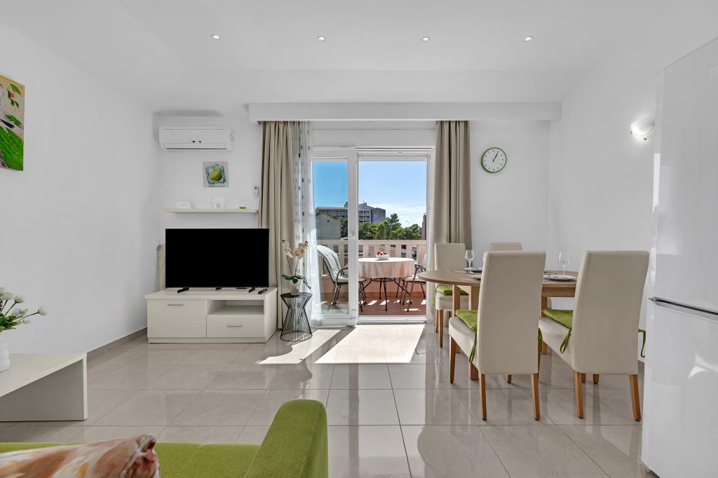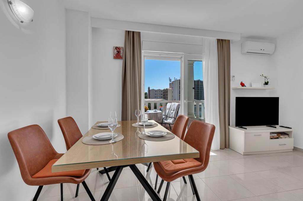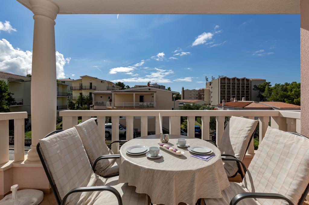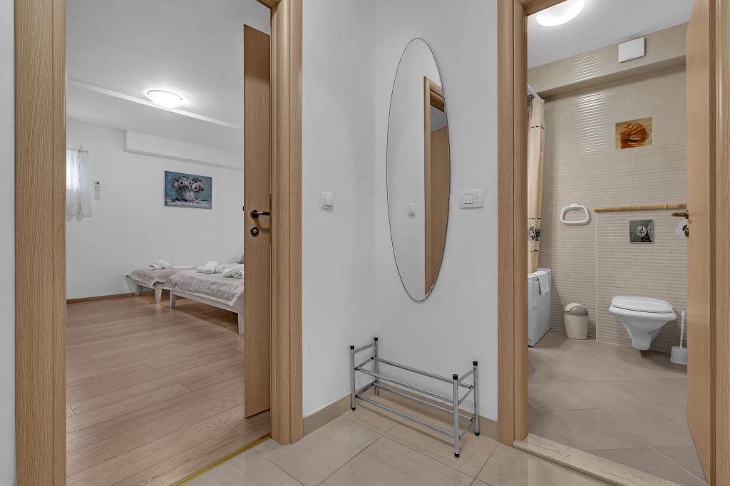 NOUVEAUX APPARTEMENTS! Tous nos appartements sont équipés de façon moderne. Au total, nous avons six (6) appartements à offrir, dont cinq (5) d'une chambre et un duplex de deux chambres. Dans la cour il y a une petite piscine pour les invités, a) Les appartements d'une pièce (2 adultes et 2 enfants) disposent : d'une chambre avec un lit double, d'une grande salle de bain avec une grande douche, d'une cuisine moderne entièrement équipée avec une salle à manger et un salon avec climatisation et un canapé-lit confortable pour deux enfants adultes, ainsi que d'Internet Wi-Fi. Chacun de ces appartements dispose d'un grand balcon de 9 m2 depuis le séjour. b) L'appartement 4 de deux pièces sur deux niveaux (4 adultes et 2 enfants) dispose au premier étage d'une chambre moderne avec un lit double et une salle de bain avec douche et WC, une cuisine complète avec un coin repas et un salon qui dispose d'un canapé-lit confortable pour deux enfants adultes. On accède au deuxième étage par un escalier en colimaçon, avec une grande pièce, une salle de bain et des toilettes séparées. . Les deux étages sont climatisés.