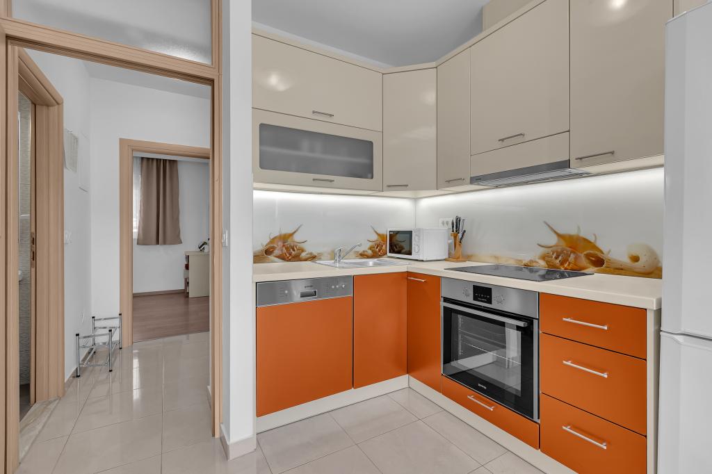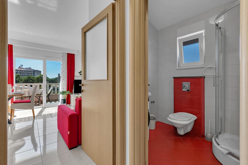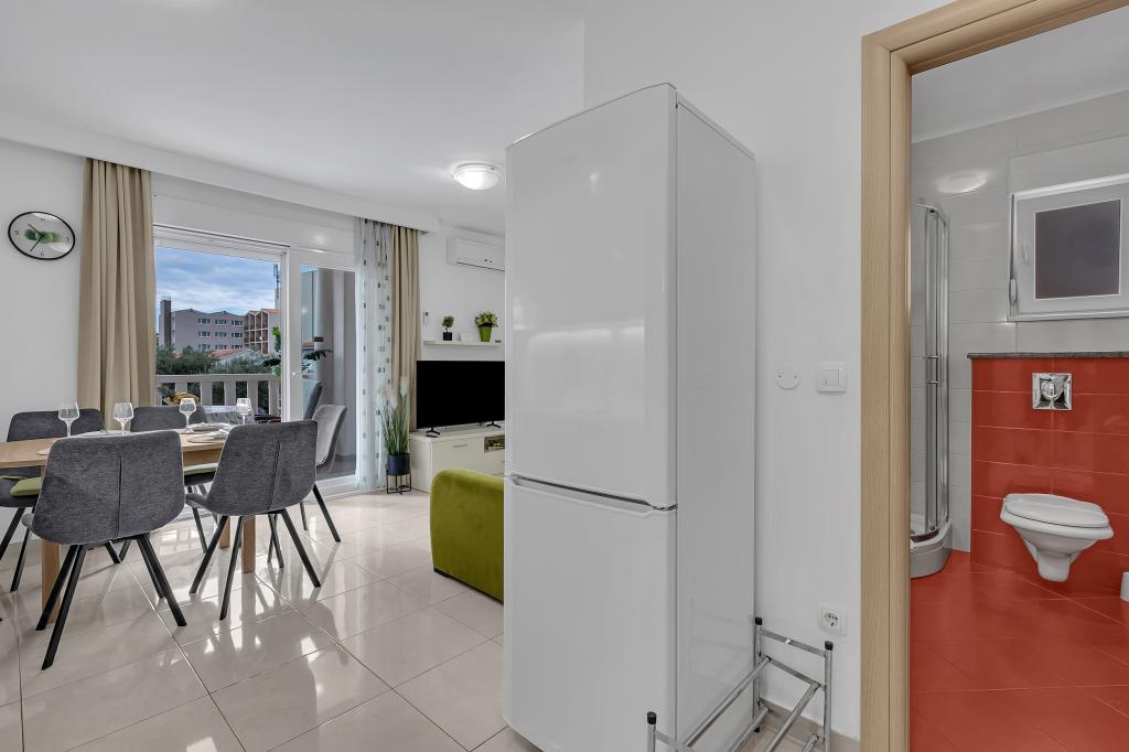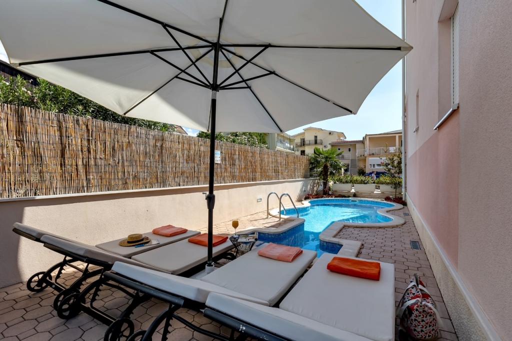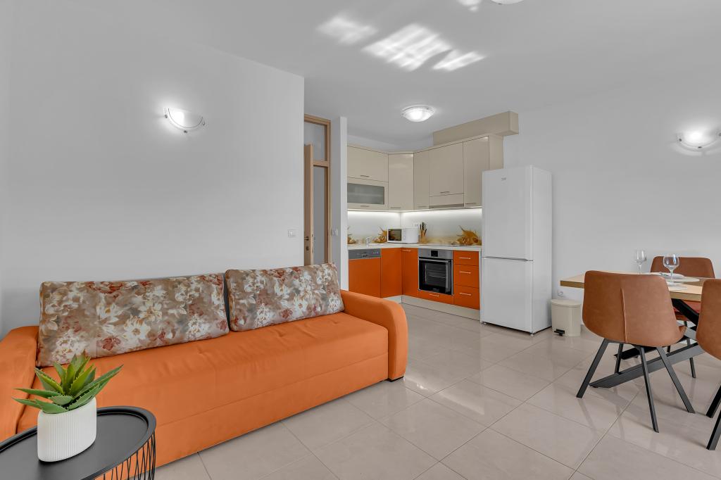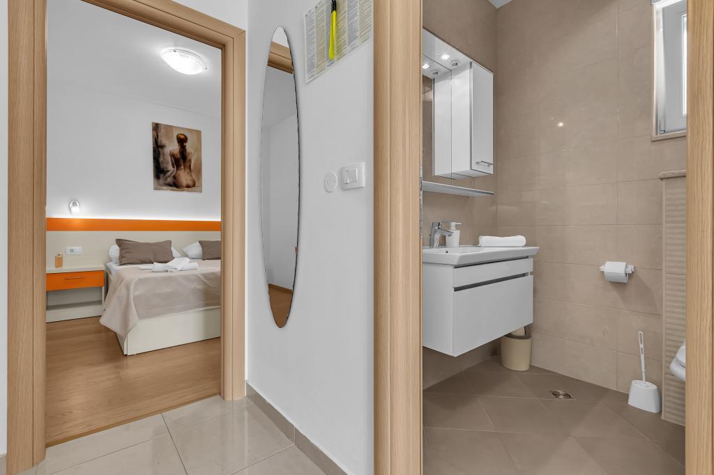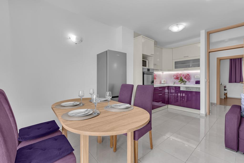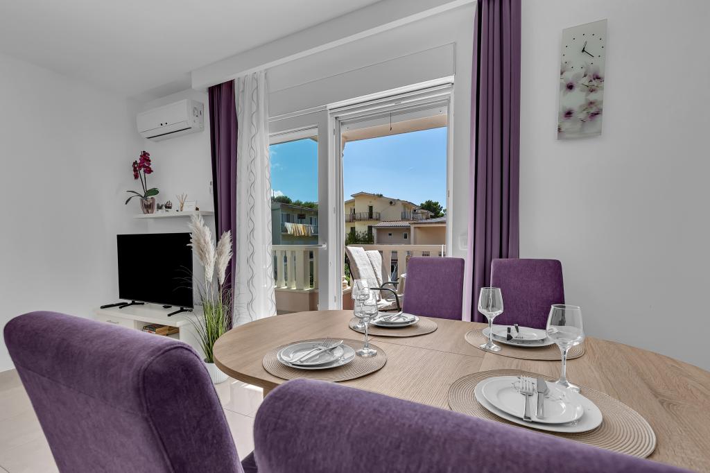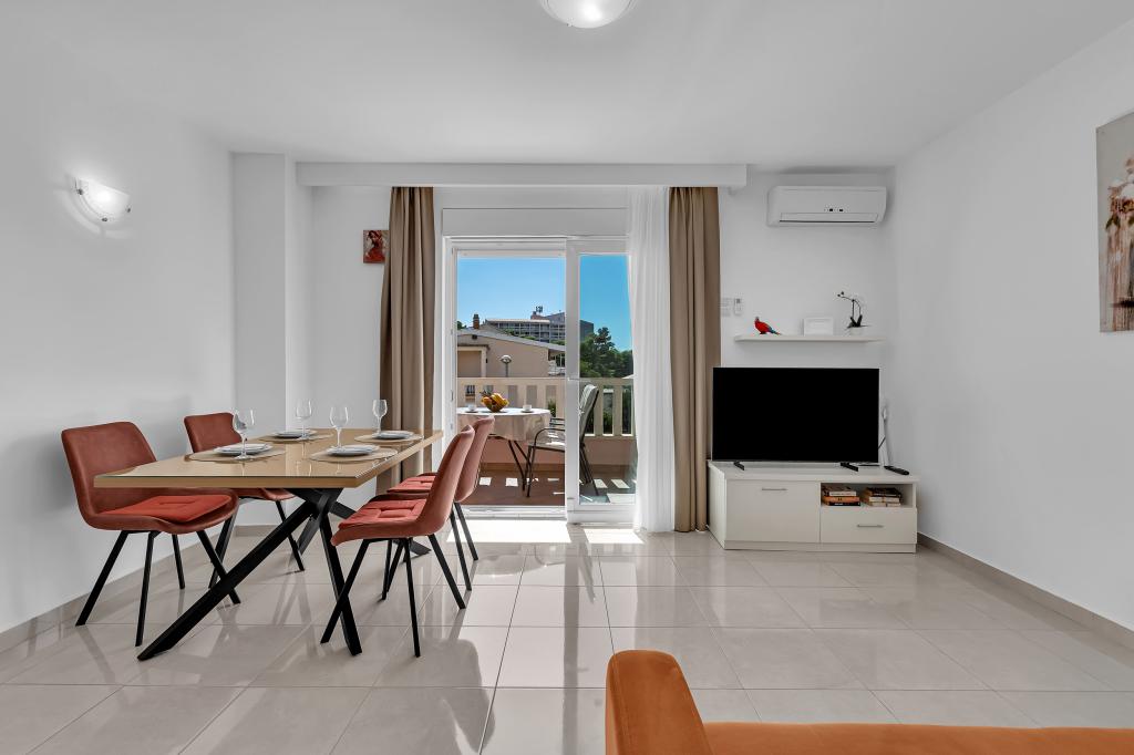 NOUVEAUX APPARTEMENTS! Tous nos appartements sont équipés de façon moderne. Au total, nous avons six (6) appartements à offrir, dont cinq (5) d'une chambre et un duplex de deux chambres. Dans la cour il y a une petite piscine pour les invités, a) Les appartements d'une pièce (2 adultes et 2 enfants) disposent : d'une chambre avec un lit double, d'une grande salle de bain avec une grande douche, d'une cuisine moderne entièrement équipée avec une salle à manger et un salon avec climatisation et un canapé-lit confortable pour deux enfants adultes, ainsi que d'Internet Wi-Fi. Chacun de ces appartements dispose d'un grand balcon de 9 m2 depuis le séjour. b) L'appartement 4 de deux pièces sur deux niveaux (4 adultes et 2 enfants) dispose au premier étage d'une chambre moderne avec un lit double et une salle de bain avec douche et WC, une cuisine complète avec un coin repas et un salon qui dispose d'un canapé-lit confortable pour deux enfants adultes. On accède au deuxième étage par un escalier en colimaçon, avec une grande pièce, une salle de bain et des toilettes séparées. . Les deux étages sont climatisés.