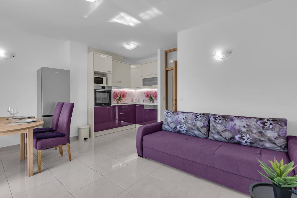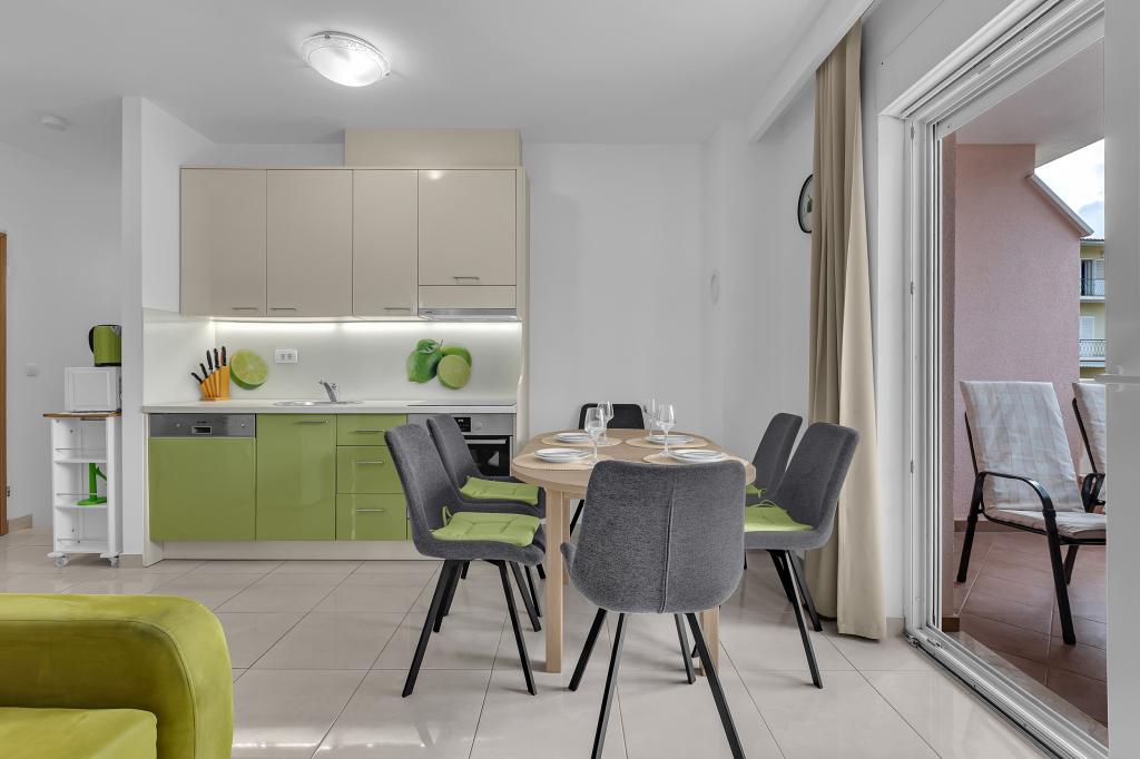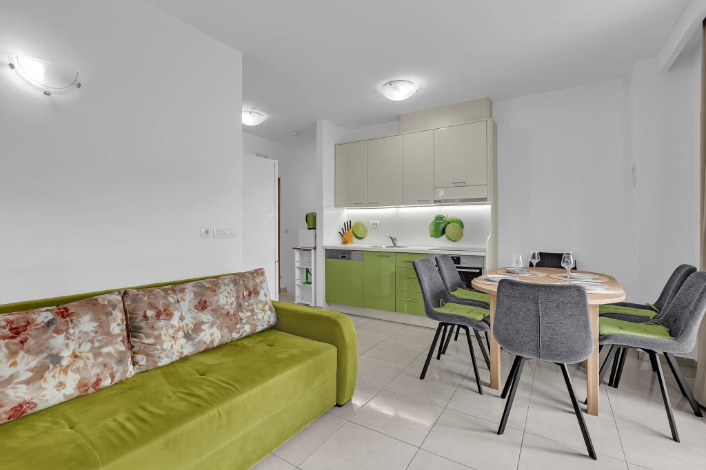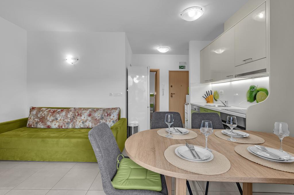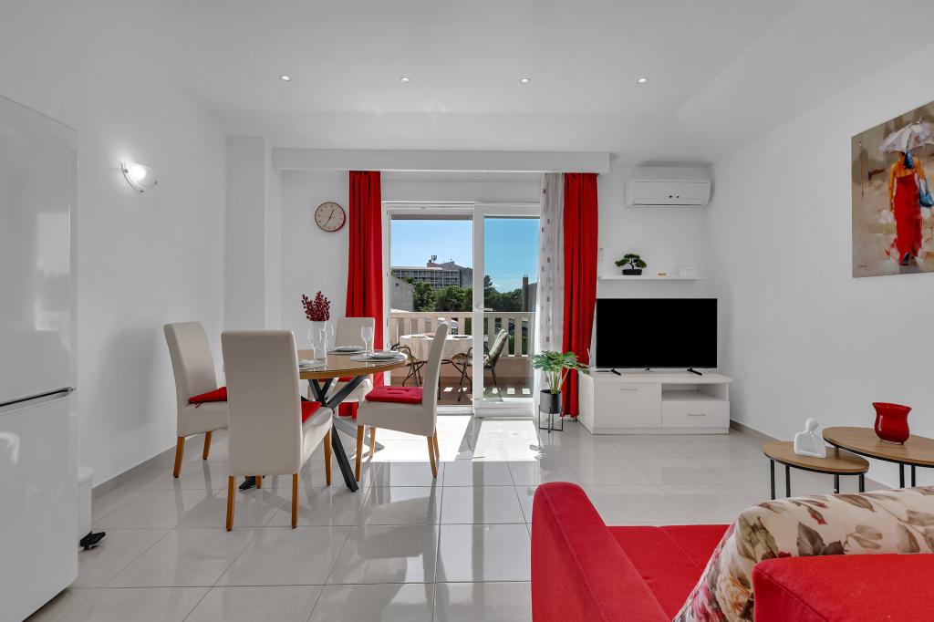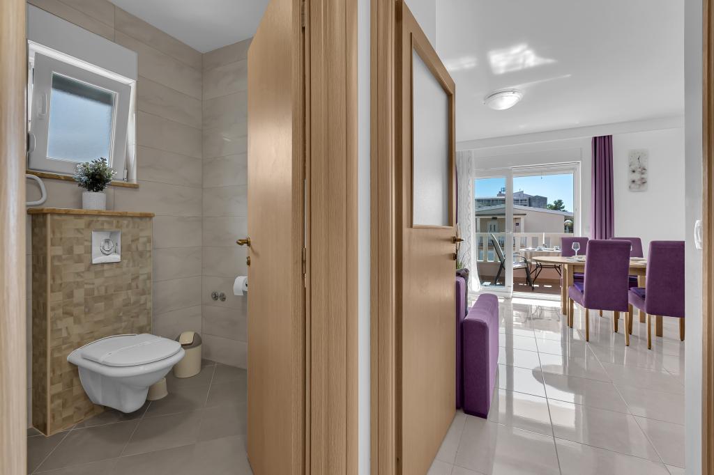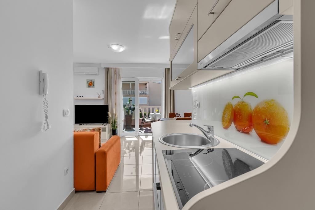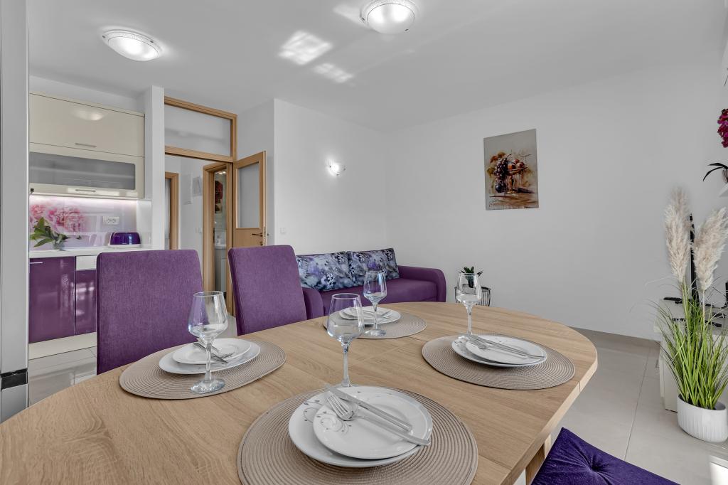 NOUVEAUX APPARTEMENTS! Tous nos appartements sont équipés de façon moderne. Au total, nous avons six (6) appartements à offrir, dont cinq (5) d'une chambre et un duplex de deux chambres. Dans la cour il y a une petite piscine pour les invités, a) Les appartements d'une pièce (2 adultes et 2 enfants) disposent : d'une chambre avec un lit double, d'une grande salle de bain avec une grande douche, d'une cuisine moderne entièrement équipée avec une salle à manger et un salon avec climatisation et un canapé-lit confortable pour deux enfants adultes, ainsi que d'Internet Wi-Fi. Chacun de ces appartements dispose d'un grand balcon de 9 m2 depuis le séjour. b) L'appartement 4 de deux pièces sur deux niveaux (4 adultes et 2 enfants) dispose au premier étage d'une chambre moderne avec un lit double et une salle de bain avec douche et WC, une cuisine complète avec un coin repas et un salon qui dispose d'un canapé-lit confortable pour deux enfants adultes. On accède au deuxième étage par un escalier en colimaçon, avec une grande pièce, une salle de bain et des toilettes séparées. . Les deux étages sont climatisés.