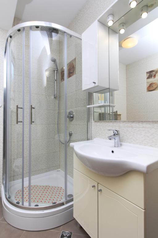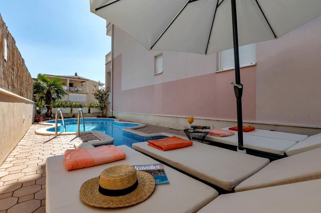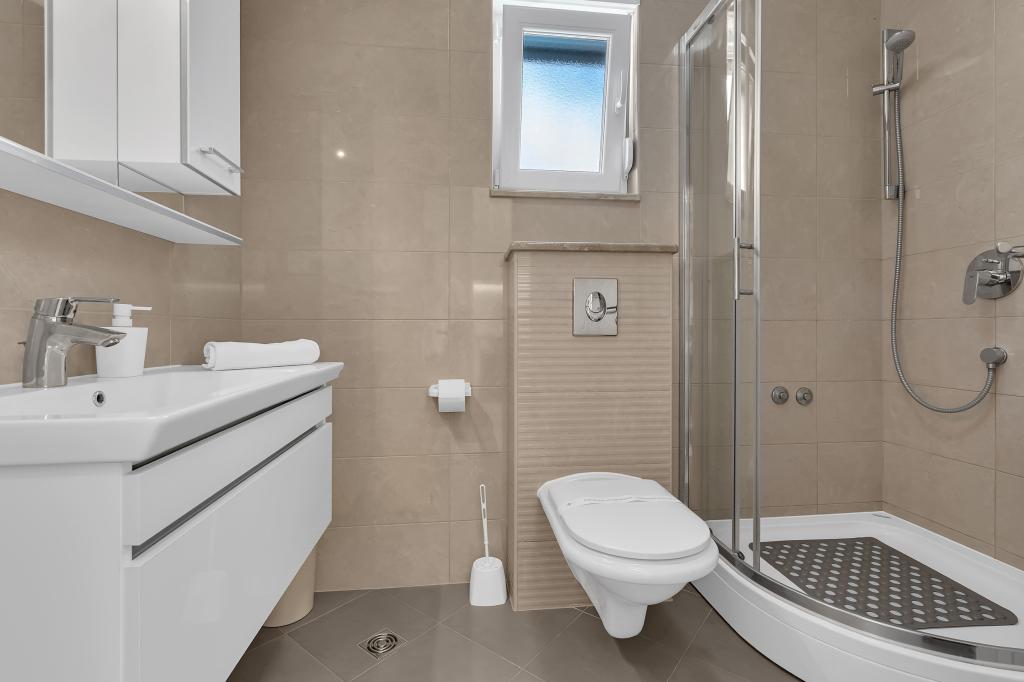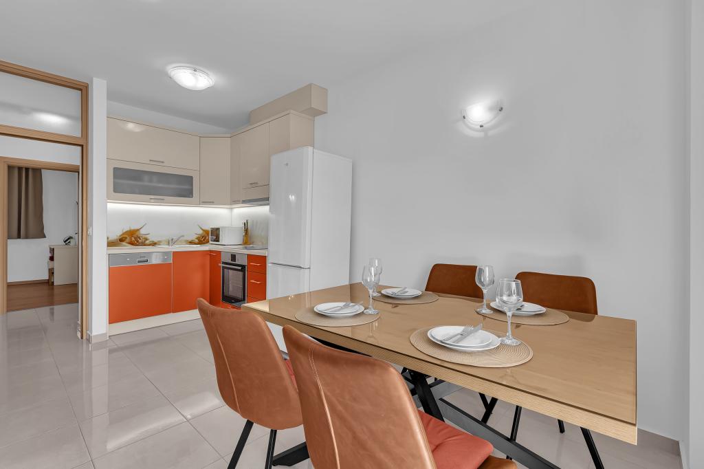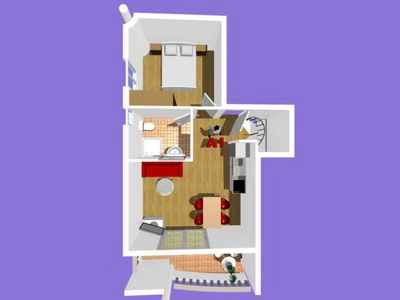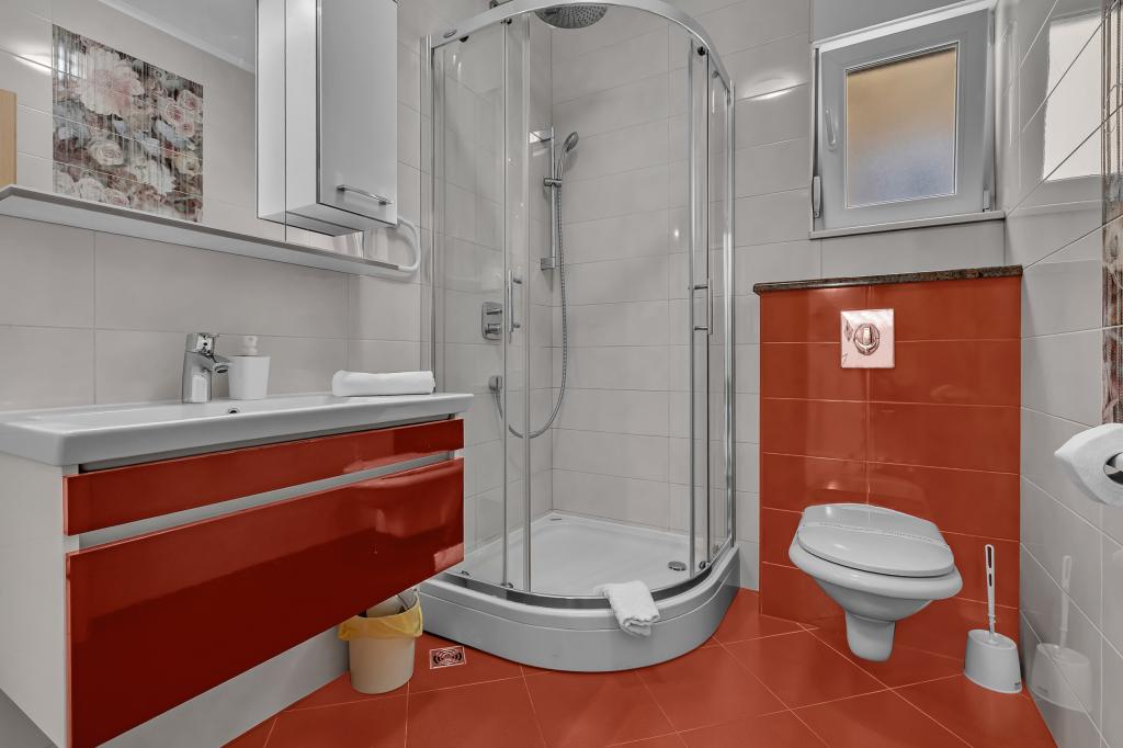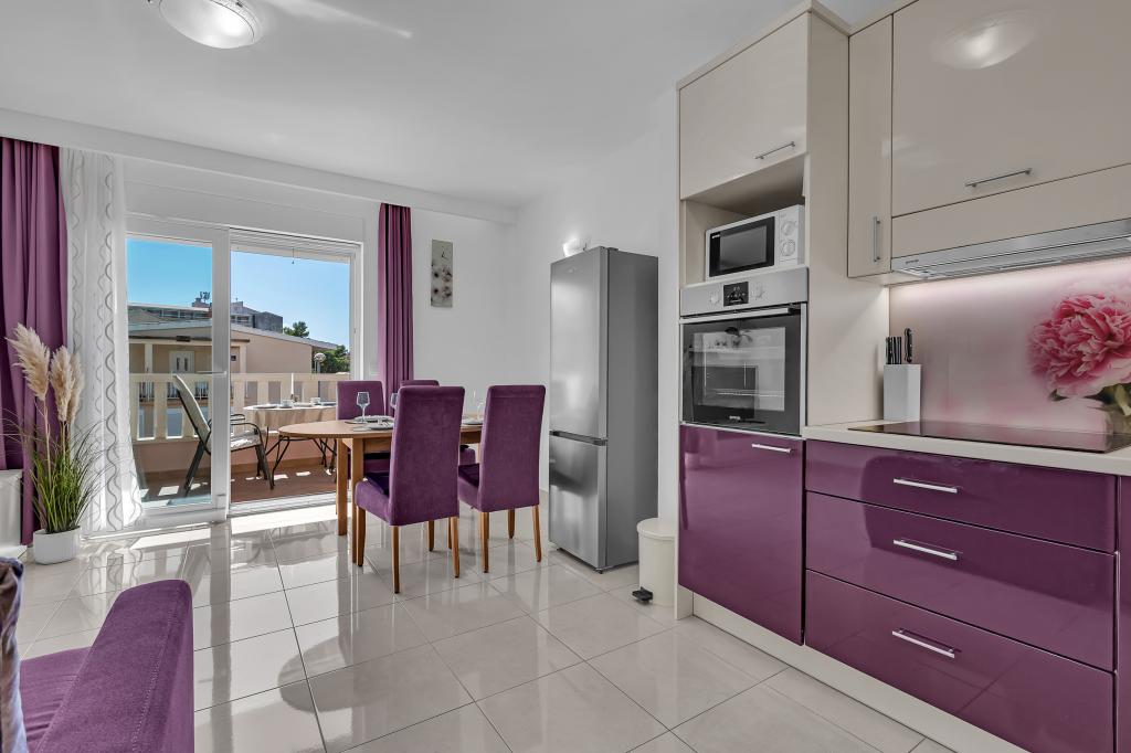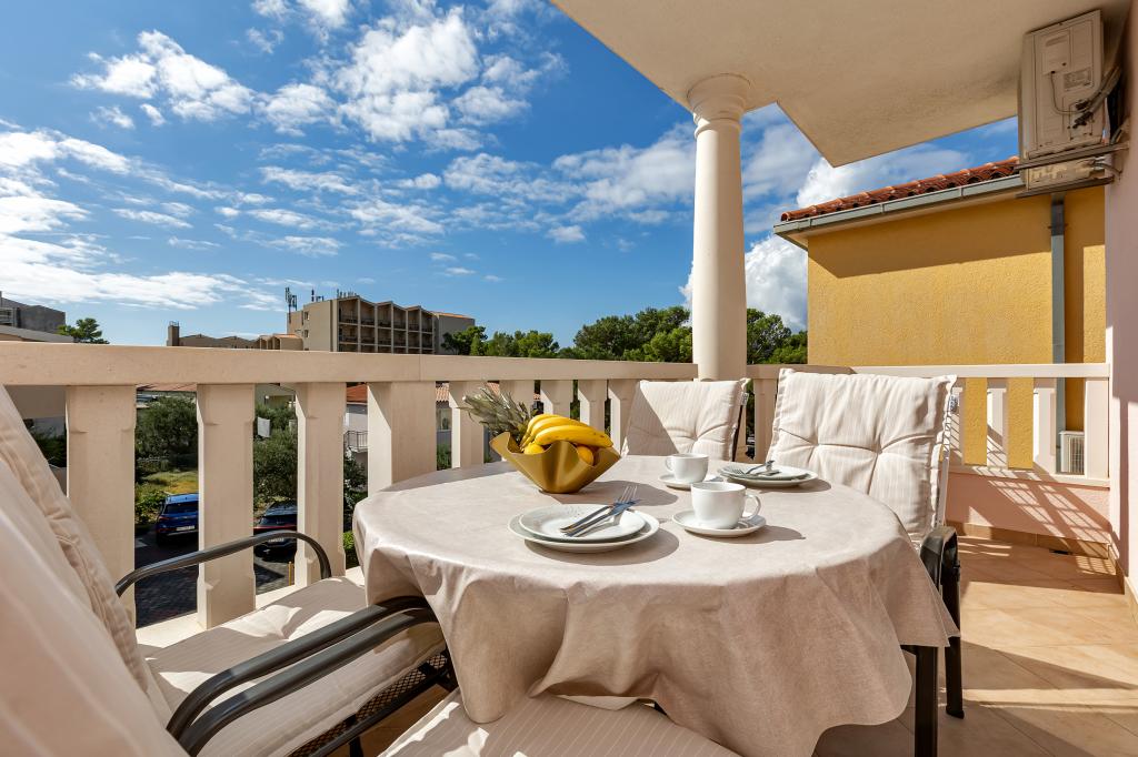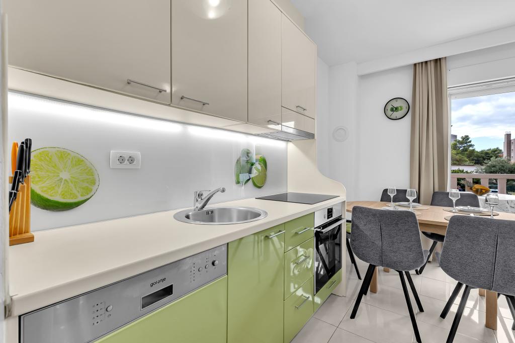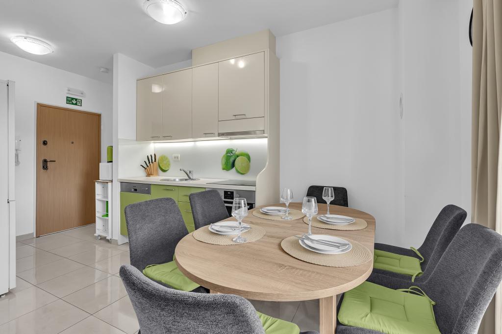 NOUVEAUX APPARTEMENTS! Tous nos appartements sont équipés de façon moderne. Au total, nous avons six (6) appartements à offrir, dont cinq (5) d'une chambre et un duplex de deux chambres. Dans la cour il y a une petite piscine pour les invités, a) Les appartements d'une pièce (2 adultes et 2 enfants) disposent : d'une chambre avec un lit double, d'une grande salle de bain avec une grande douche, d'une cuisine moderne entièrement équipée avec une salle à manger et un salon avec climatisation et un canapé-lit confortable pour deux enfants adultes, ainsi que d'Internet Wi-Fi. Chacun de ces appartements dispose d'un grand balcon de 9 m2 depuis le séjour. b) L'appartement 4 de deux pièces sur deux niveaux (4 adultes et 2 enfants) dispose au premier étage d'une chambre moderne avec un lit double et une salle de bain avec douche et WC, une cuisine complète avec un coin repas et un salon qui dispose d'un canapé-lit confortable pour deux enfants adultes. On accède au deuxième étage par un escalier en colimaçon, avec une grande pièce, une salle de bain et des toilettes séparées. . Les deux étages sont climatisés.