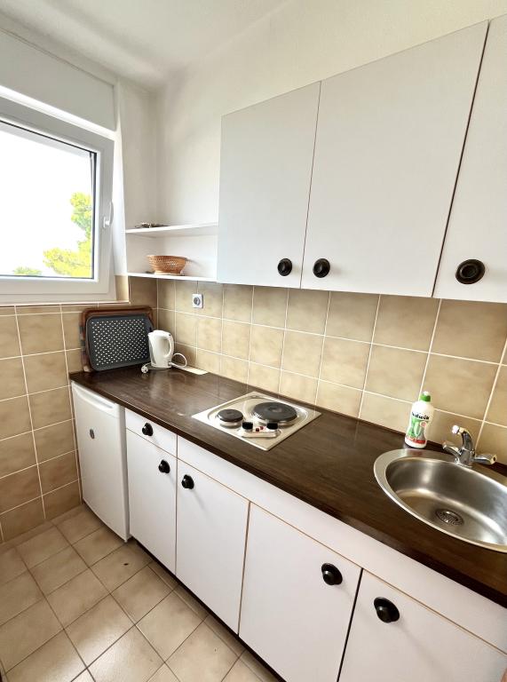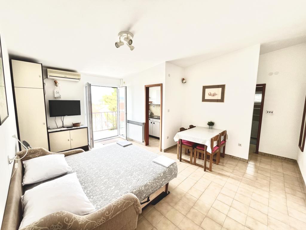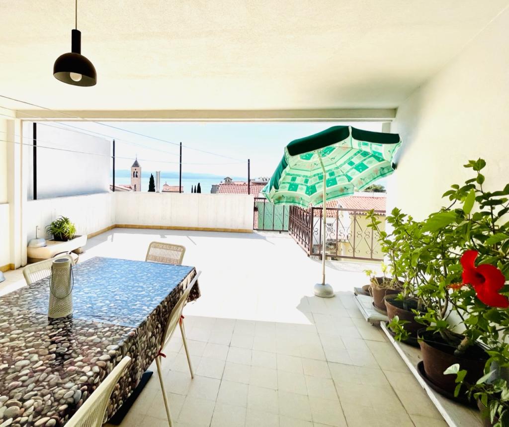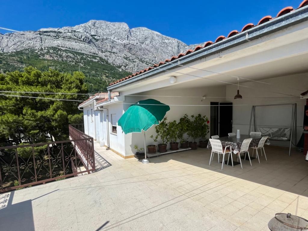 Bienvenue dans notre maison familiale située dans un quartier calme du centre de Baška Voda, juste à côté de la pinède et de l'église Saint-Pierre. Amoureux. La maison se trouve à 2 minutes à pied de la mer et de la plage de galets, et offre une belle vue sur le mont Biokovo et les îles de Brač et Hvar. L'appartement au rez-de-chaussée est idéal pour un couple avec enfants ou deux couples. Il comprend une cuisine, une chambre principale avec salle de bain et une pièce séparée avec sa propre salle de bain, assurant ainsi plus d'intimité et de confort. La terrasse offre une vue sur notre jardin et la pinède voisine et est parfaite pour prendre un café le matin ou se détendre en soirée. L'appartement au deuxième étage offre une vue dégagée extraordinaire et est idéal pour un couple avec enfants ou tout simplement un couple. Il dispose d'une cuisine séparée, d'un séjour avec un grand canapé lit, d'une chambre et d'une salle de bain. La grande terrasse est un endroit idéal pour profiter de l'intimité pendant vos vacances. Nous mettons à disposition de nos hôtes un parking privé à 7 minutes à pied de la maison. Venez découvrir notre hospitalité et profitez de l'emplacement idéal pour des vacances parfaites à Baška Voda !