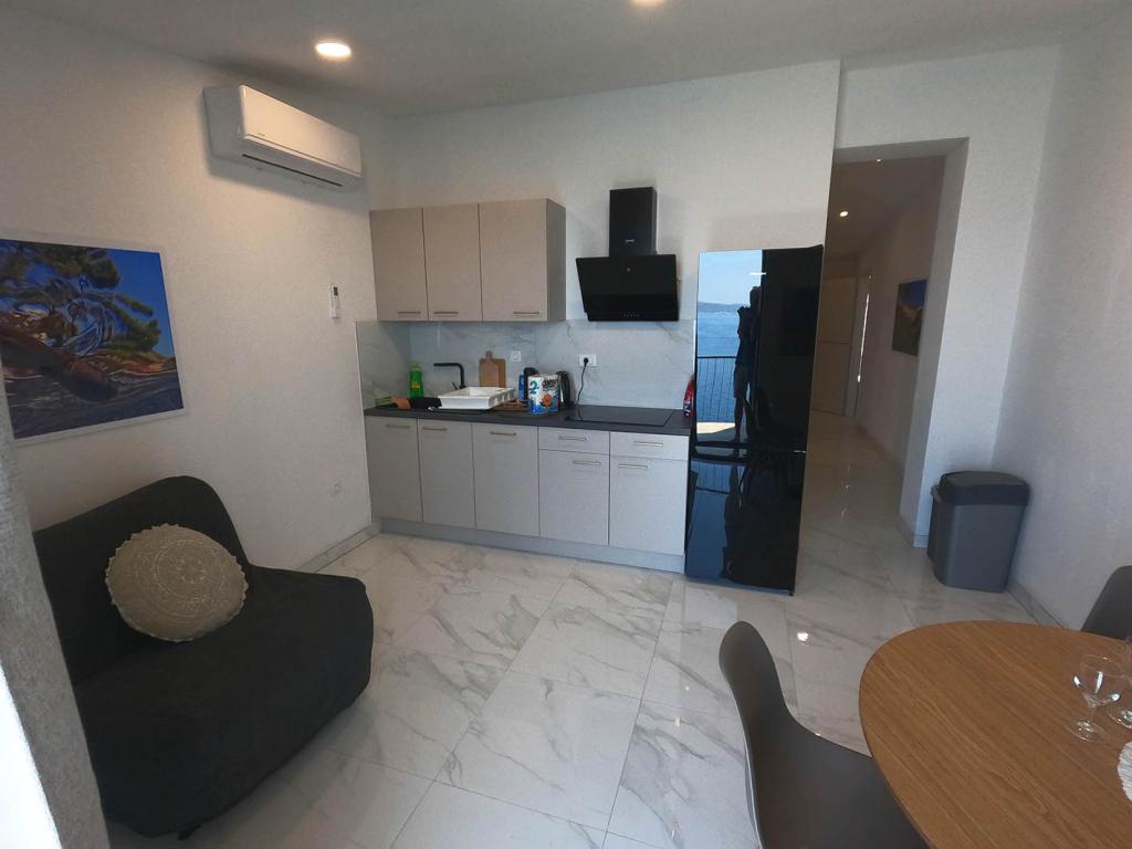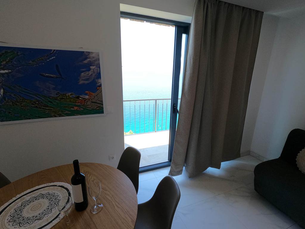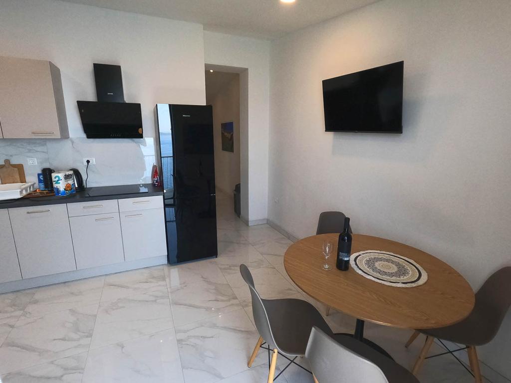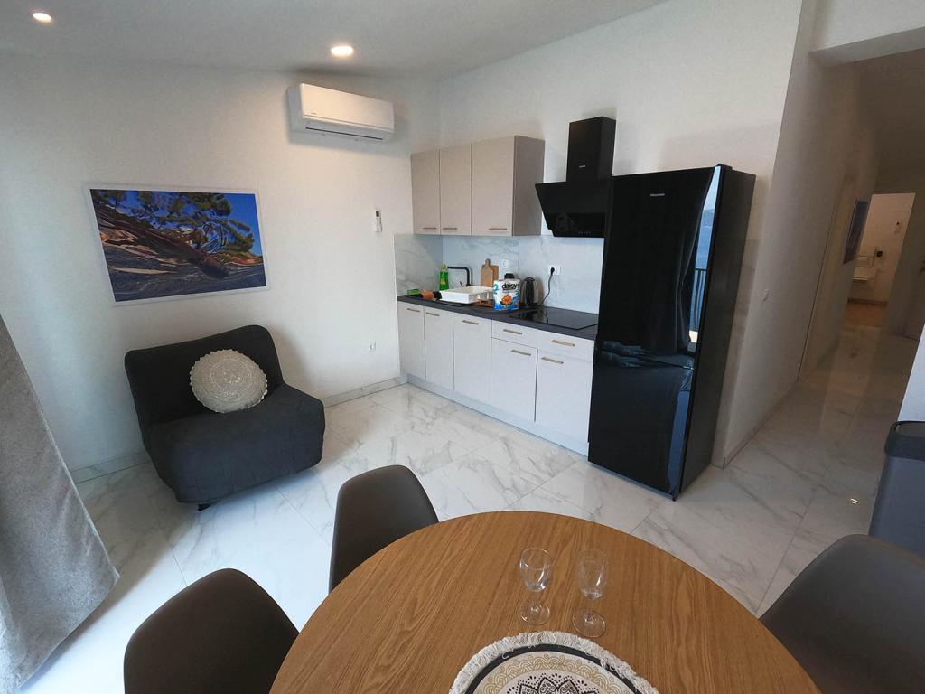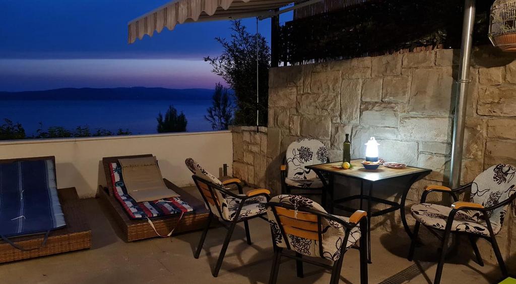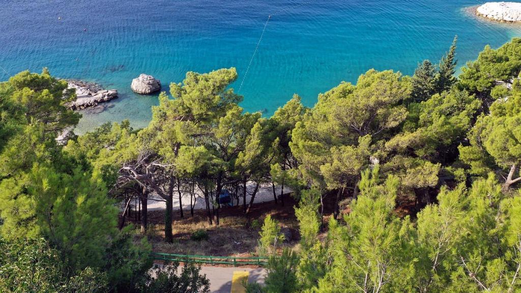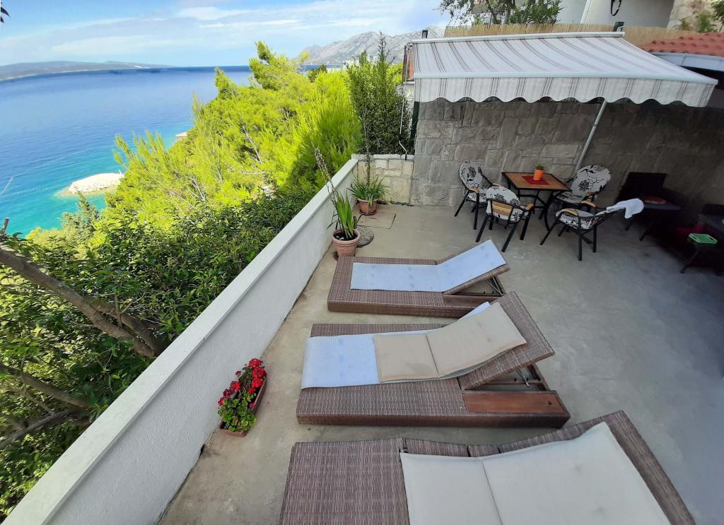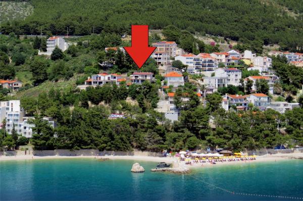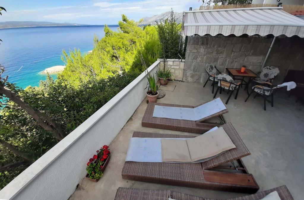 Appartement récemment rénové et entièrement équipé dans un quartier calme entre Baska Voda et Brela, situé au premier rang de la mer, au-dessus d'une belle plage. L'établissement est situé à 10 minutes à pied (environ 500 m) du centre des deux endroits. Grande terrasse avec auvent et vue sur la mer, 2 chambres doubles, deux salles de bains et cuisine avec accès à la terrasse. Tout nouveau. L'appartement est situé à un étage séparé avec une entrée séparée, un grand jardin séparé de tous les voisins. Parking privé à l'ombre juste au dessus de la maison.