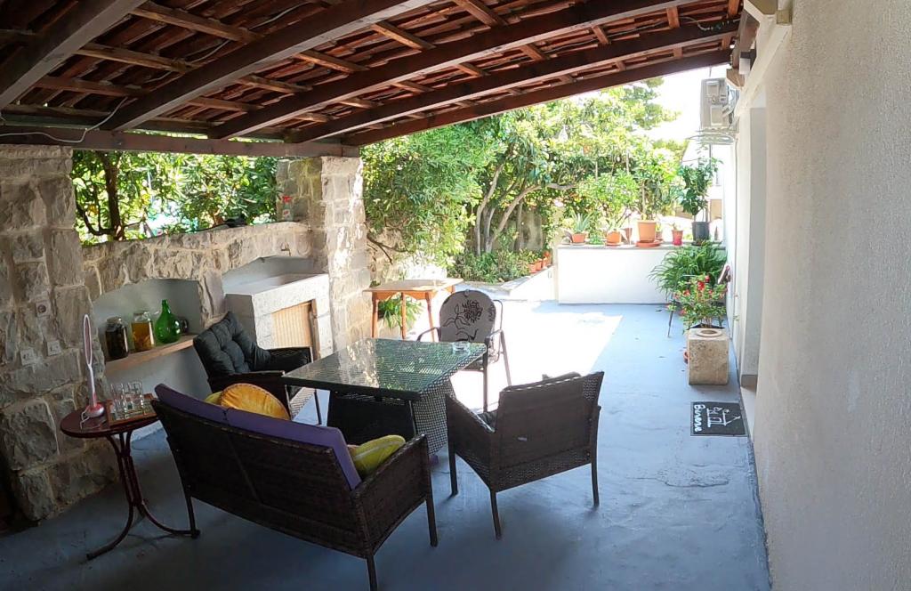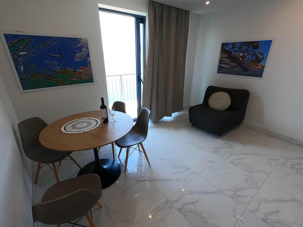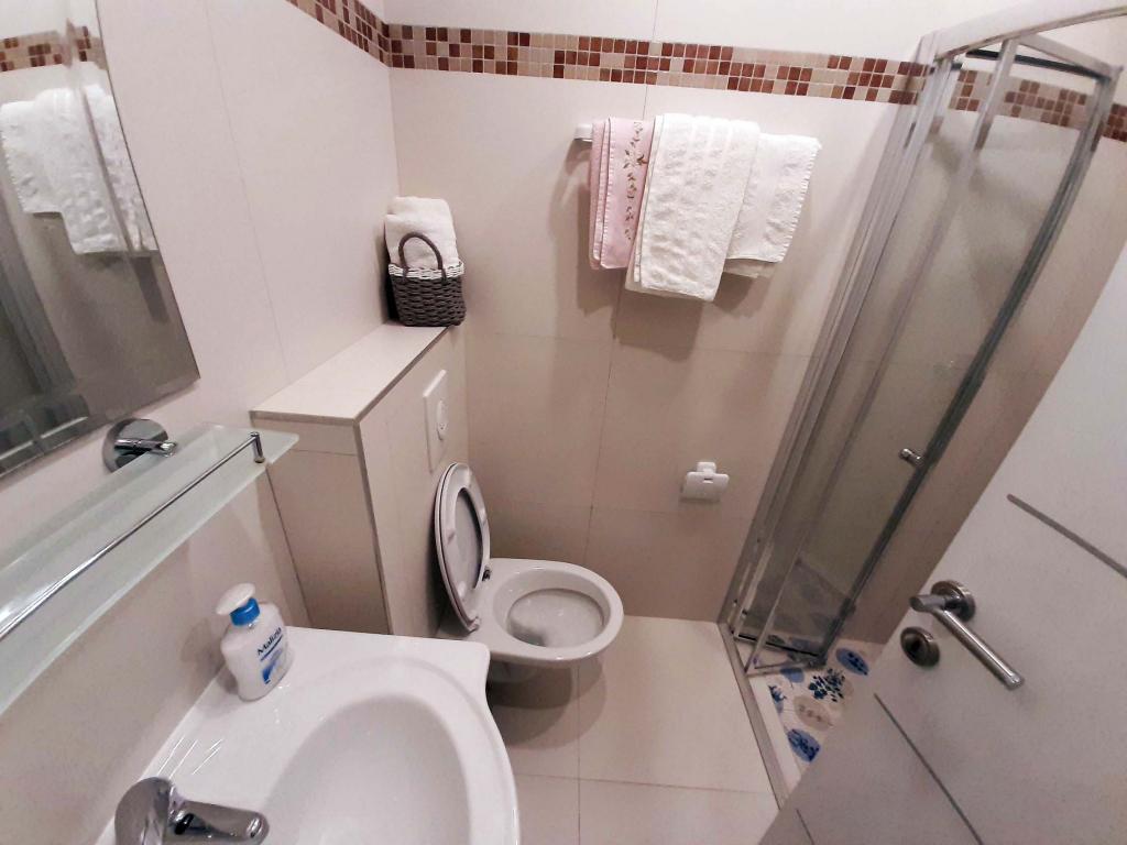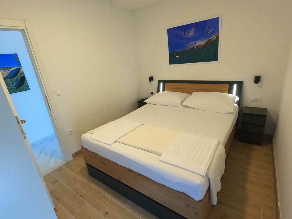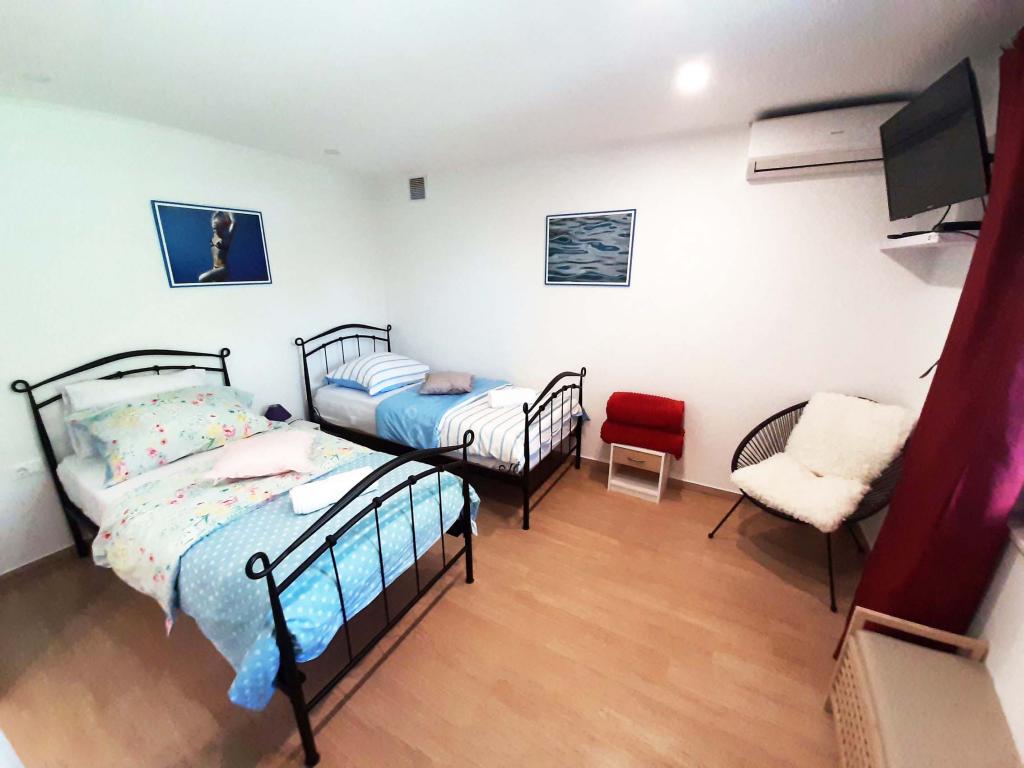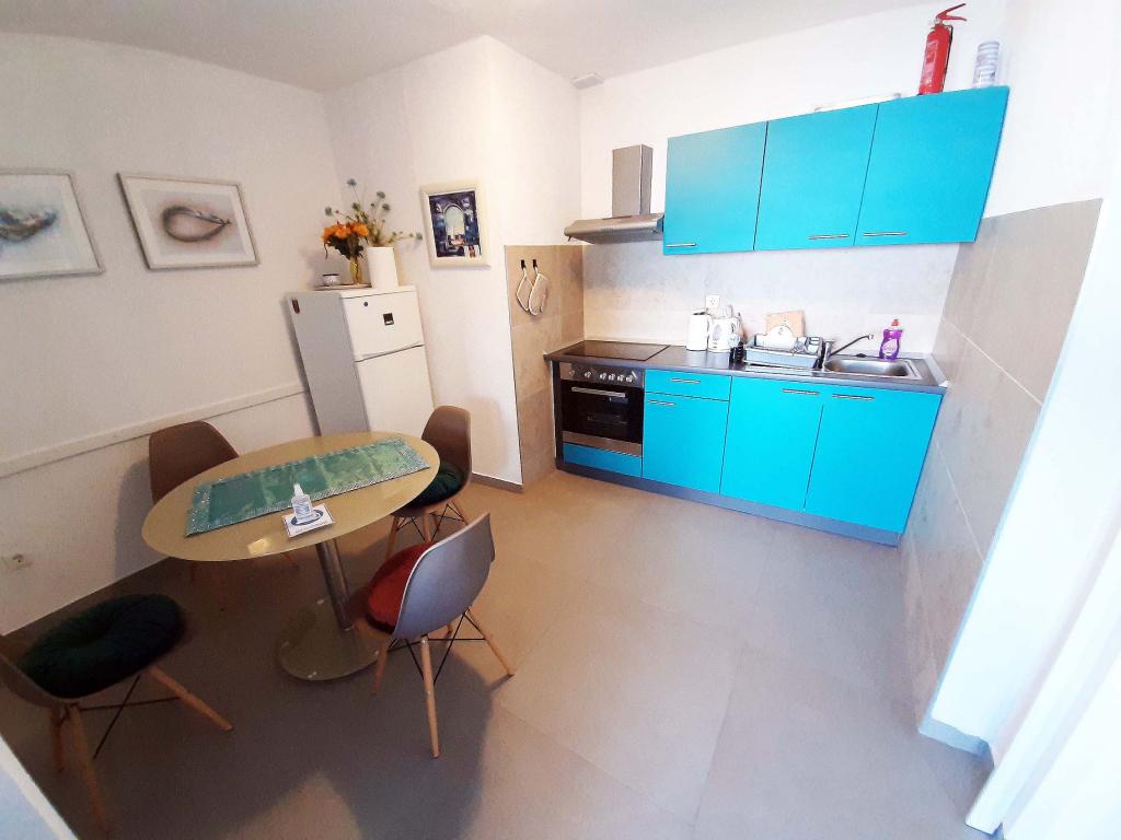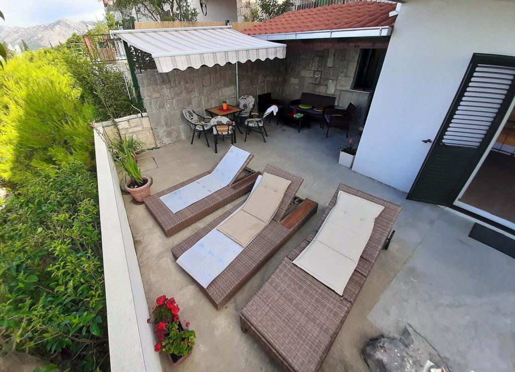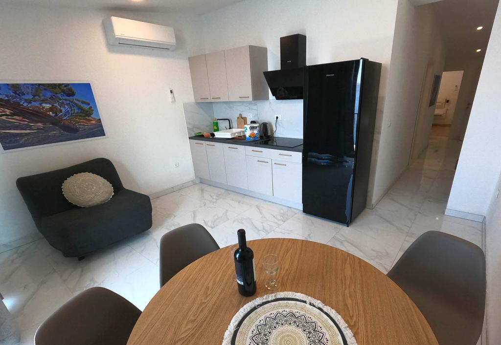 Appartement récemment rénové et entièrement équipé dans un quartier calme entre Baska Voda et Brela, situé au premier rang de la mer, au-dessus d'une belle plage. L'établissement est situé à 10 minutes à pied (environ 500 m) du centre des deux endroits. Grande terrasse avec auvent et vue sur la mer, 2 chambres doubles, deux salles de bains et cuisine avec accès à la terrasse. Tout nouveau. L'appartement est situé à un étage séparé avec une entrée séparée, un grand jardin séparé de tous les voisins. Parking privé à l'ombre juste au dessus de la maison.