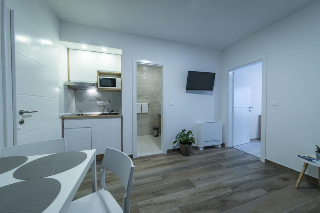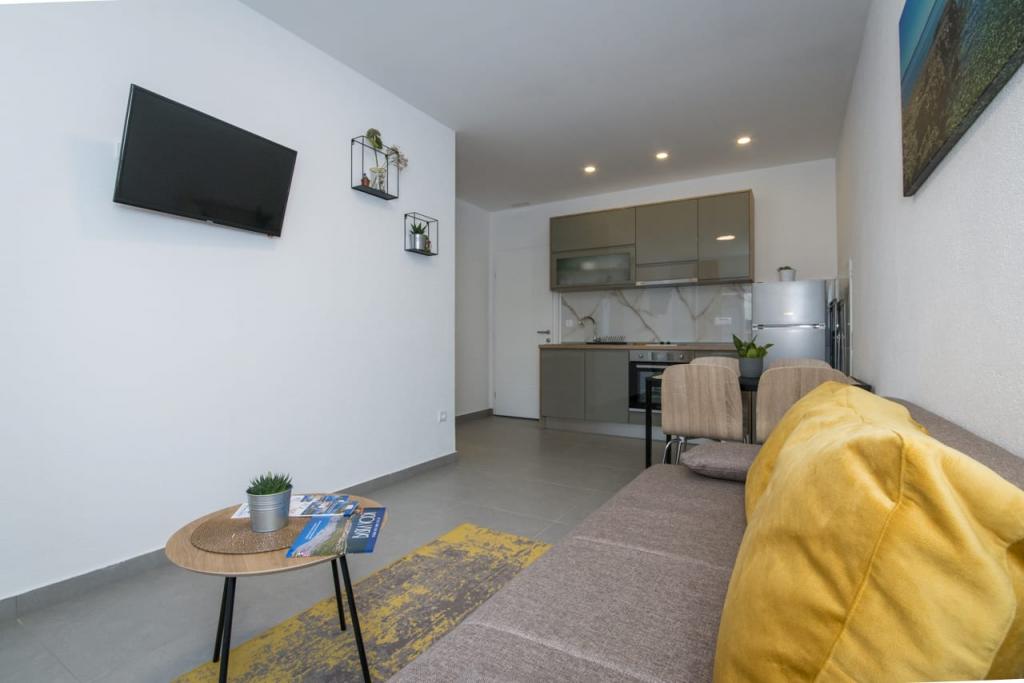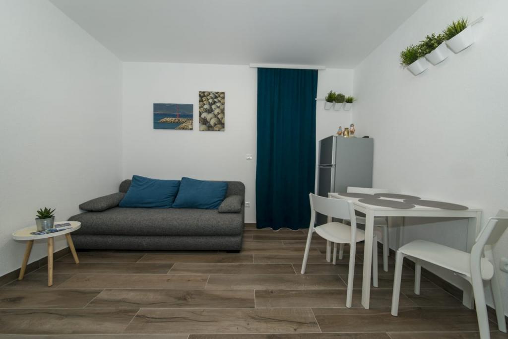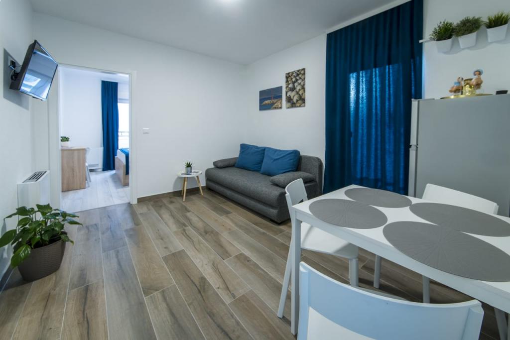 Les appartements Spiline sont situés dans un quartier calme de Baška Voda, dans un écrin de verdure à seulement 400 mètres du centre et de la plage. Ils sont des appartements récemment construits et décorés selon les normes. Chacun des appartements comprend un salon avec cuisine, une chambre, une salle de bains et un balcon ou une terrasse. sont équipés de la climatisation, d'une télévision et d'un parking pour chaque appartement. La capacité de chaque appartement est une chambre avec 2 lits et 2 lits supplémentaires dans le salon sur le canapé-lit. Au service, le personnel est toujours aimable et parle anglais. La propreté et la convivialité sont toujours au premier plan. Les appartements Sunce et Sea vous attendent.