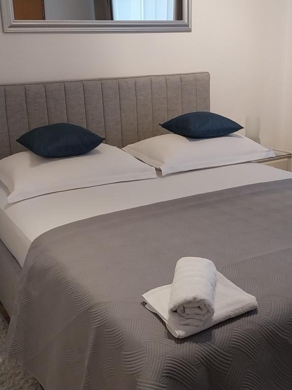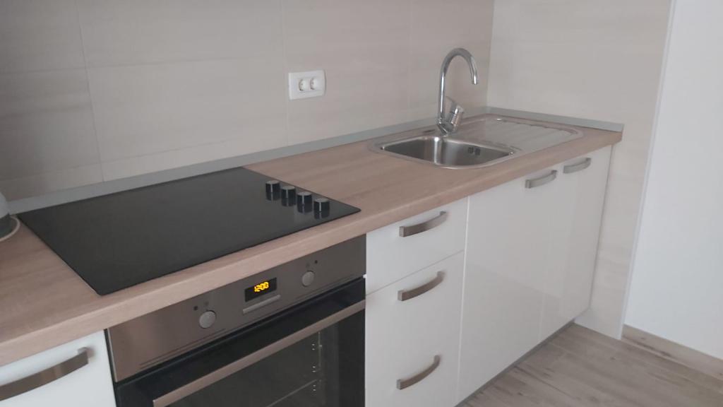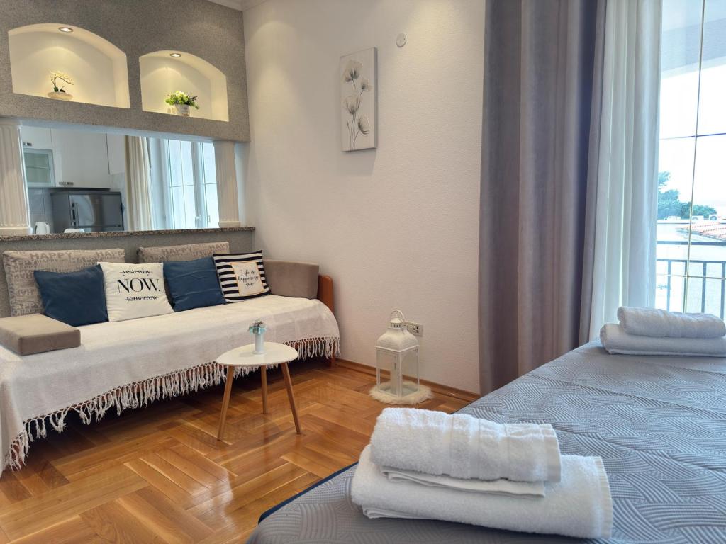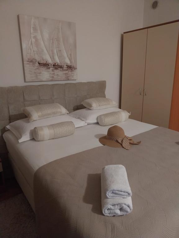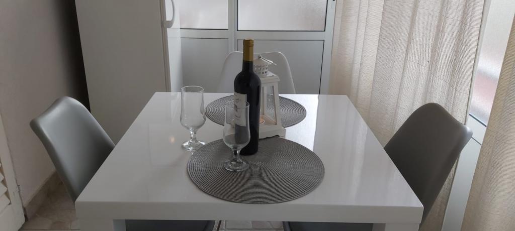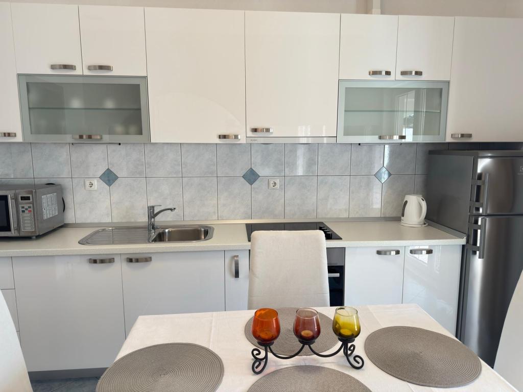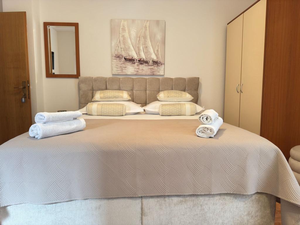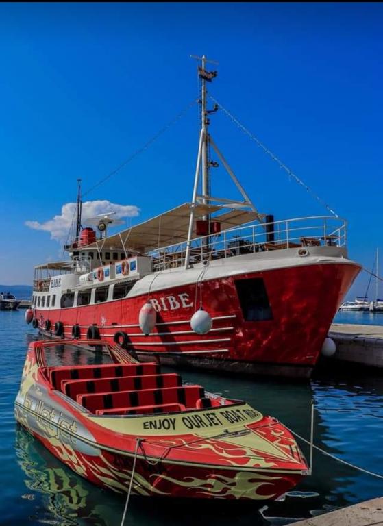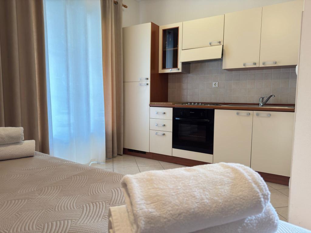 Très bel appartement avec vue sur la mer. Grande cuisine avec équipement. Grande terrasse. Proche du port et de la plage, à 5 minutes à pied. A proximité il y a un médecin, une boulangerie et un magasin. Propriétaires très gentils et serviables. Ils sont venus nous voir à 5 heures du matin pour nous dire au revoir. L'appartement dispose de places de parking. je recommande