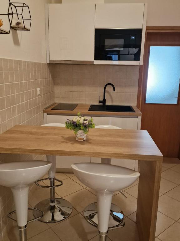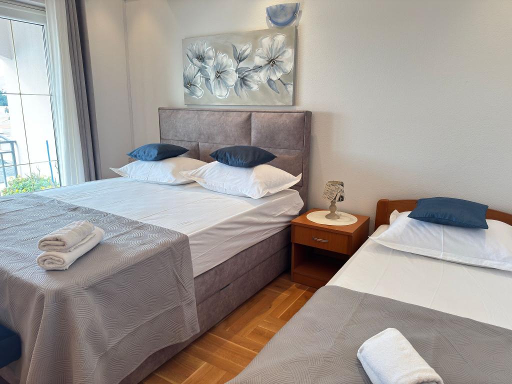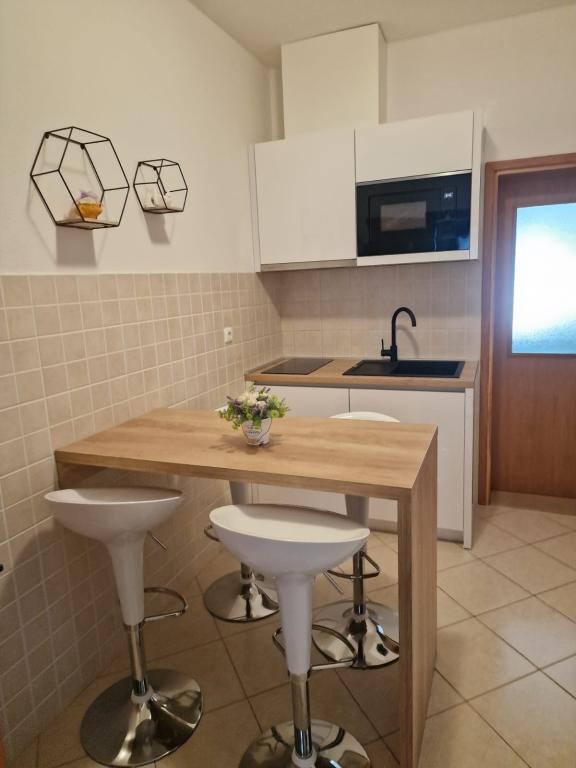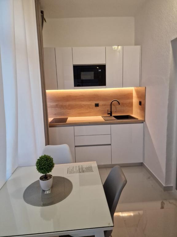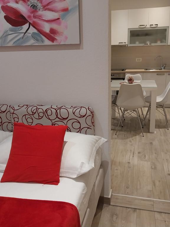 Nous sommes situés au centre de Baška Voda, mais dans un quartier calme, loin de la foule estivale. Nous vous proposons des appartements confortablement décorés, meublés de façon moderne et entièrement équipés pour des vacances agréables et sans soucis. Nous soulignons la proximité de la mer et de la plage, décorée du Pavillon Bleu !