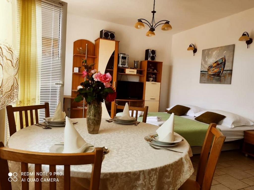 Appartements sujet sont le choix idéal pour vos vacances. Nous sommes situés dans l'une des destinations touristiques les plus populaires croate - Baska Voda. Dans une oasis de calme et verdoyant à seulement dix minutes à pied de la plage et à proximité de toutes les installations essentielles (restaurants, boutiques, clubs, bureau de poste, banque, etc.). Au sein de la grande cour, vous pourrez utiliser un barbecue. L'ambiance familiale, petit cadeau de bienvenue et l'hôtesse gaie sont à votre disposition. Que vous soyez à la recherche d'un endroit pour des vacances tranquilles en famille ou vous êtes un type actif, prêt à vélo, rafting, kayak, randonnée, plongée sous-marine, etc., vous rendra fort dans toutes les possibilités que la plage de Baska Voda et la montagne pente offre, pour passer des vacances inoubliables .