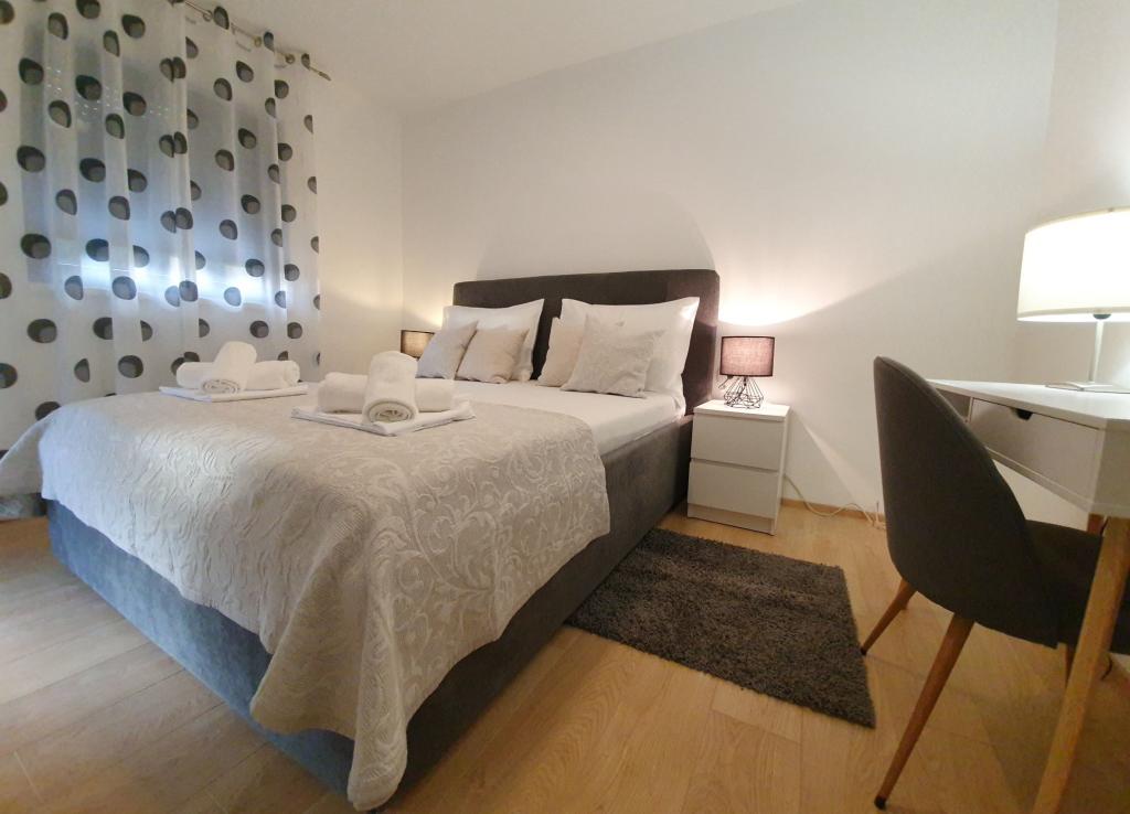 La Villa La Vita est un bâtiment neuf et moderne pour un hébergement confortable des invités. Tous nos appartements sont entièrement et modernes pour offrir au client le maximum de plaisir de vacances.À louer, nous avons 6 appartements: 2 grands appartements 4 + 2 personnes, puis 3 appartements plus petits 2 + 2 personnes. Les appartements au 1er et 2ème étage ont une belle vue mer qui est à 300 mètres ou à quelques minutes à pied. La plage de Baška Voda est largement connue pour sa beauté, c'est pourquoi elle a été couronnée d'un drapeau bleu à plusieurs reprises. Il y a aussi une grande piscine et un belvédère situés dans la cour de la villa. Nous sommes à votre disposition pour toutes autres demandes et informations.