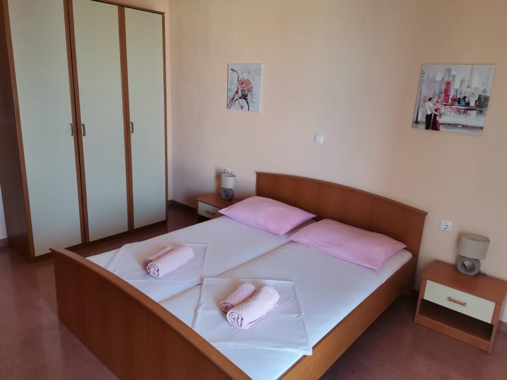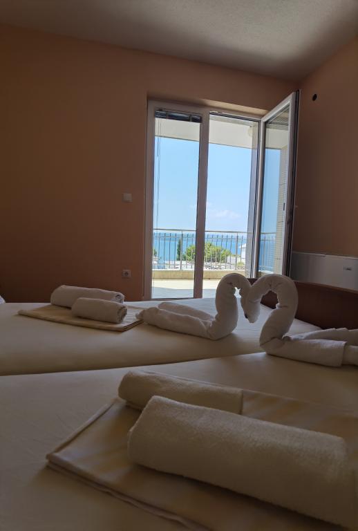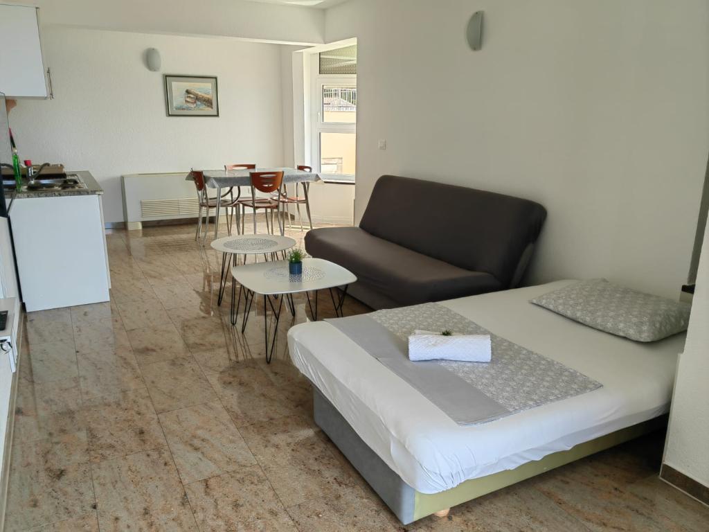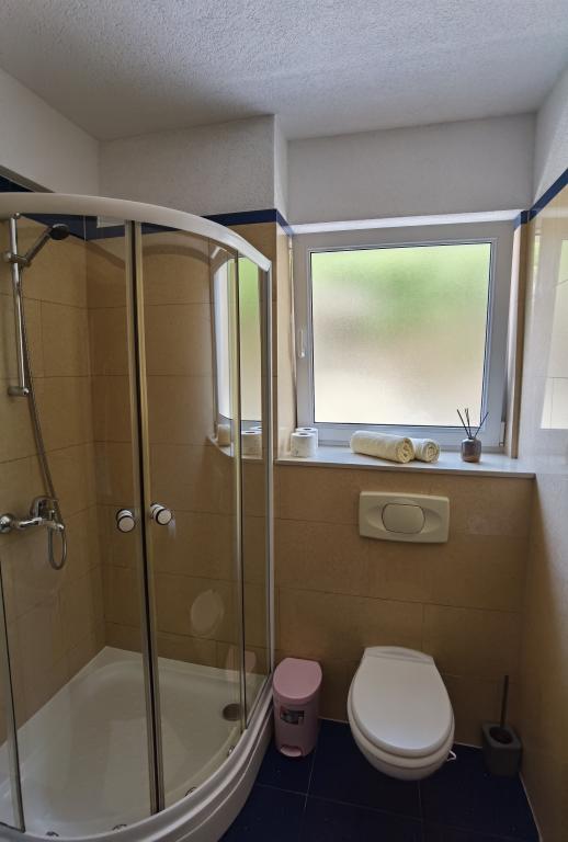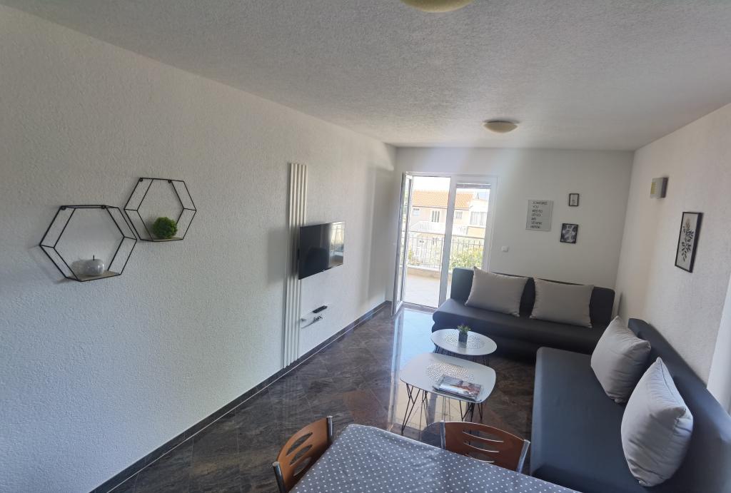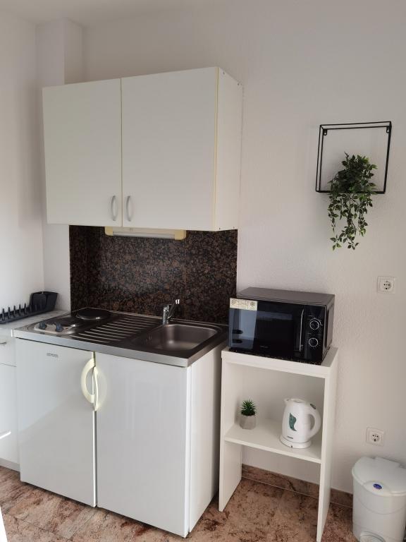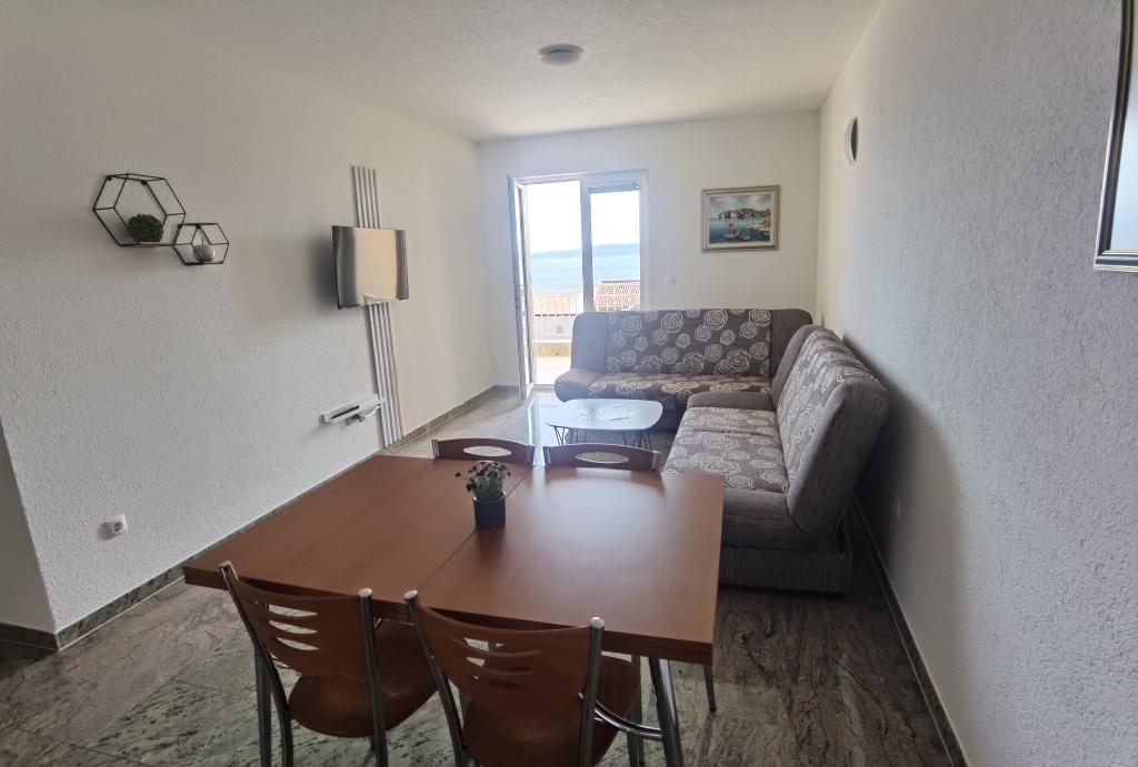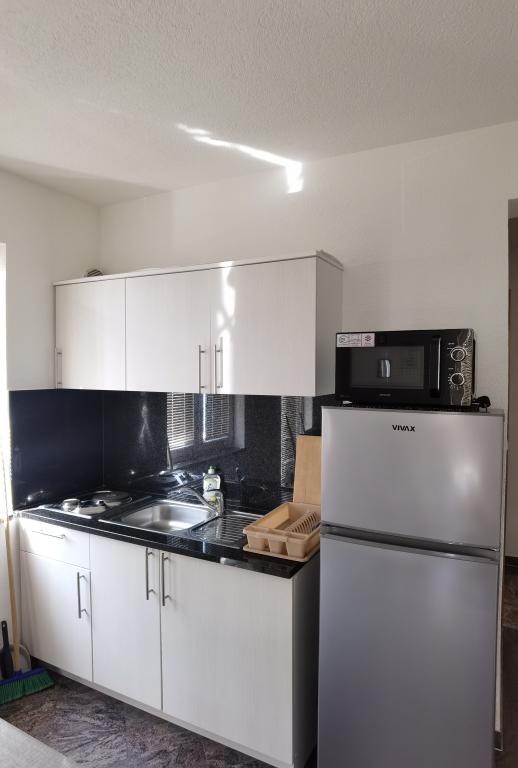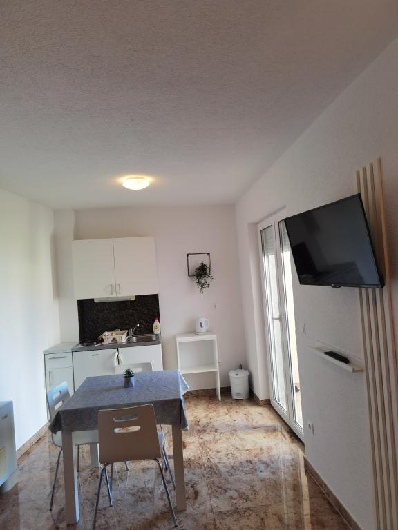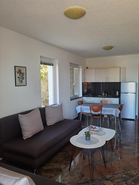 La Villa Marić est située dans un quartier calme de Baska Voda, à 200 mètres de la mer. La villa offre une belle vue sur la mer, les îles et les montagnes environnantes. Il y a des marchés, des restaurants et des cafés à proximité. Les appartements spacieux se composent d'une chambre double, d'une salle de bain, d'une cuisine, d'une salle à manger et d'un salon. Il y a un canapé-lit dans le salon. Des appartements équipés de façon moderne rendent votre séjour plus confortable : TV satellite, WiFi, climatisation et ustensiles de cuisine nécessaires, et une terrasse avec de belles vues sur la mer. Devant la villa, il y a un grand parking. Un parking dans le garage peut être fourni sur demande moyennant des frais supplémentaires. L'environnement calme autour de la maison assure la tranquillité du bruit de la rue et la sécurité des enfants. Le personnel amical est toujours à votre service. Nous vous souhaitons la bienvenue et souhaitons que vous vous sentiez comme chez vous. Nous espérons que vous apprécierez nos appartements et que vous profiterez de Baška Voda de manière inoubliable ! Nous nous réjouissons de votre arrivée !
