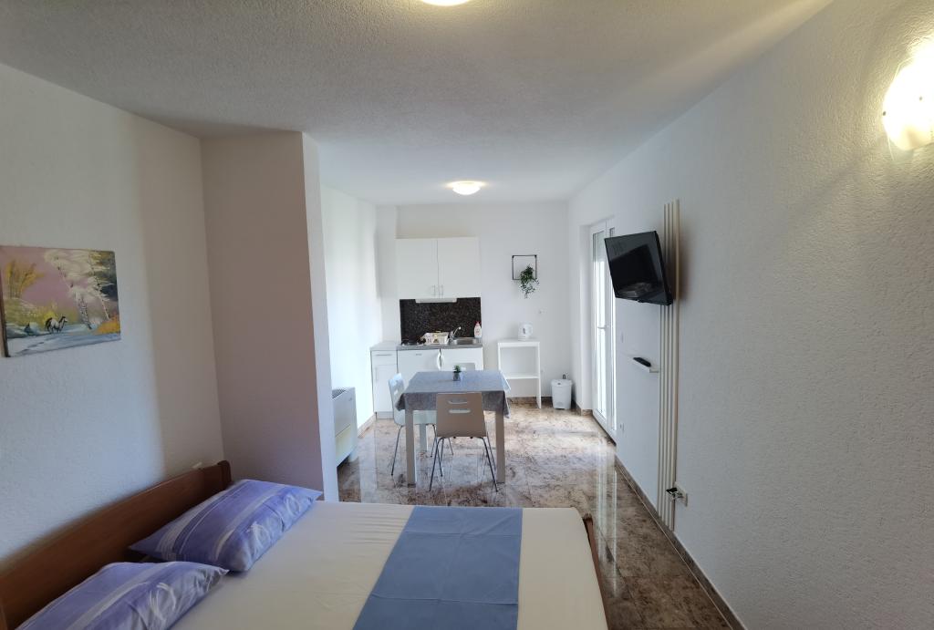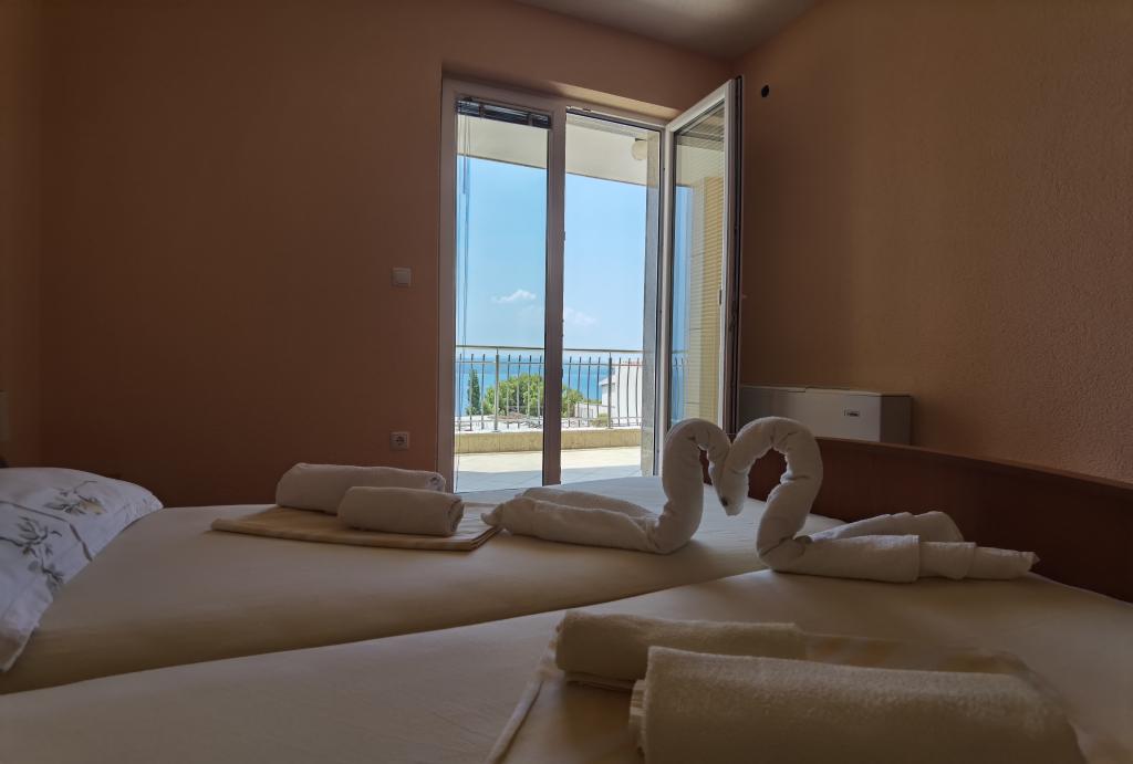 Bonjour. Je confirme les très bons avis. J'étais avec une famille de 4 personnes. Des questions banales. Le prix à proposer est très attractif. Il y a un parking sous l'hôtel. La climatisation refroidit instantanément. Il y a une kitchenette suffisante. L'ensemble de l'hôtel est propre et rénové, bordé de granit. Tout fonctionne comme il se doit. Grand balcon. Il y a une buanderie - le personnel fera la lessive si vous le demandez. Les propriétaires sont gentils et sympathiques. Attractions: Belles vues la nuit et le jour - la mer d'en haut, la lune dans le ciel et dans l'eau et les montagnes à proximité. La descente vers la plage se fait directement en bas - c'est mieux que ce que montrent les cartes. C'est un bon point de départ - proche de la plage et de la route principale, quartier calme. J'ai visité Baška Voda, Omiš et Brela, mais aussi Promajna ou Makarska. Il y a là une belle région. Je recommande : Baszka Woda - une vue sur les montagnes, la mer, la plage Nicola pour les plus paresseux et la promenade, surtout le soir quand les lumières sont allumées, il y a des magasins et des bars, il y a un pub avec de la musique pour danser et un piste de danse. Je recommande une croisière Biba à ceux qui ont beaucoup d'énergie - bonne ambiance, musique, plaisir, surtout au retour - on peut rencontrer des gens très sympas. Après-midi, voyage à Omiš. Pour les plus actifs, une promenade à pied le long des plages ne suffit toujours pas aux yeux, de la plage de Nicola à la plage de La bomba. Pour ceux qui aiment le snorkeling, je recommande les plages de Brela et Podrace, la zone autour de Brela et la pierre de LaBomba, où, en plus de nager, vous pouvez également sauter dans l'eau, la gastronomie est à portée de main - il est préférable de se rendre en voiture jusqu'au privé parking. On pourrait par exemple continuer encore et encore : les charmantes plages entre Baška Vodka et Promajna. Je recommande le logement et ses environs. C'était triste de partir.