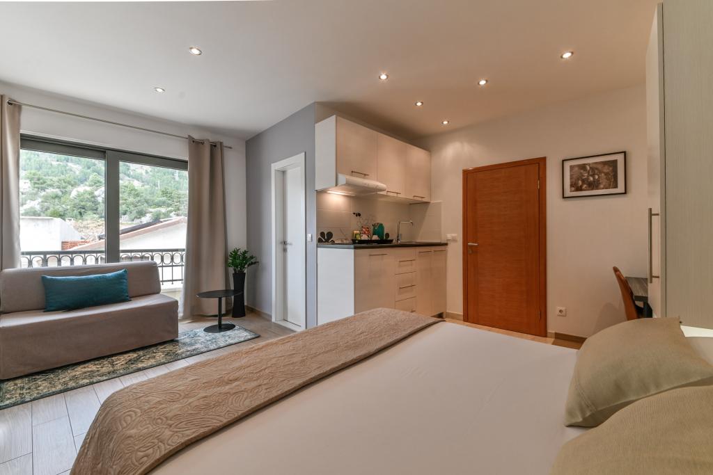 Nous sommes situés dans le centre de Baska Voda, mais dans un quartier calme de foules estivales incultes. Nous vous proposons un appartement agréable studio ambiantes, meublées de façon moderne et entièrement équipé pour vos vacances sans soucis et agréable. Nous soulignons la proximité de la mer et la plage, qui abrite le Pavillon Bleu!