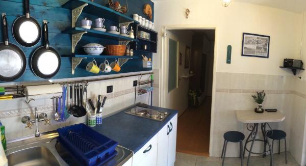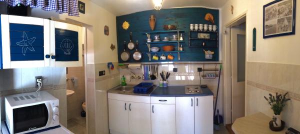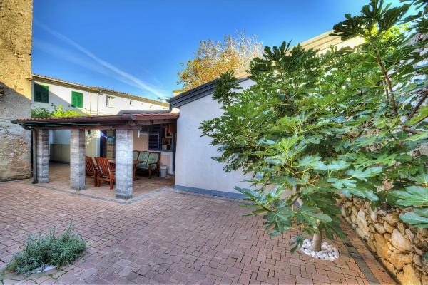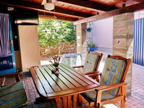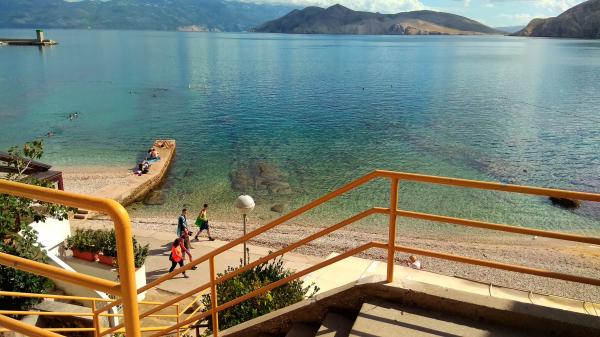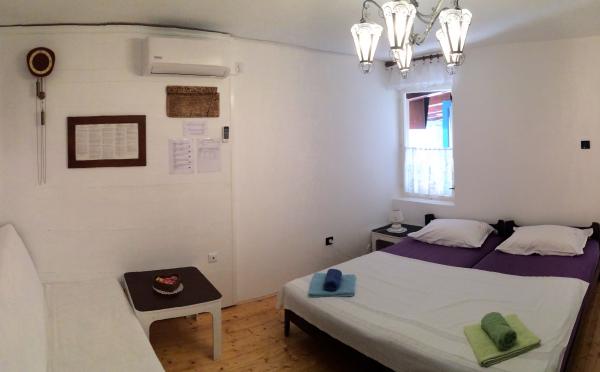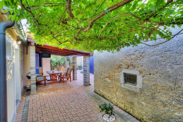 The apartment is located in a quiet part of the old town of Baska. The house is a bungalow with rooms in a raw, rustic appearance. It consists of one room with a double bed and a sofa bed, kitchen and bathroom. It has been completely renovated and equipped with a refrigerator, microwave, stove and cooking utensils. It has a garden 70m2 with a canopy that protects one part of the garden from the Sun and a large garden table. Native plant species are planted in front yard of the house such as olive, rosemary, palm and tecoma. Apartment provides privacy, each side is obscured from view. With a shade canopy and a thick green tecoma. It is only 50 meters from the beach, 30 m from the restaurant and also 30m from a coffee place where you can have your first morning coffee. The famous large beach is only 200m away. Guests can use the free Wi-Fi. Parking is available in 300m from the apartment.