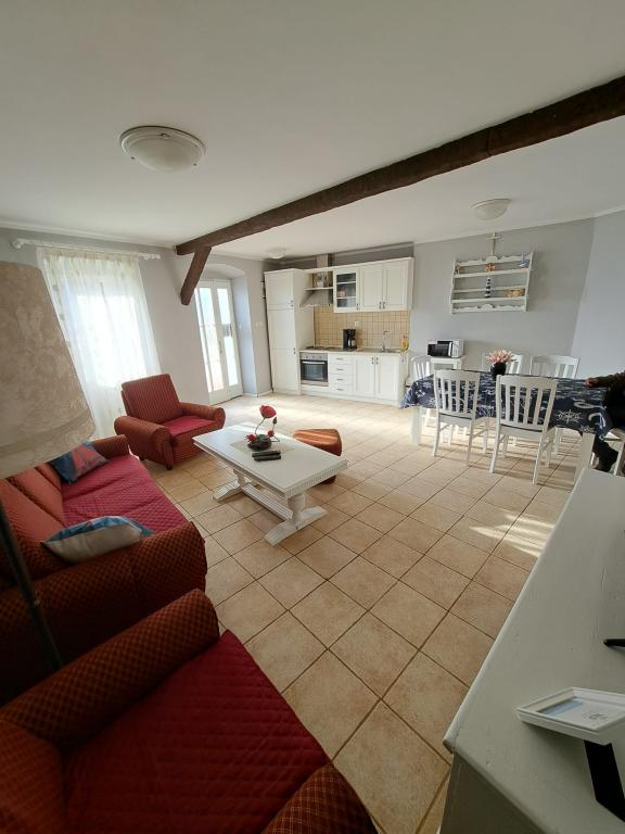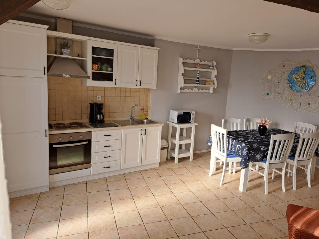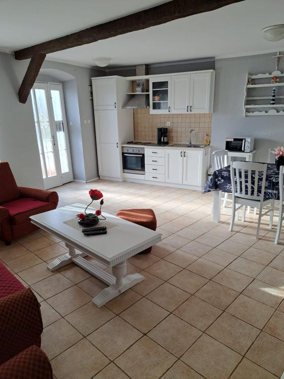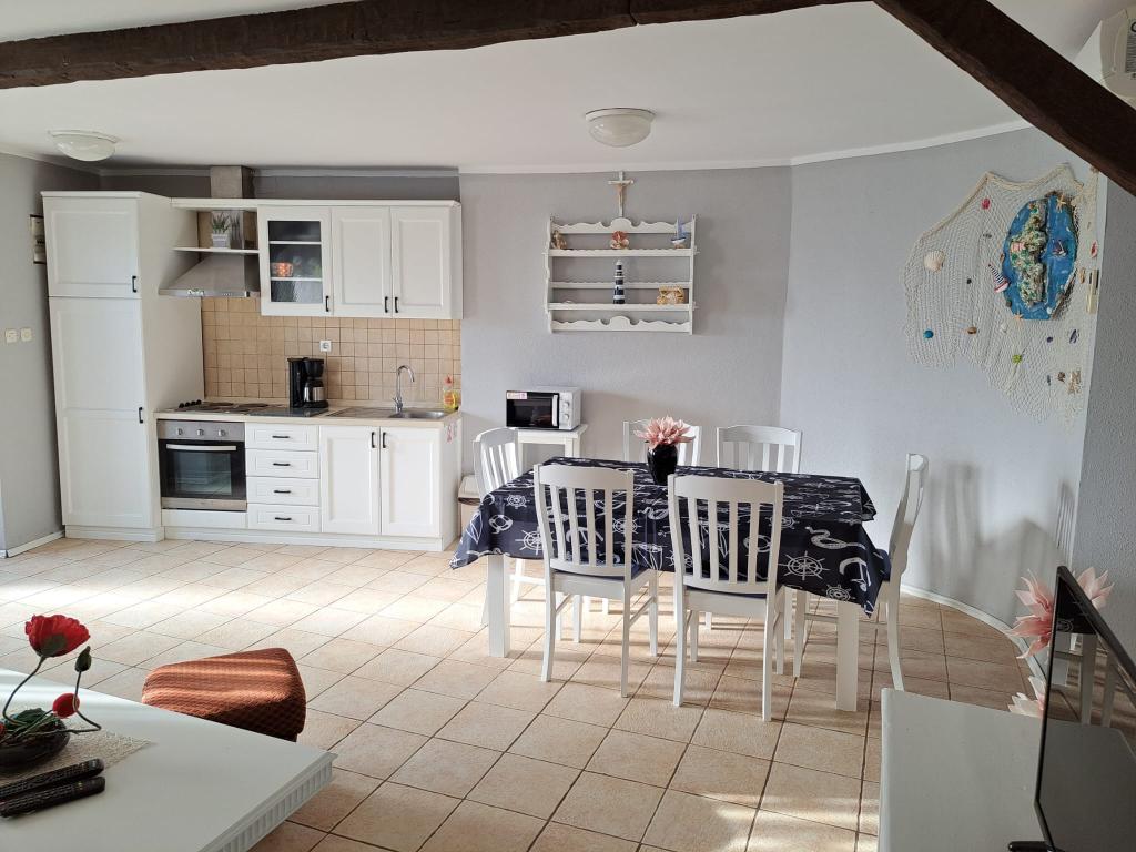 L'appartement est situé dans le centre ancien. L'appartement dispose de deux chambres avec lits doubles et d'un lit d'appoint pour 1 personne (un canapé lit. Au rez-de-chaussée il y a un salon, une salle à manger, une cuisine et une salle de bain avec WC séparé. Au premier étage il y a deux chambres, des toilettes et une cabine de douche. Sur le toit, l'appartement dispose d'une terrasse. L'appartement dispose d'une télévision Android, d'un lave-linge et de la climatisation. L'appartement est situé à 70 m de la plage, dont nos clients profitent. en voiture à 300m de l'appartement. La circulation est interdite dans cette partie de la commune.