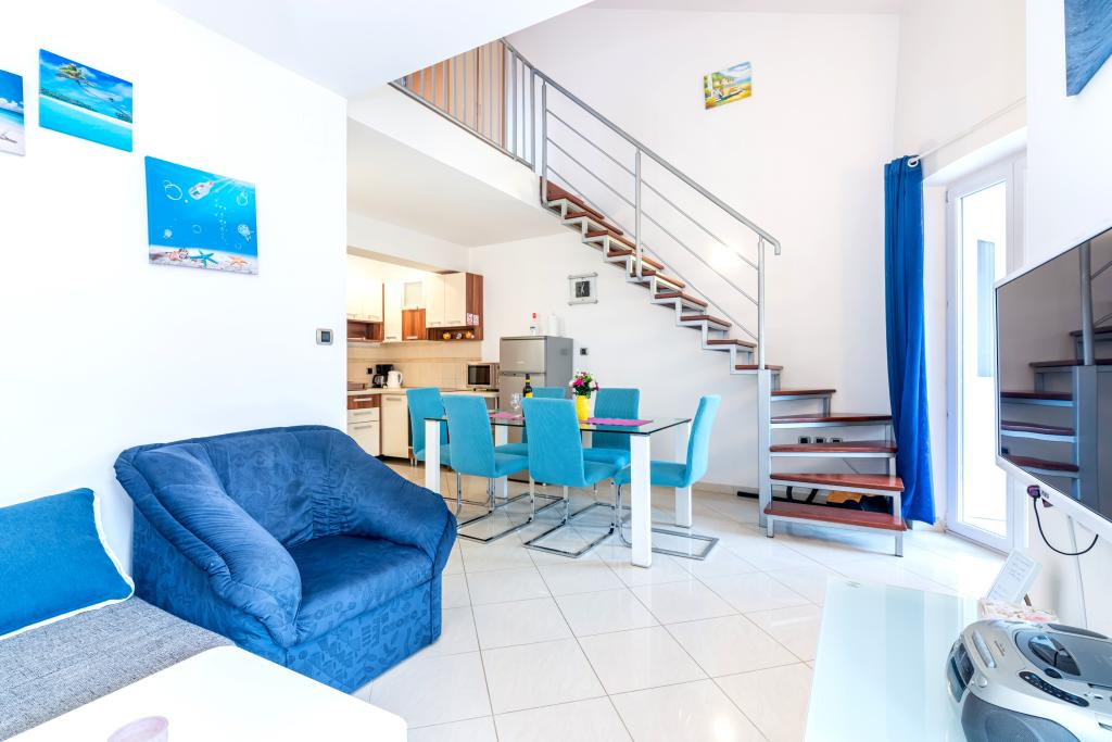 L'appartement est situé au 2ème et 3ème étage. Il dispose de 2 chambres doubles avec lits doubles, 1 chambre double avec lits simples, salon avec canapé pour 2 personnes, 2 salles de bains, cuisine entièrement équipée et salle à manger. Cet appartement est situé à environ 3 minutes à pied de la plage centrale. Situé dans un quartier calme, cet appartement moderne est équipé de 3 climatiseurs, d'une connexion Wi-Fi gratuite, d'une télévision par satellite, d'une grande terrasse et d'un parking privé gratuit devant la maison. L'établissement se trouve également à proximité d'un petit magasin et d'un restaurant.