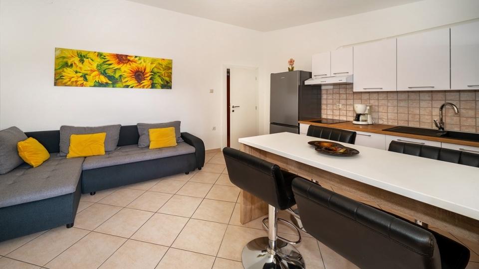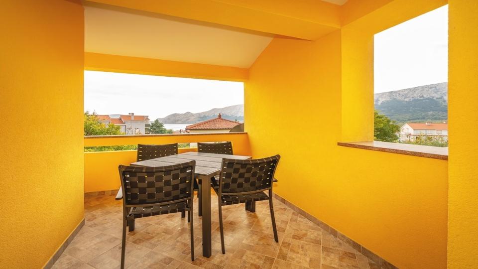 Appartement dans un quartier calme de Baška sur l'île de Krk, l'installation est située à 400 mètres de la plage et à 200 mètres du centre. Il dispose d'une terrasse donnant sur la mer. Le wi-fi est inclus dans le prix de la location. parking couvert et climatisation.