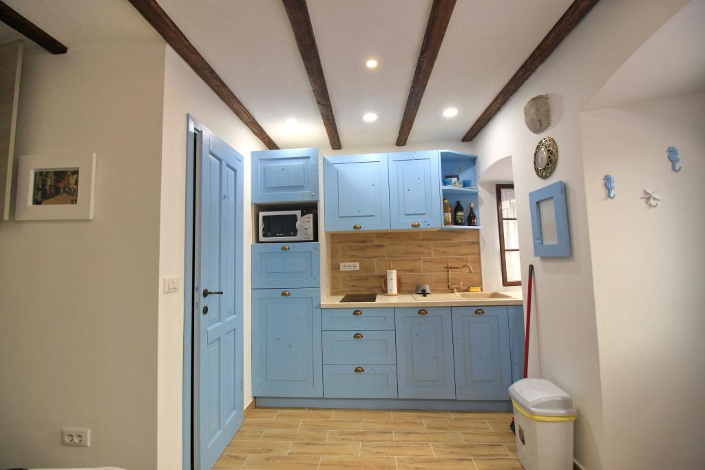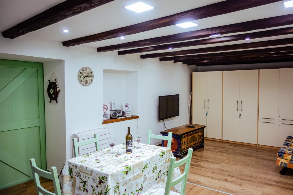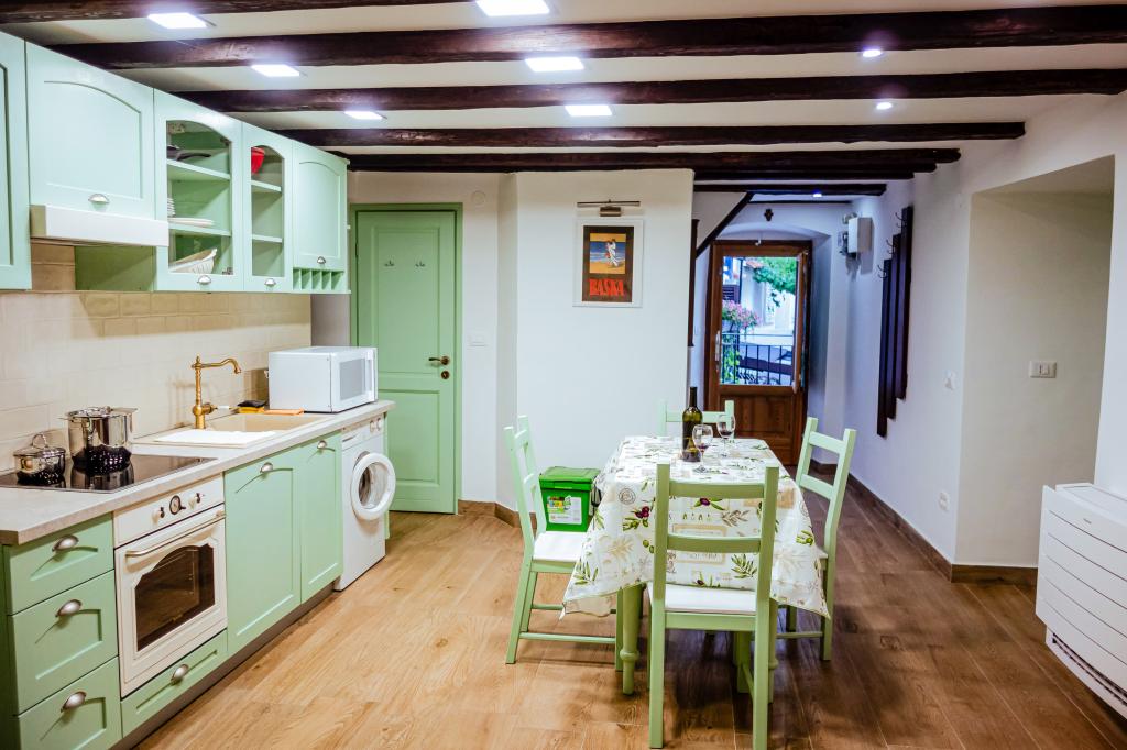 A deux pas de la mer, un petit coin modeste pour deux personnes où trouver abri et réconfort après une journée passée à se promener et se baigner dans la mer limpide. Les appartements disposent de tout le nécessaire pour que deux personnes se sentent à l'aise : lave-vaisselle, lave-linge, climatisation et Wi-Fi. Il a une position très favorable au centre de la ville, il est situé dans la partie historique la plus ancienne de Baška. En face de l'atelier se trouve la première maison en pierre de Baška, construite en 1525 (MDXXV). Il est situé à côté d'une ancienne fontaine à eau. Il y a des magasins, des restaurants, des bars et un marché aux poissons à proximité. Afin de préserver la partie ancienne de la ville et le port, la circulation des véhicules à moteur n'est pas autorisée. Le studio dispose d'une place de parking sécurisée à proximité du centre. C'est un endroit idéal pour deux personnes qui veulent faire du sport, se promener au lever ou au coucher du soleil, déguster les spécialités gastronomiques de Baška dans les bars caractéristiques de la partie ancienne de Baška. Marcher le long de la longue promenade au bord de la mer en respirant l'odeur de la mer ou se baigner sous le clair de lune et les étoiles