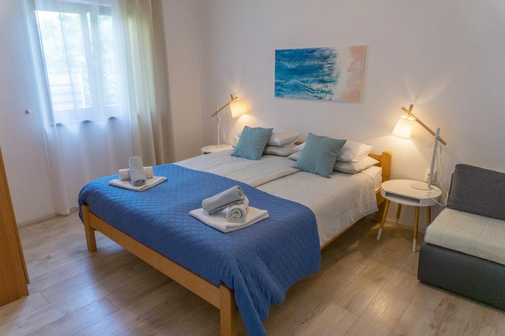 Les appartements Jadran se situent dans une maison familiale au calme, à 300 m (5 min à pied) de la mer et de la plage. Parking privé inclus. Idéal pour randonnées, cyclisme et visites archéologiques. Appartement Jadran 1 (30 m² avec terrasse) : Chambre (lit double 160x200), salle de bain (douche, sèche-cheveux), séjour avec coin cuisine. Lit d'appoint (85x200) pour enfant < 12 ans. Appartement Jadran 2 (37 m² avec terrasse) : Chambre (lit double 160x200 + fauteuil convertible 80x200 pour enfant < 10 ans), salle de bain, séjour avec cuisine. Canapé (90x200) pour personne < 18 ans. Unités climatisées avec Wi-Fi gratuit et Smart TV satellite.