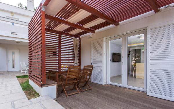 Emplacement parfait dans un quartier calme de la ville. Très près de la plage. Le propriétaire est sympathique, gentil et très hospitalier. Appartements super équipés, propres. La belle terrasse de l'appartement, entourée de verdure, crée des conditions idéales pour la détente. L'endroit parfait!!!