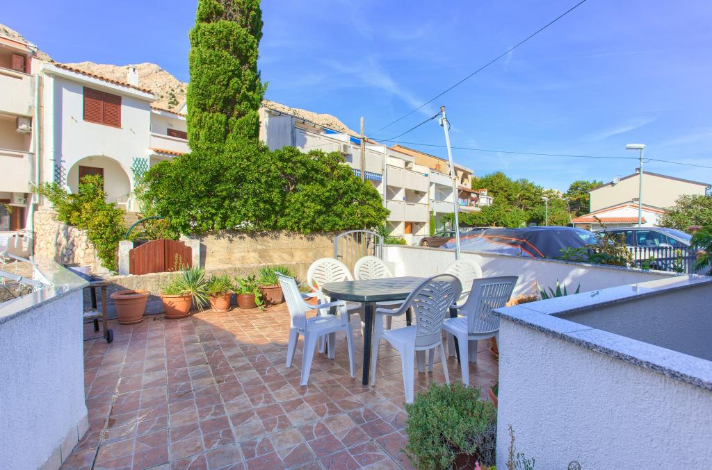Les appartements Olea sont situés dans un quartier calme de Baška, dans une maison familiale entourée de pins et de verdure. Un parking pour trois voitures est disponible dans la cour. La propriété se trouve à proximité d'une plage de galets (180-200 m), d'un parc aquatique pour enfants et de toutes les commodités nécessaires : magasin, boulangerie, restaurants. Vous pourrez louer des transats et des parasols sur la plage, où des griffons sont également présents. Le centre historique pittoresque de Baška est accessible en 15 minutes à pied. Nous proposons trois appartements : un 2+1, un 2+2 et un 4+2. Tous les appartements sont modernes et entièrement équipés : télévision par satellite, climatisation, barbecue, Wi-Fi et balcon/terrasse avec vue sur la mer ou la ville.