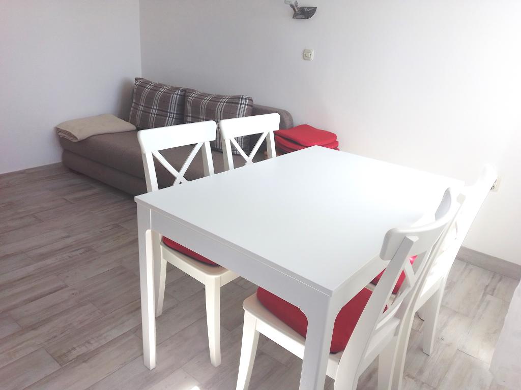 Tous les appartements sont équipés de draps, de serviettes et de torchons, ainsi que d'un barbecue. Les cuisines sont entièrement équipées avec réfrigérateur, plaques de cuisson, bouilloire et four à micro-ondes. Les balcons/terrasses disposent de parasols et d'une table de jardin avec chaises. Une boisson de bienvenue est offerte. Les appartements A 5+1 et A 2+2 sont équipés d'un lave-linge.